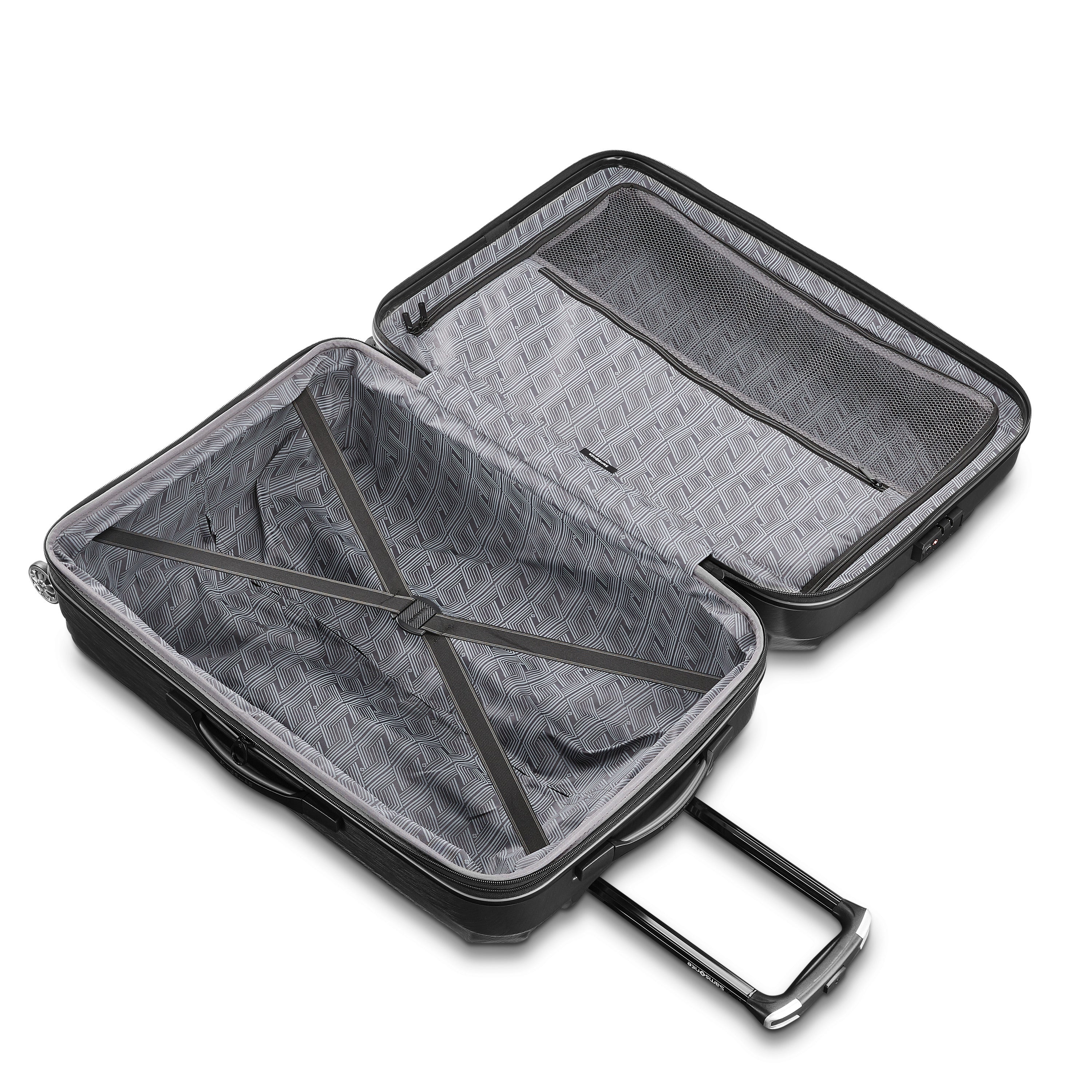 Centric combines scratch-resistant textures with lightweight 100% polycarbonate construction, ensuring your luggage looks as great on the 100th trip as it does on the first. This lightweight line offers heavyweight protection riding on effortless 360 Spinner Wheels. Don't pull your case; let Centric roll comfortably beside you on your journey. Design includes expansion for added capacity when needed. TSA locks help to protect your belongings.