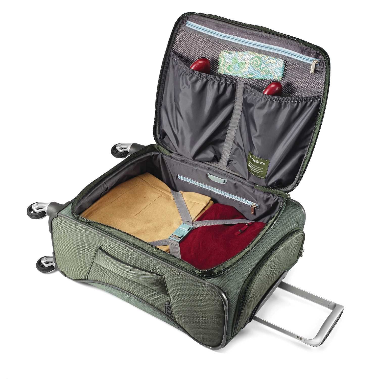 A BAG THE EARTH WILL LOVE ALMOST AS MUCH AS YOU WILL. To buy a product that is good for the earth shouldnt cost an earthly sum. And the product should be something that not only lives up to your expectations but exceeds them. Thats what Samsonite believes. Thats what ECO-Glide is. A bag thats designed to be lighter. That has better pockets with better zippers. Better compartments with better expansion. A bag with fabric made from 100% post-consumer recycled plastic bottles that lightens the earth and allows you to walk more softly across it. Lightening your footprint wherever those ootprints lead. This is ECO-Glide.
