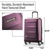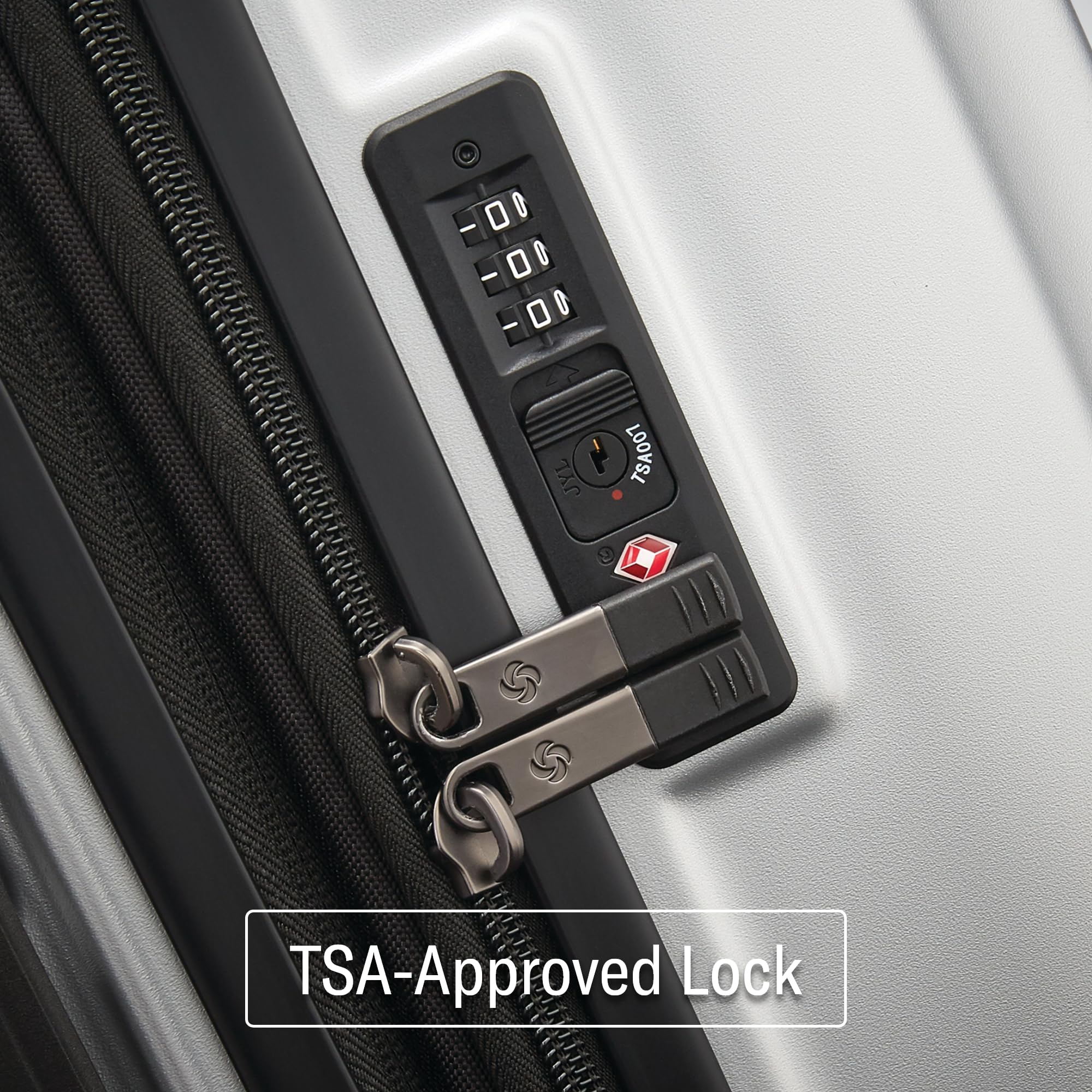 Elevate your travel experience with the Samsonite Octiv Lightweight Hard Shell Luggage collection, the perfect blend of style and functionality for the modern traveler. Crafted from durable polycarbonate and features a scratch-resistant coating that helps maintain a pristine look while preventing cracks and dents. Its ergonomic telescopic handle adjusts to 8 different heights, while the textured grip allows for easy one-handed maneuvering. Two soft carry handles provide convenient lifting options. Experience effortless mobility with patented 360-degree spinner wheels equipped with advanced Aero Trac Suspension Technology, which absorbs shocks and bumps for smooth and steady rolling in any direction. Stay connected on the go with a built-in USB port incorporated in the carry-on (just add your own external battery) and enjoy expandable zippers that add up to 1.5 inches of packing space. The spacious interior includes a snap-in packing cube, a WetPak pouch for liquids, and mesh pockets to keep everything organized. Travel with peace of mind thanks to the zipper latched recessed TSA-approved lock, ensuring your belongings are secure throughout your journey.