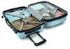 Transport your travel essentials effortlessly and stylishly. This extremely lightweight and durable spinner features 100 percentage polycarbonate construction with sharp molded details. Made to absorb impact by flexing while under stress then popping back to its original shape, eliminating dents and dings while protecting its contents. An elegant brushed pattern hides any potential scratches or scuffs from your journeys. The fully-lined interior has cross-straps, a privacy curtain with its own zippered organizational pockets. Tsa approved combination lock for security and peace of mind.
