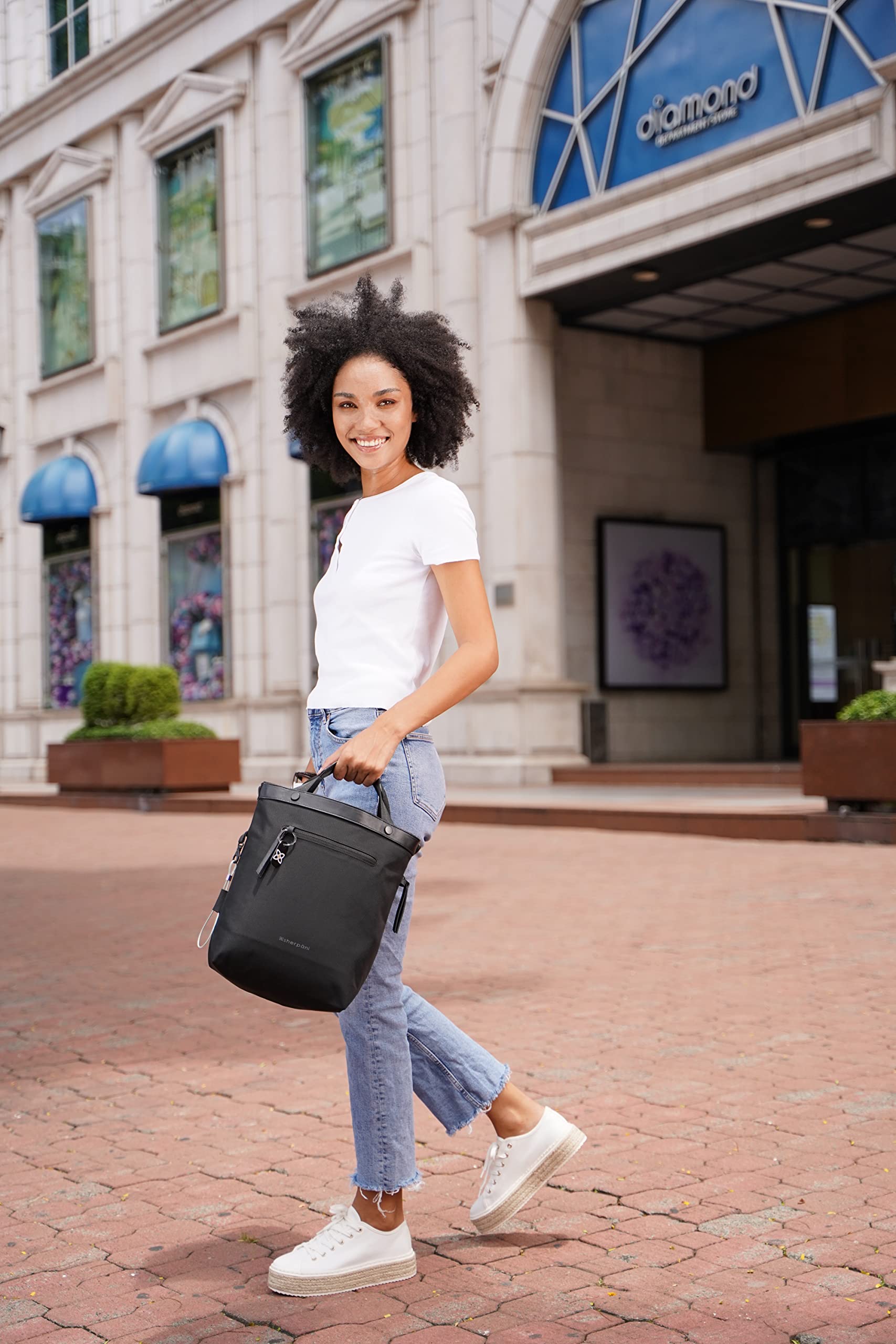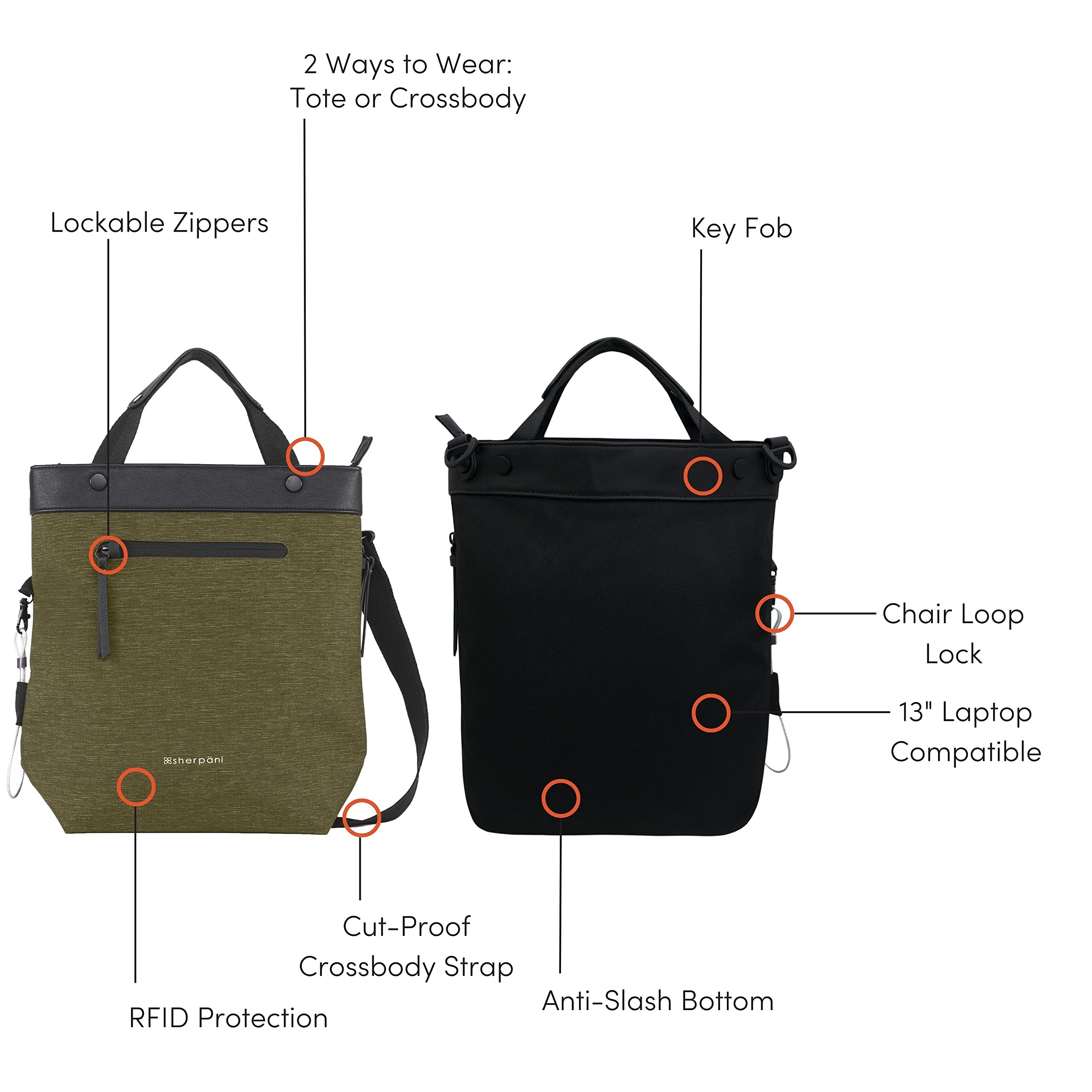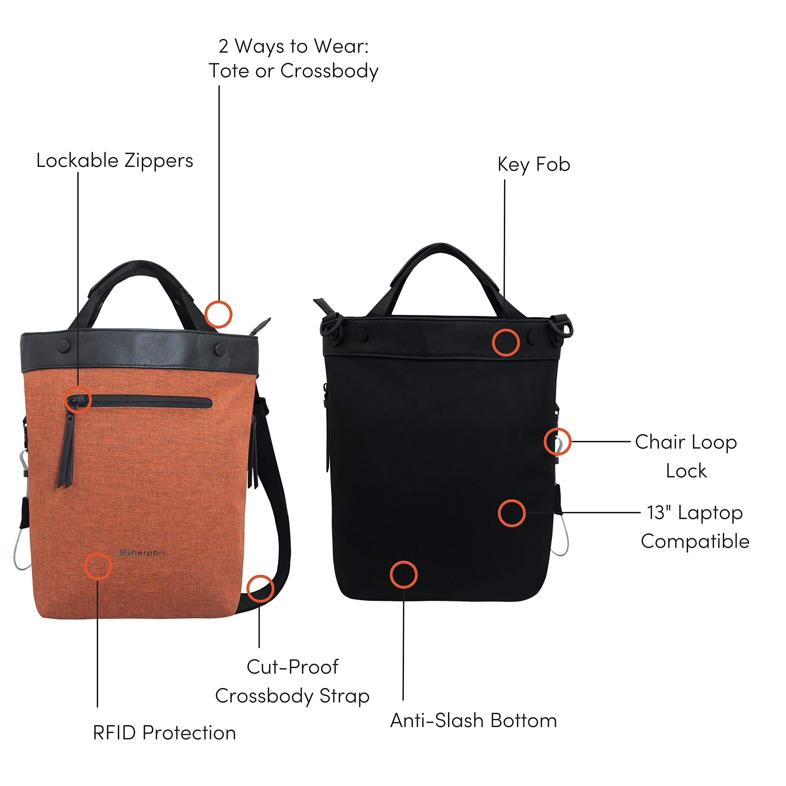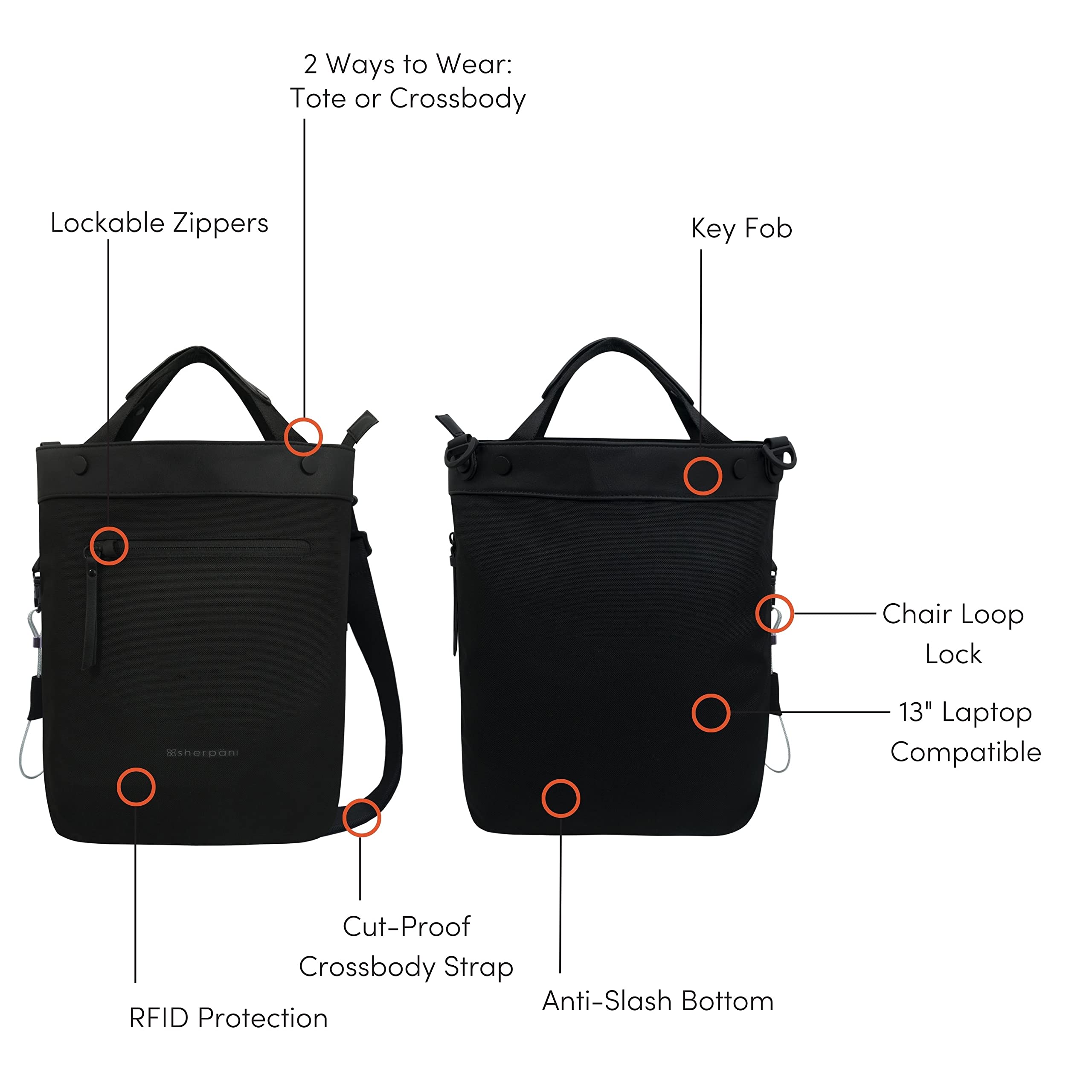 Work, Travel, Everyday - The Geo is designed to accompany you wherever your day takes you. The simplistic, modern shape fits all your daily essentials and tablet without weighing you down. Wear as a tote or crossbody with the removable, adjustable strap. This bag and all bags in the Anti Theft collection are designed with RFID lining and Anti blade fabric. These materials not only disable anyone from stealing your credit card information from the exterior, but also helps protect your belongings from thieves trying to slash your bag. All products in this collection are fully equipped with anti-theft features including zipper locks, anti slash bottom and strap, chair loop lock system and RFID protection.