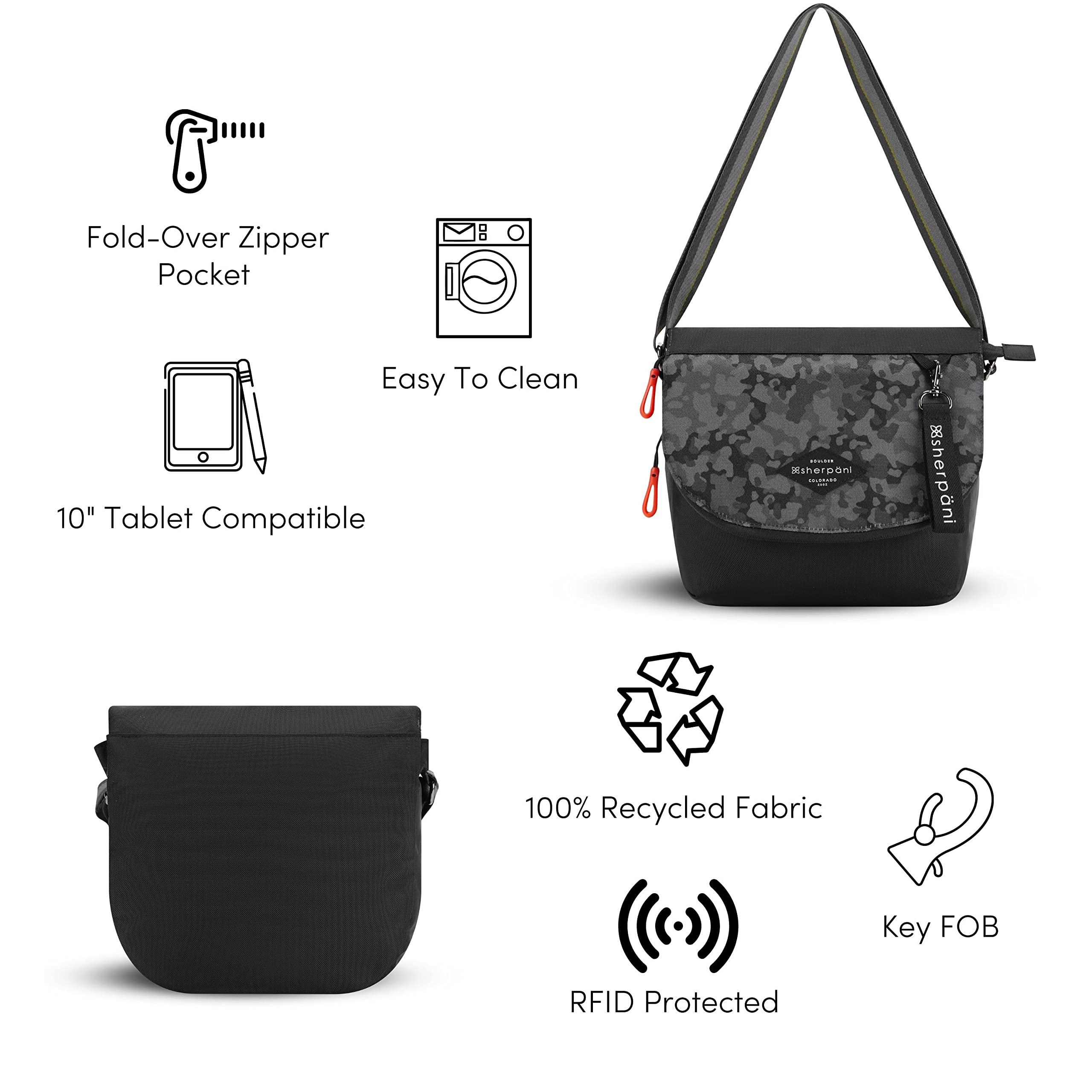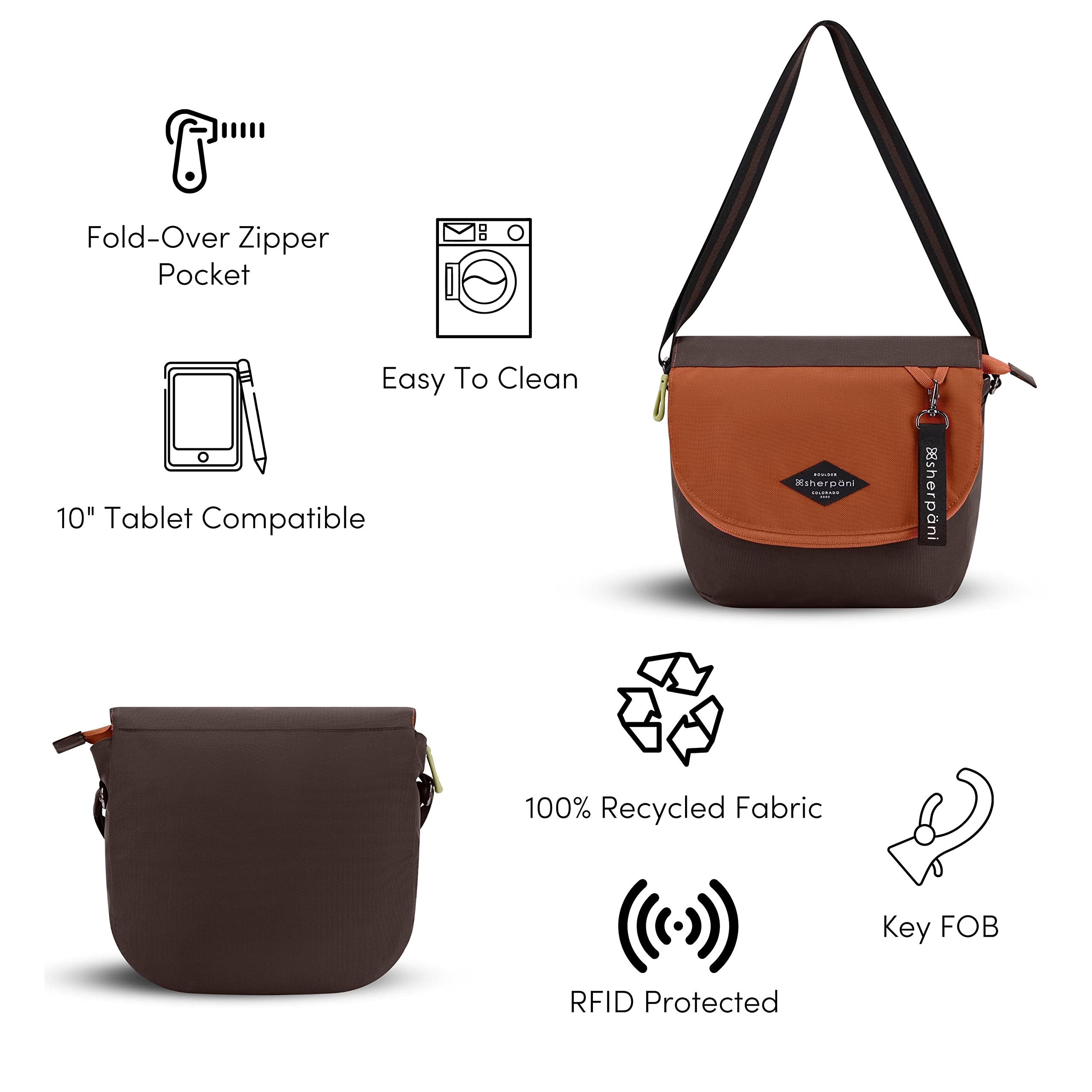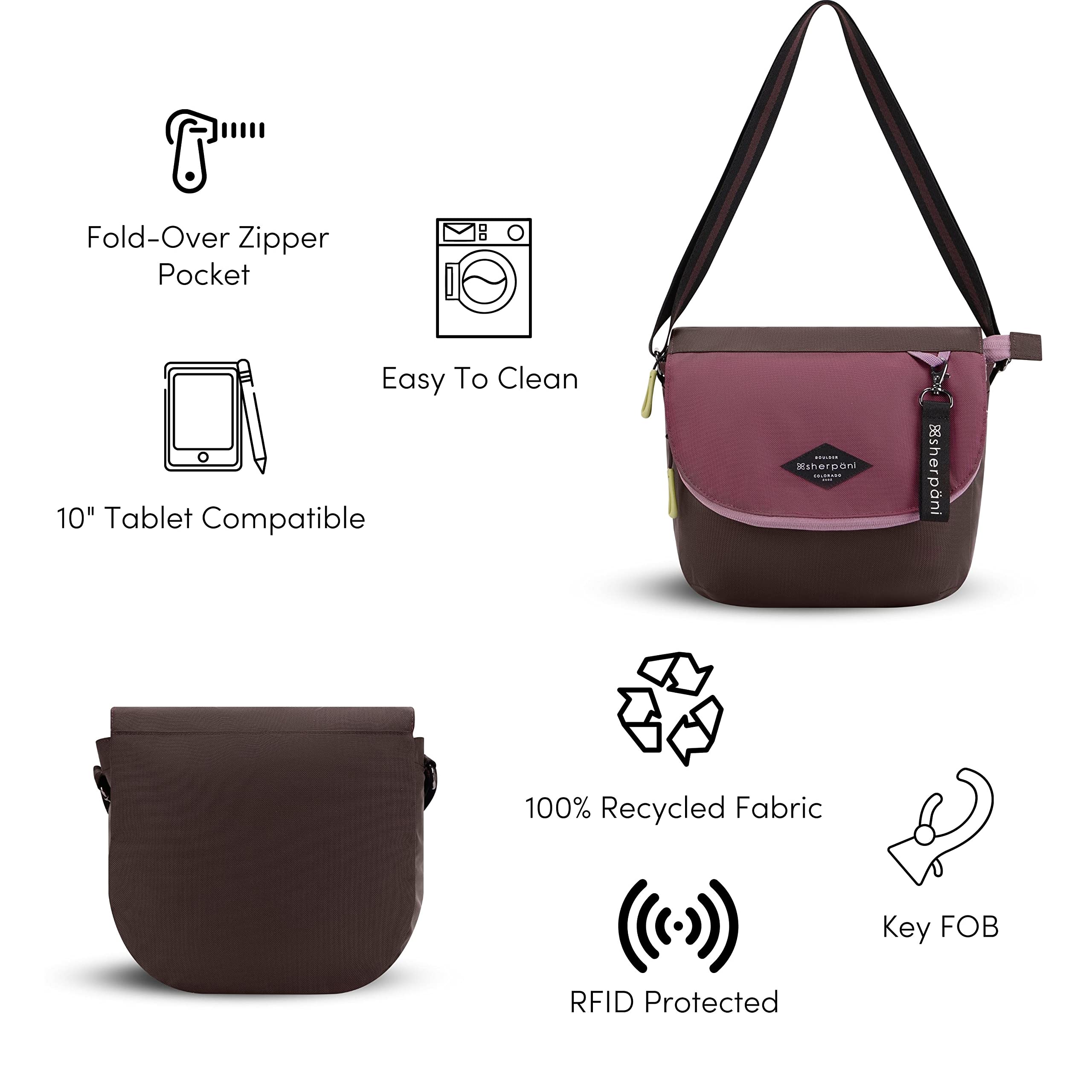 The Iconic Essentials Collection Meet your new favorite bag. The Milli is a medium-sized, fold-over style crossbody. A soft, adjustable crossbody strap, RFID protection and easy-to-clean Repreve fabric are features that set the Milli apart from other crossbodies.