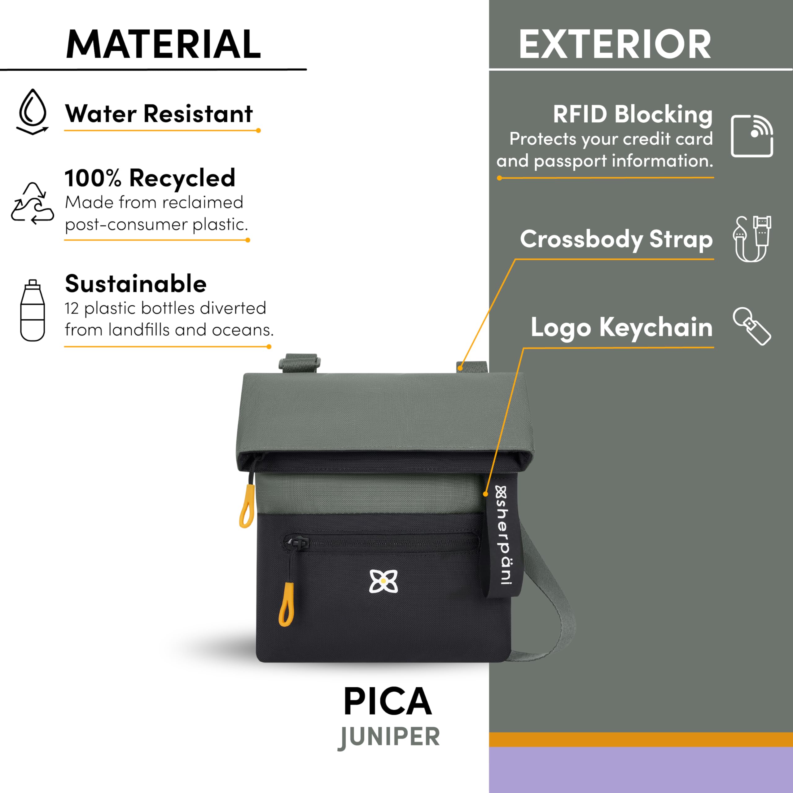 • 1% RECYCLED MATERIALS - With a classic and clean silhouette, this bag is a timeless option. Made with 1% recycled materials from certified Repreve fabric, the Pica repurposes 12 plastic bottles.