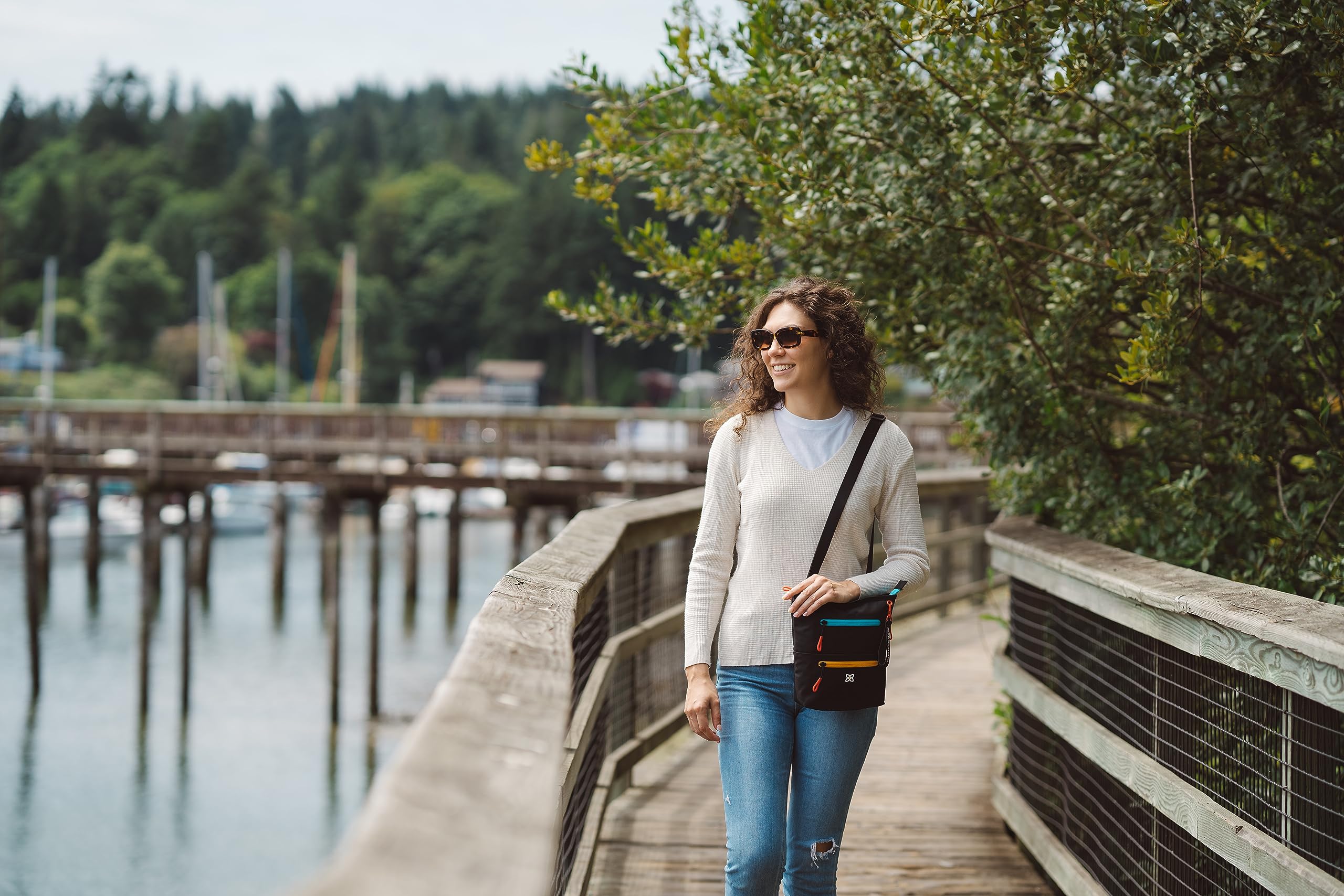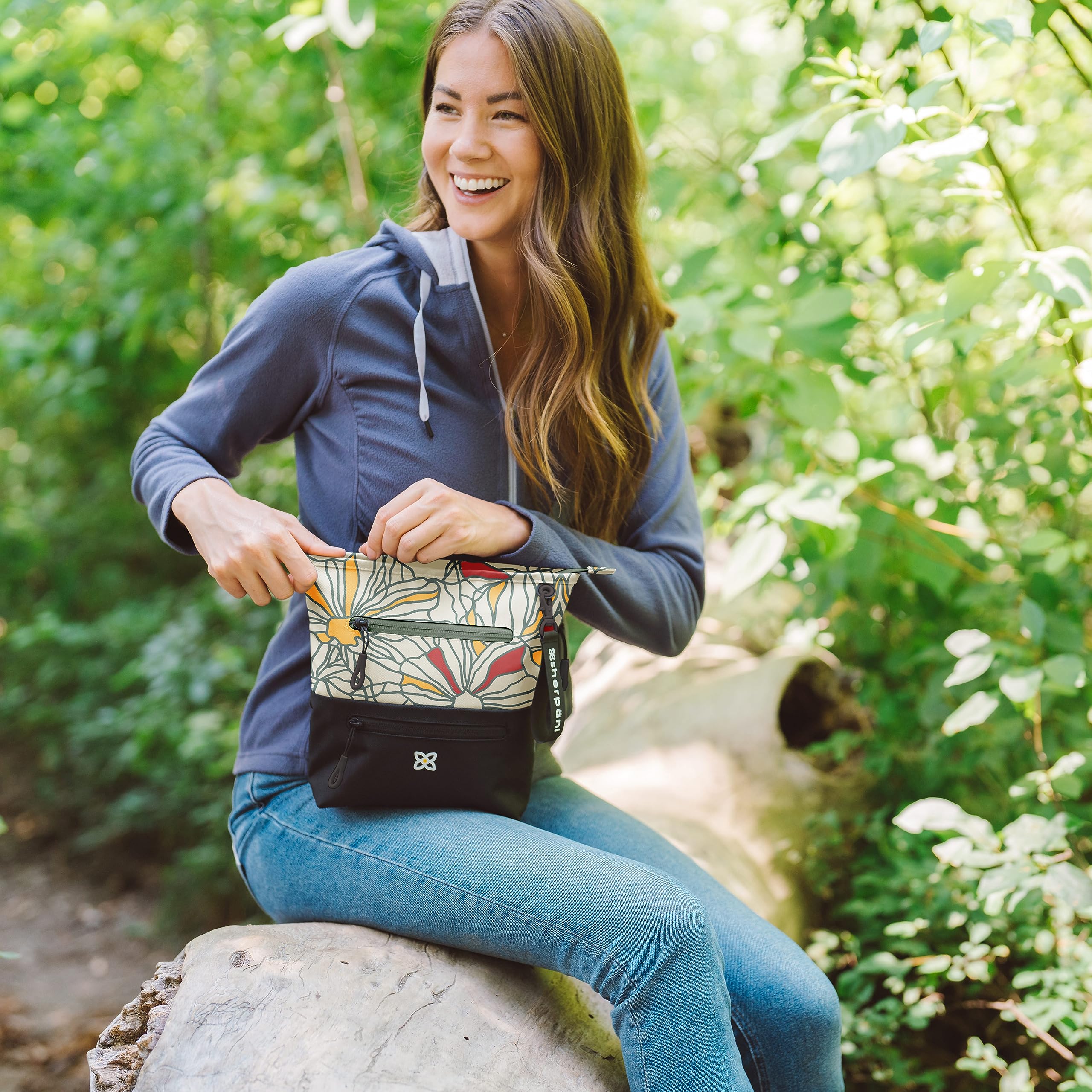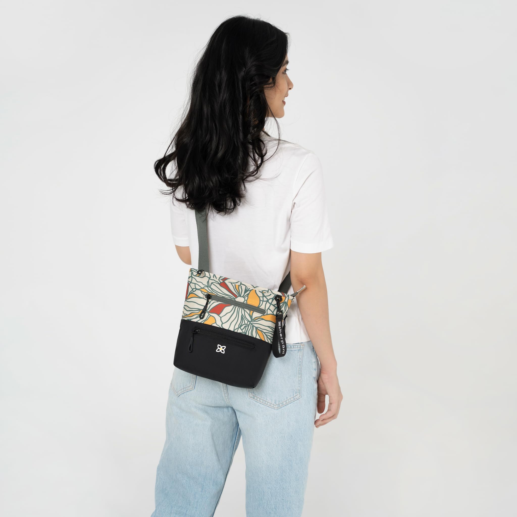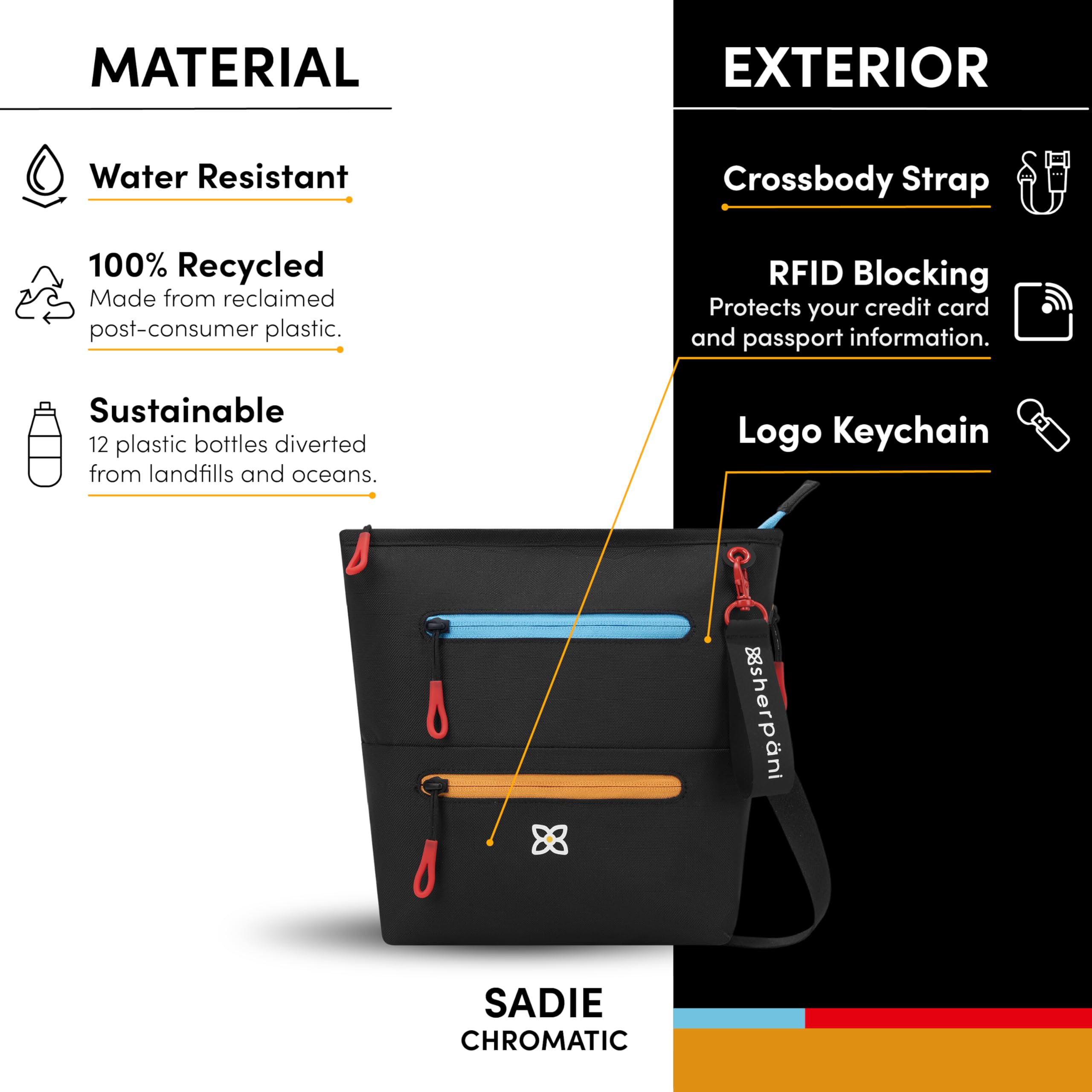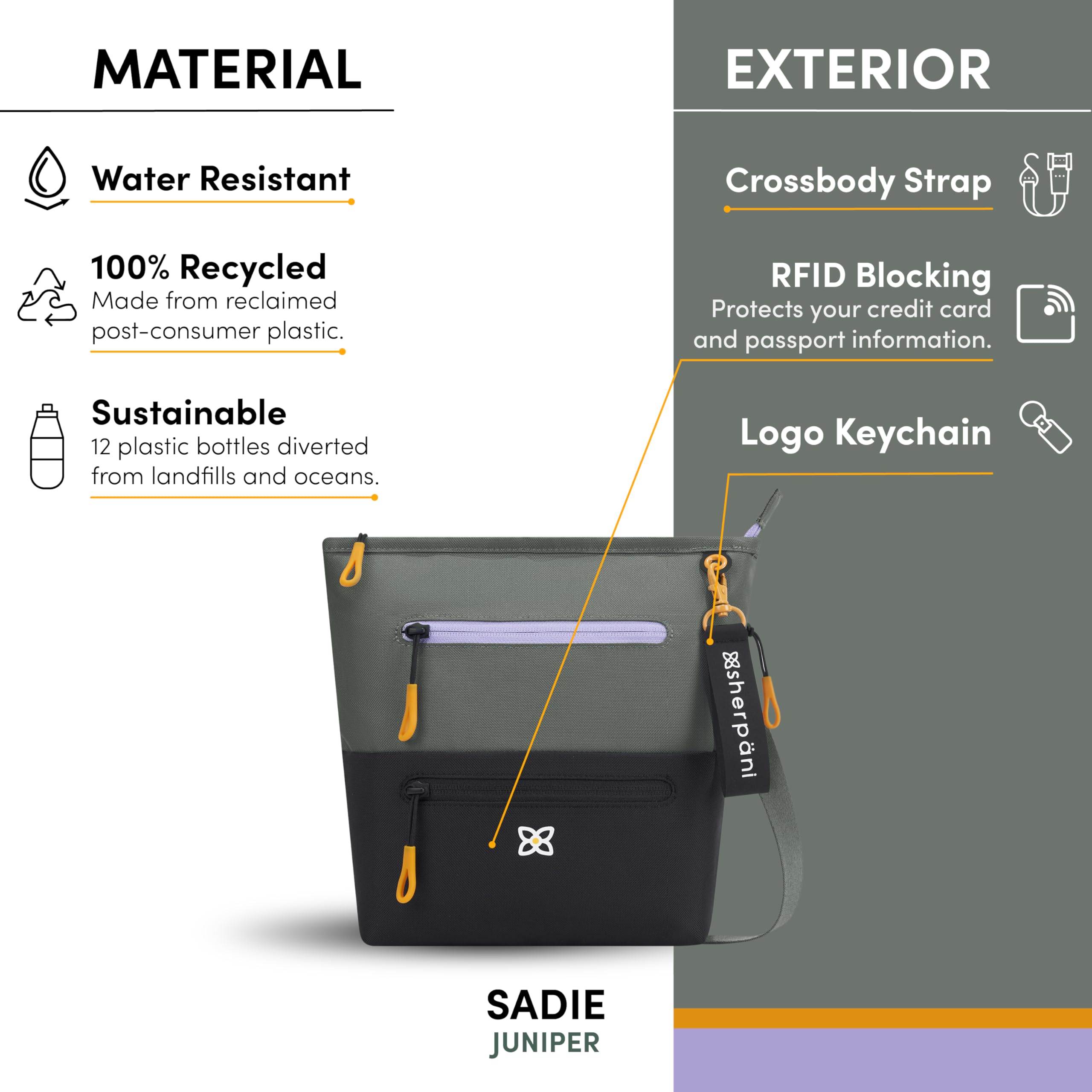 This mighty, medium size crossbody is ready for your most active days. The Sadieâ??s six pockets help keep your phone, keys, wallet, and other daily essentials organized. Made from 100% recycled fabric, the Sadie defines feel-good functionality.