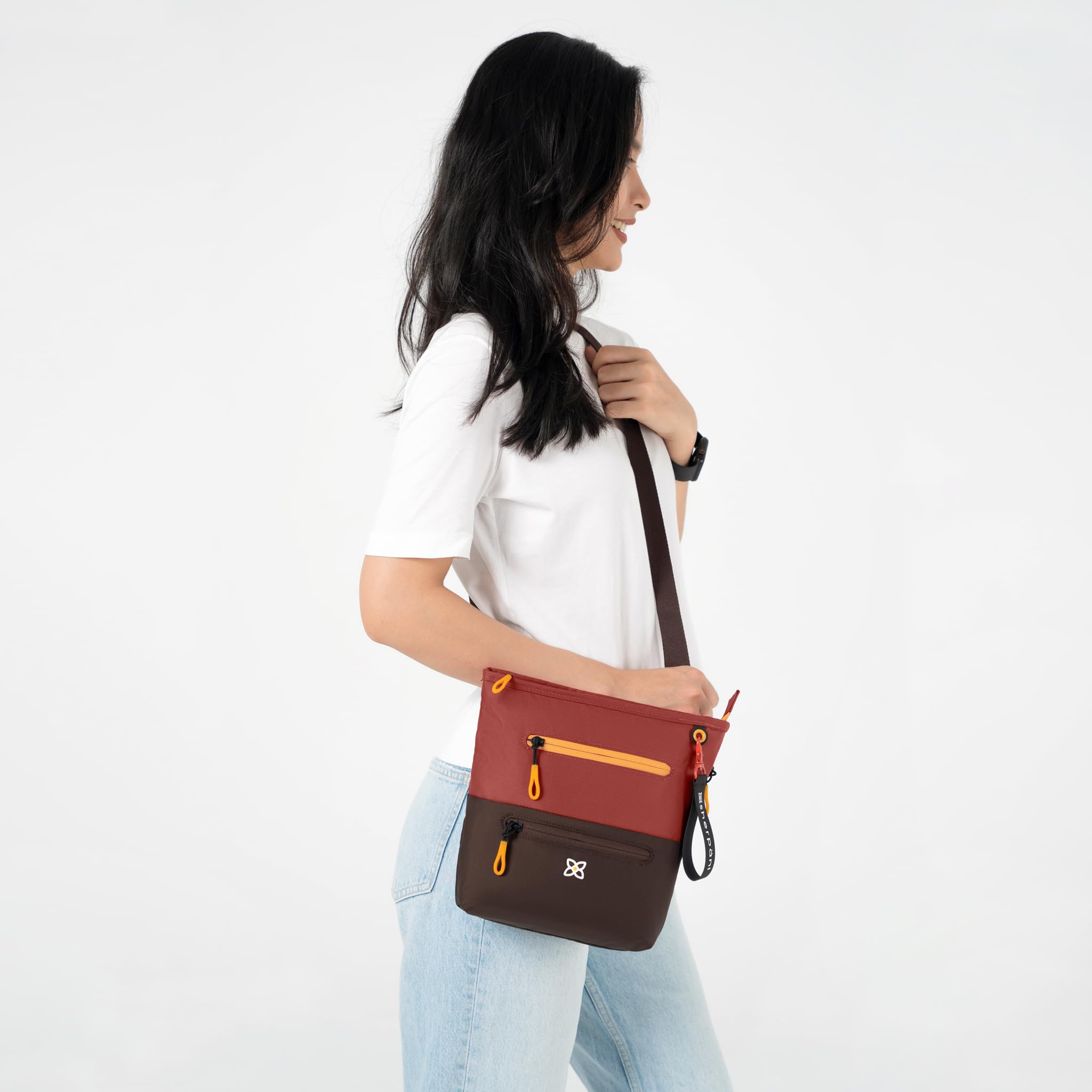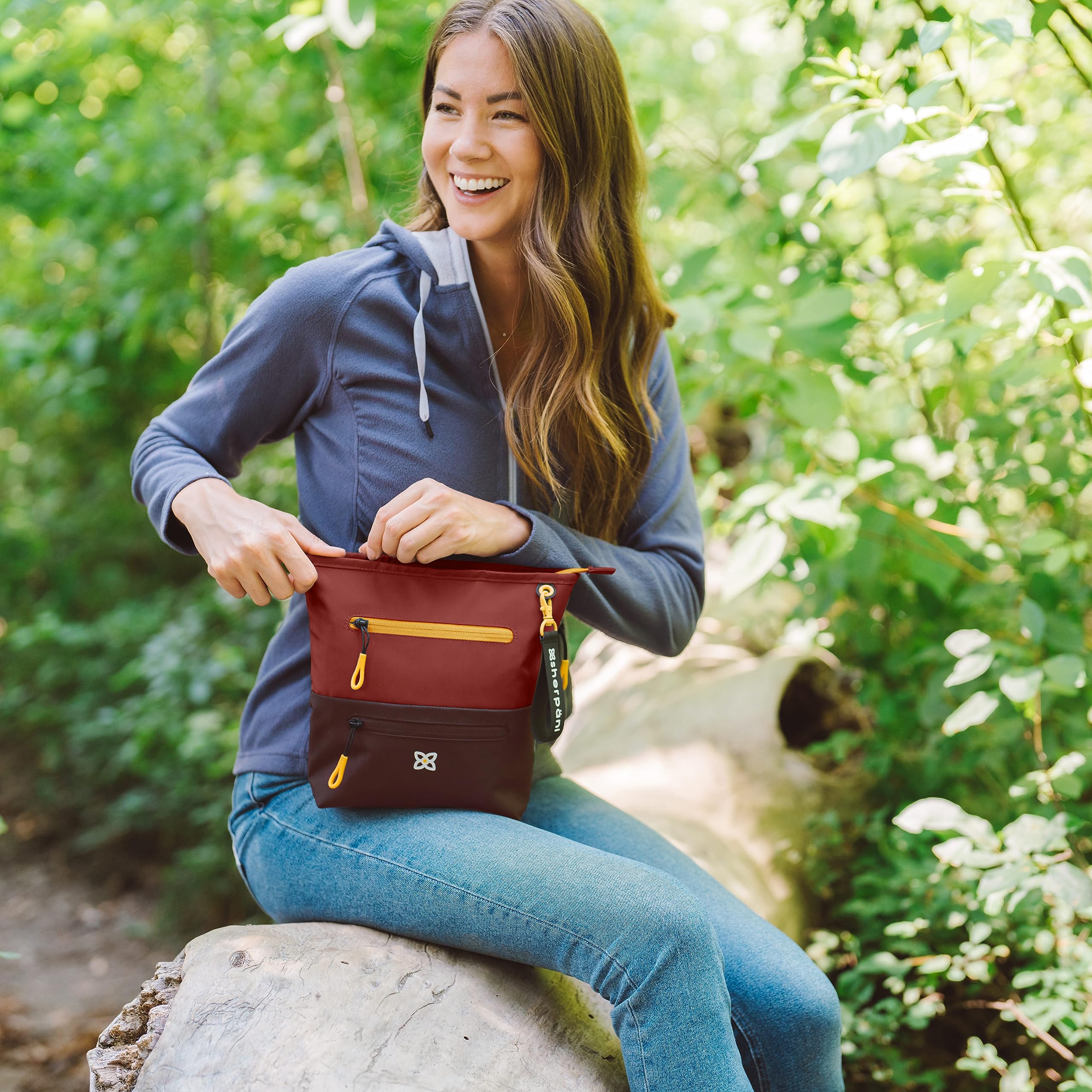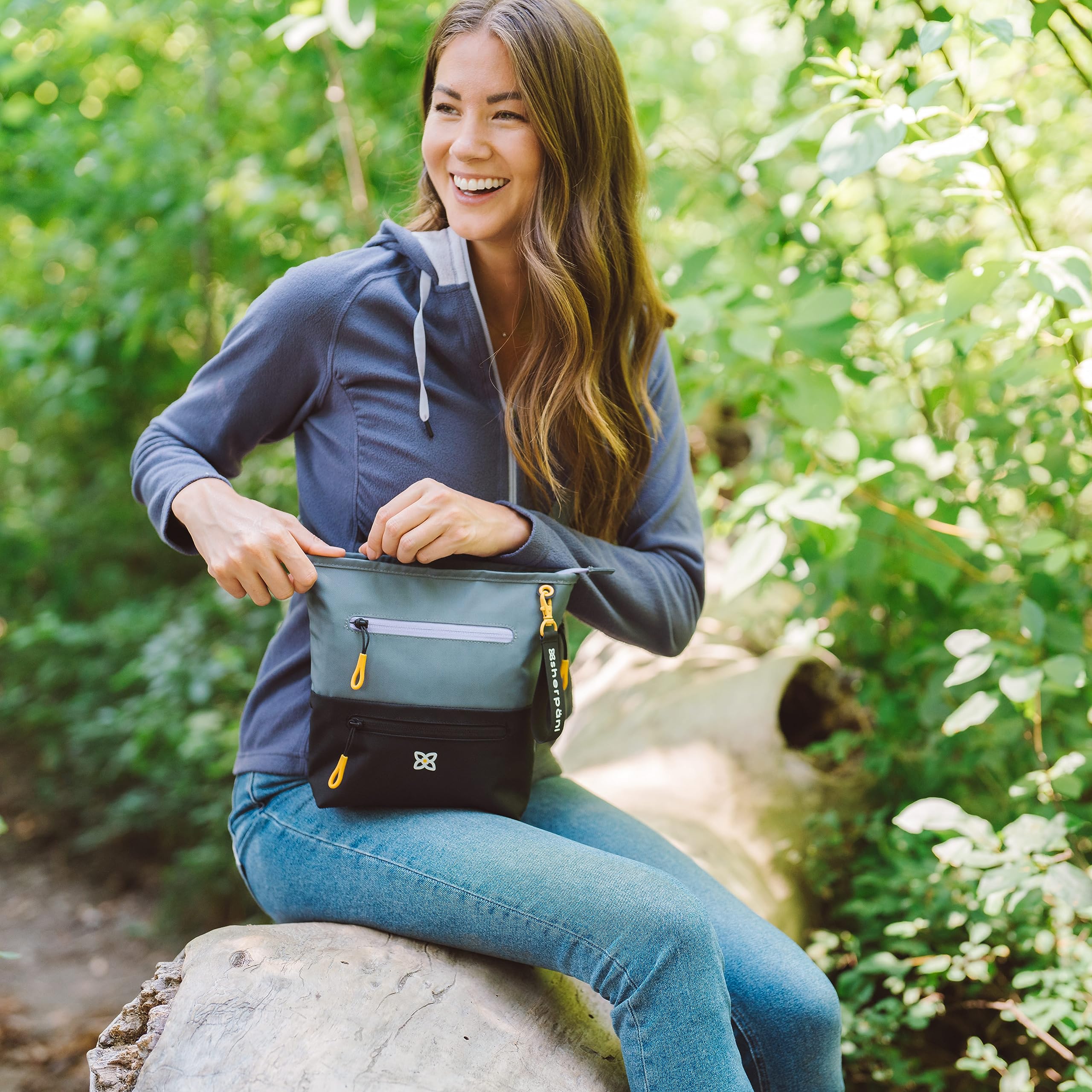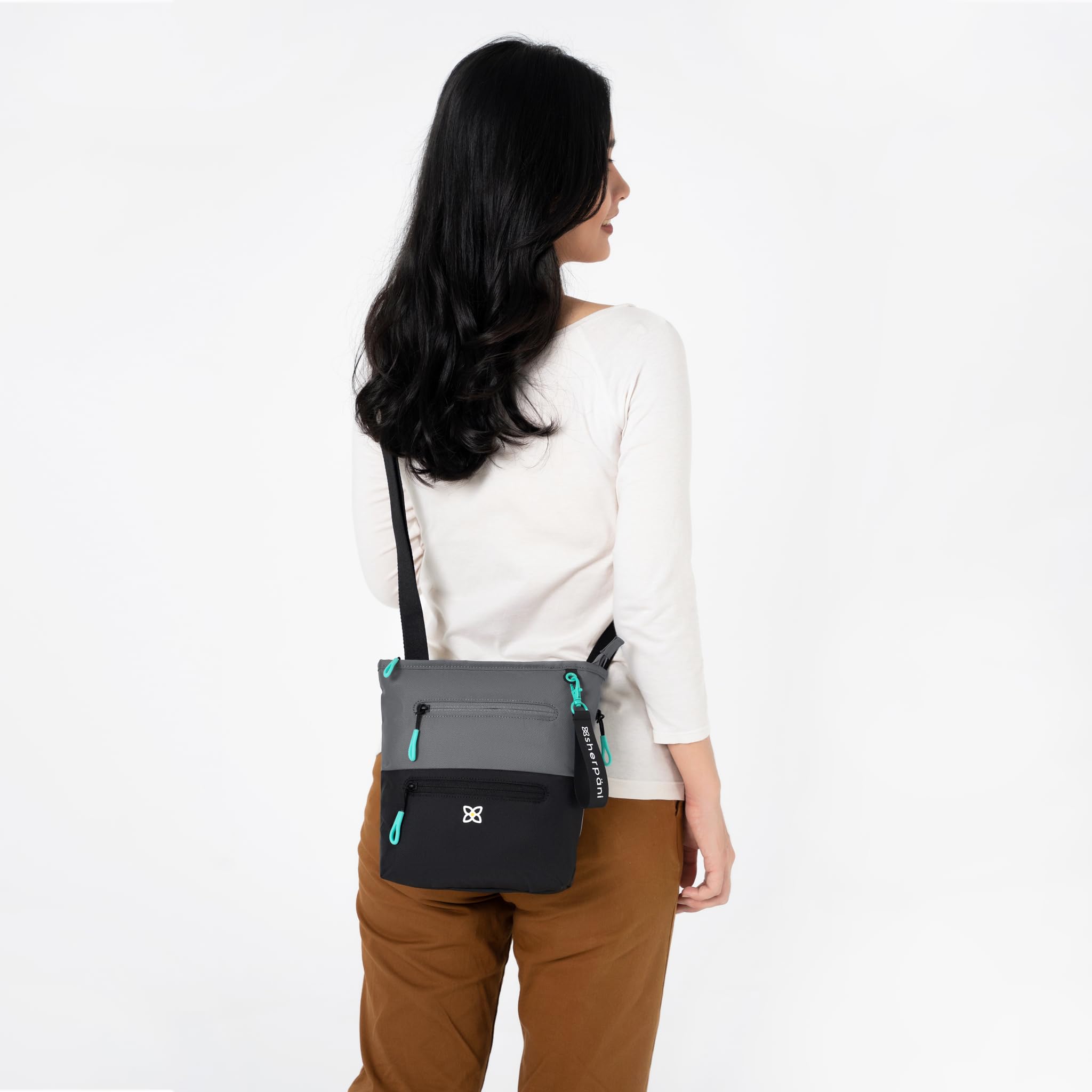 This mighty, medium size crossbody is ready for your most active days. The Sadieâ??s six pockets help keep your phone, keys, wallet, and other daily essentials organized. Made from 100% recycled fabric, the Sadie defines feel-good functionality.