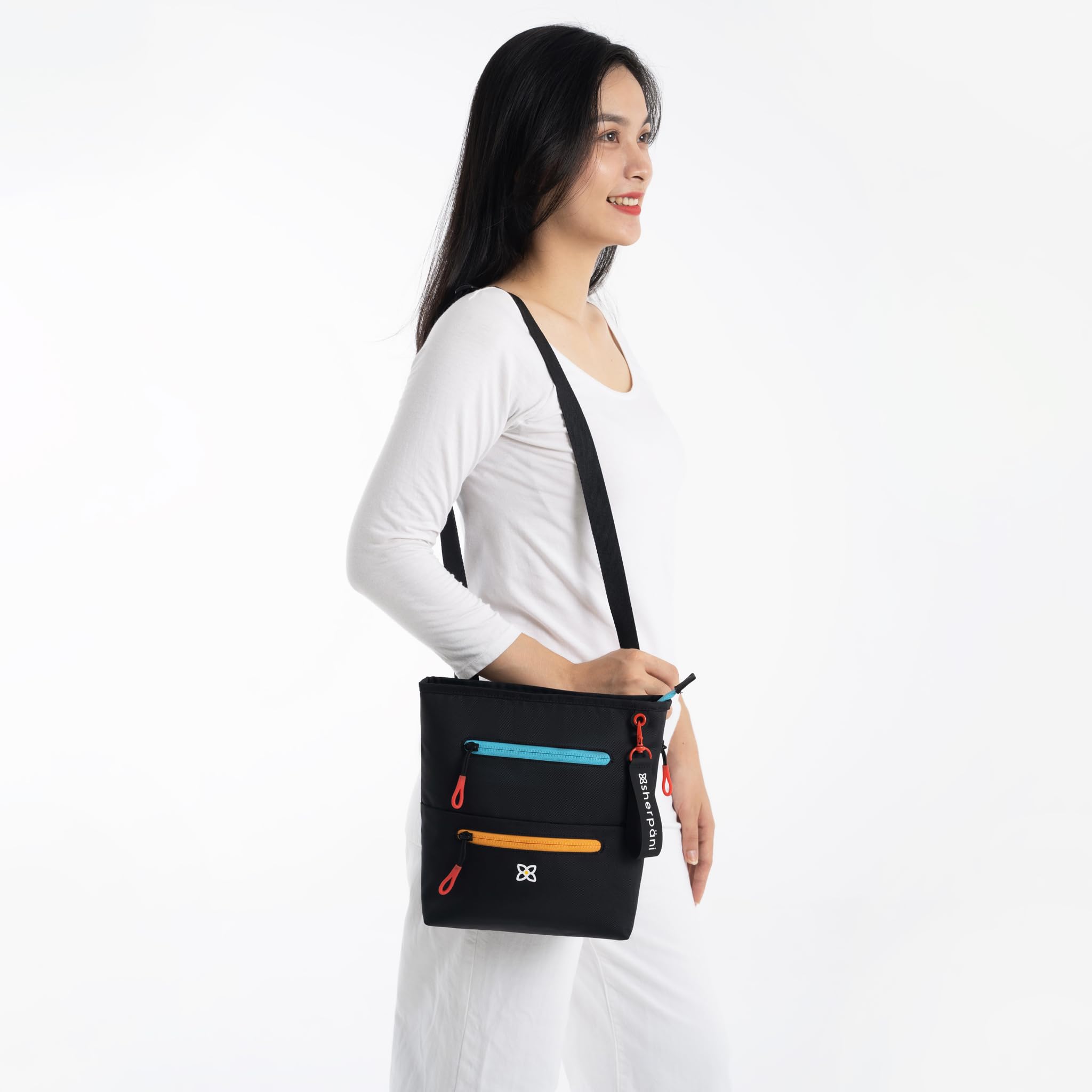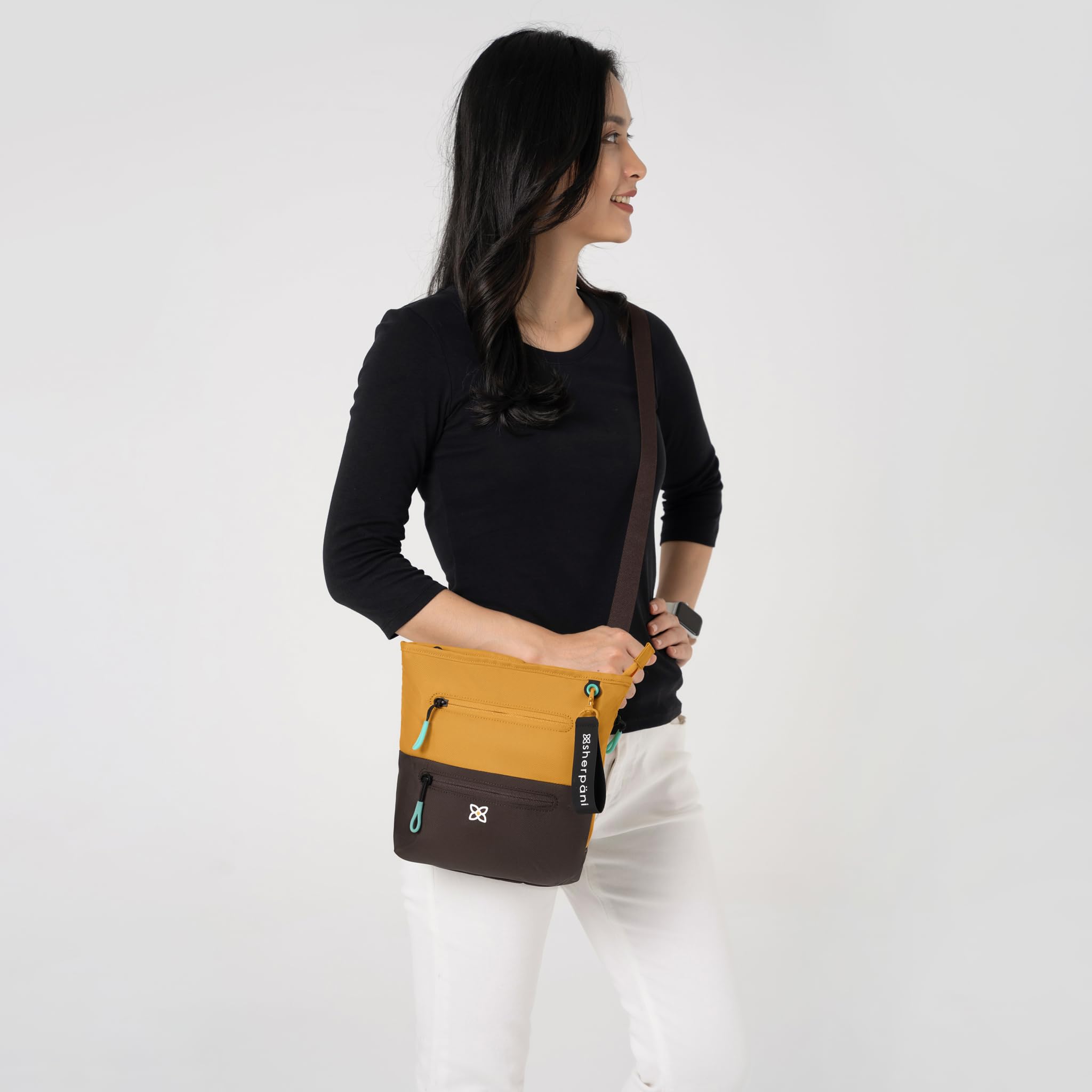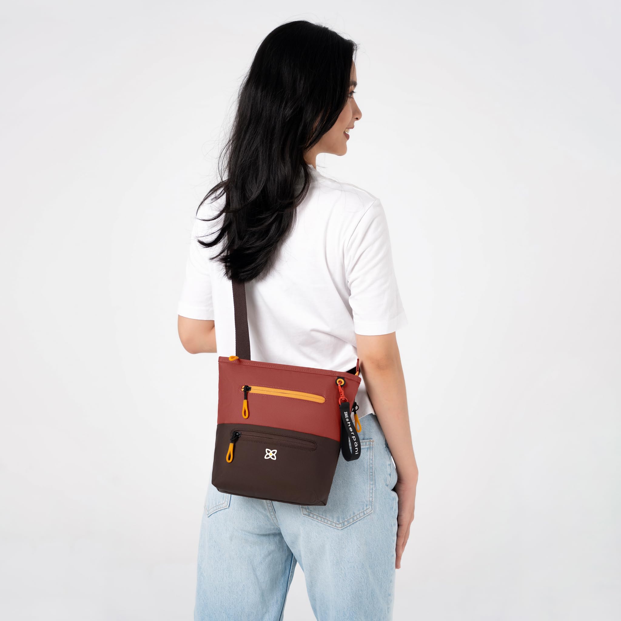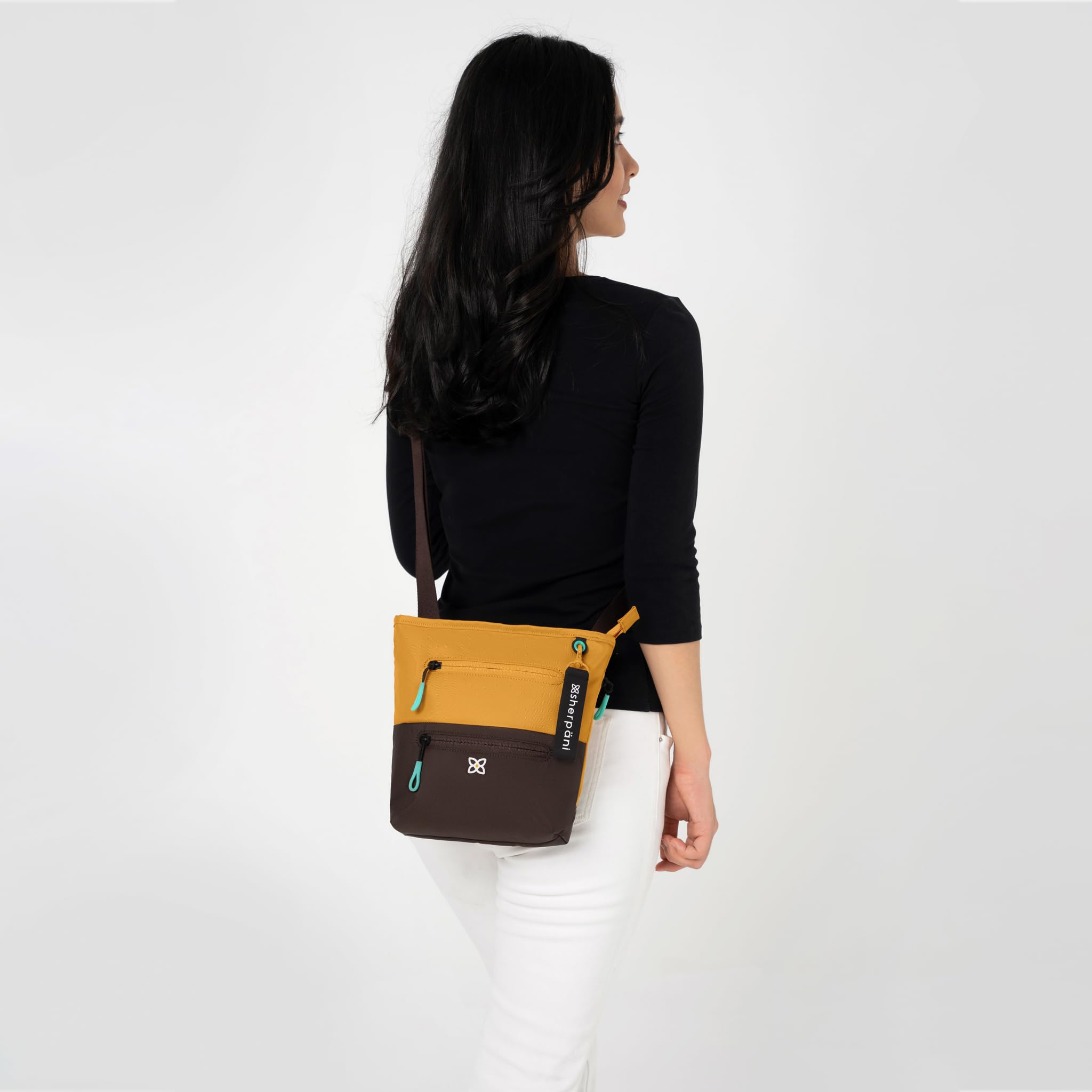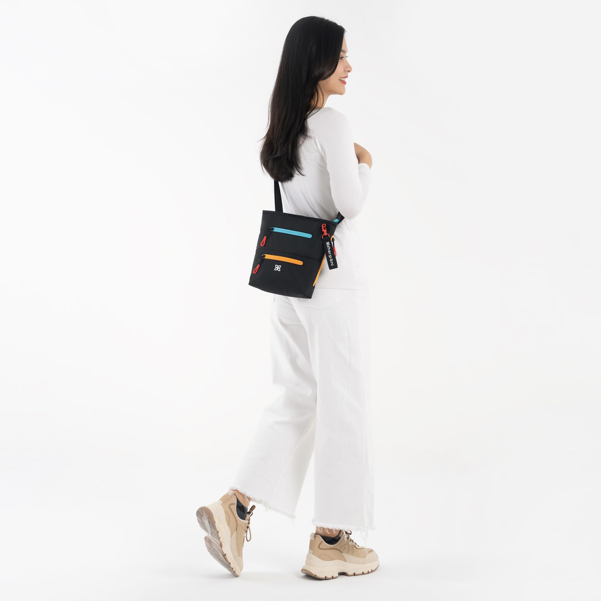 This mighty, medium size crossbody is ready for your most active days. The Sadieâ??s six pockets help keep your phone, keys, wallet, and other daily essentials organized. Made from 100% recycled fabric, the Sadie defines feel-good functionality.