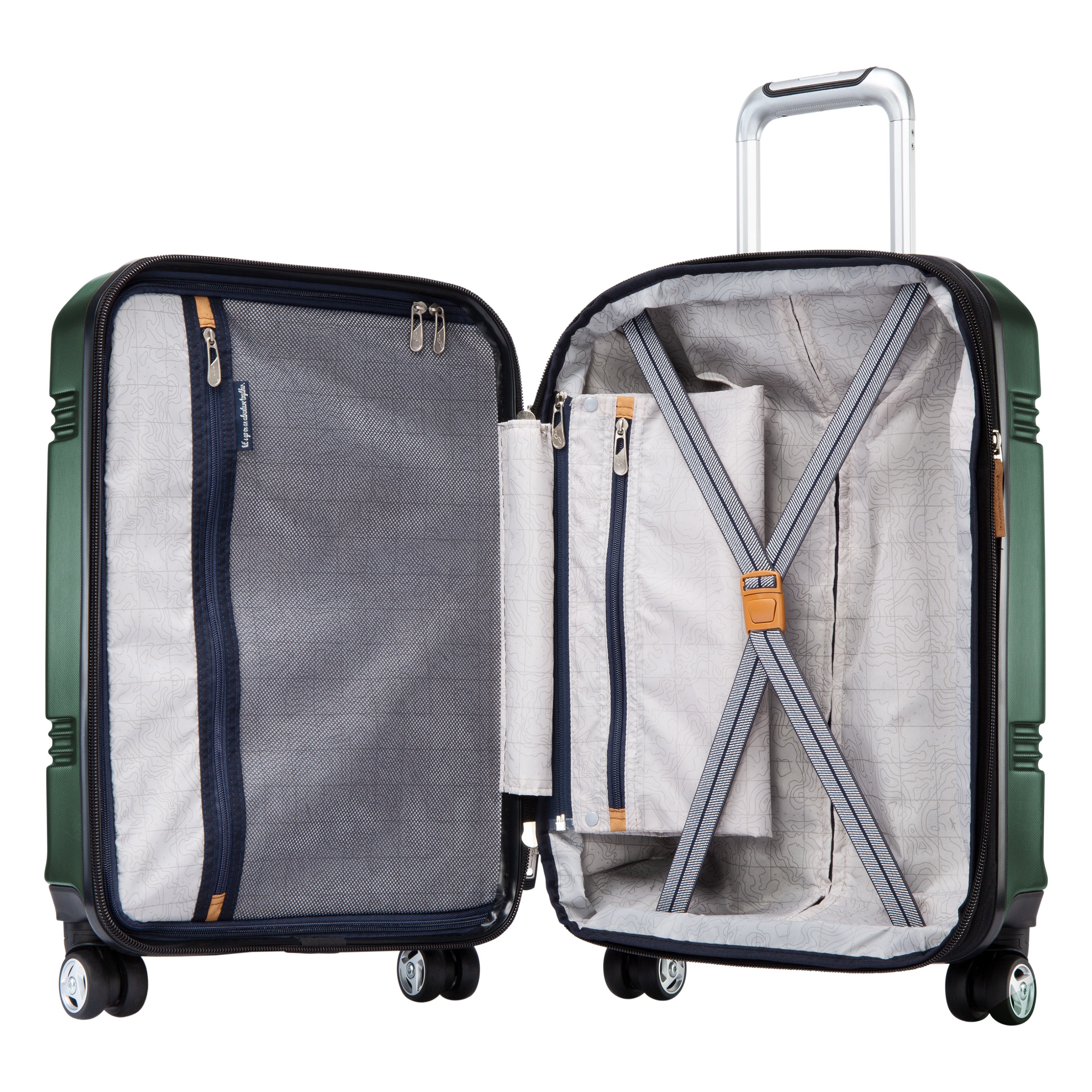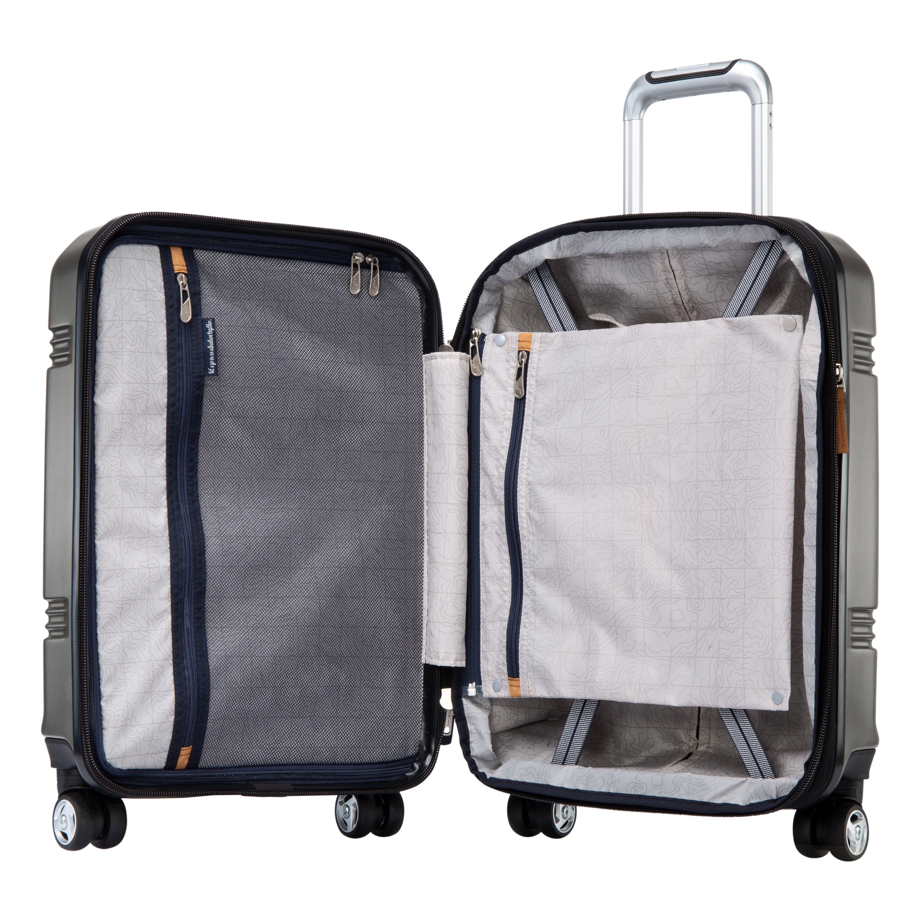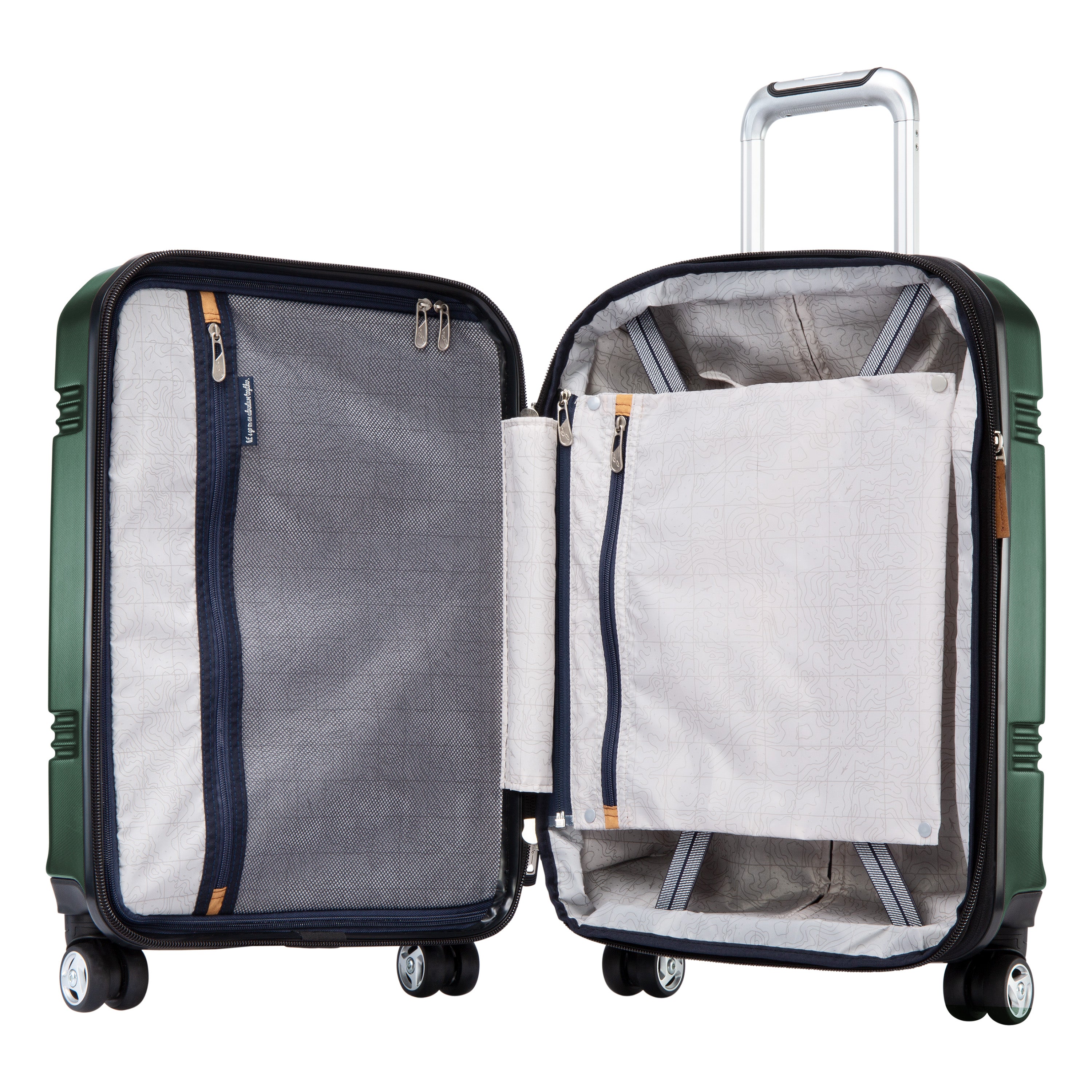 Crafted with eco-conscious PET, this durable carry-on suitcase helps any traveler support sustainability. And, with sturdy smooth-rolling wheels, a generous packing capacity, and interior organizational featureslike straps to secure packed items and a zip-away, expandable laundry bagthis reliable hardside makes an excellent travel companion.
