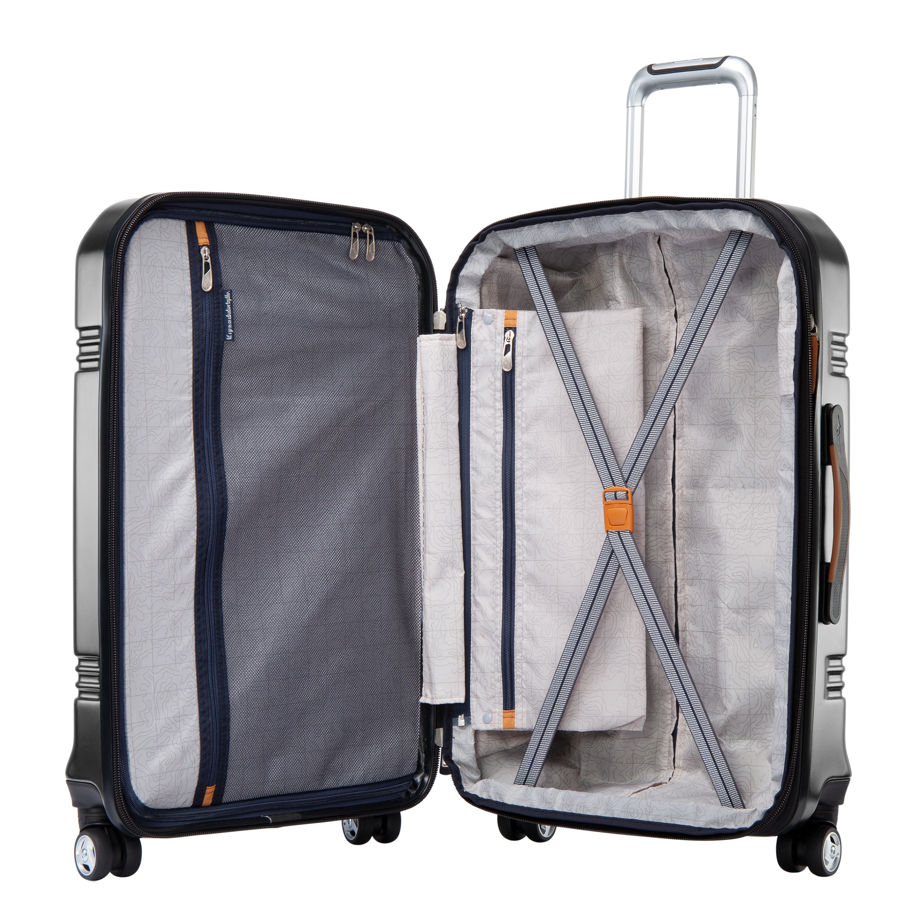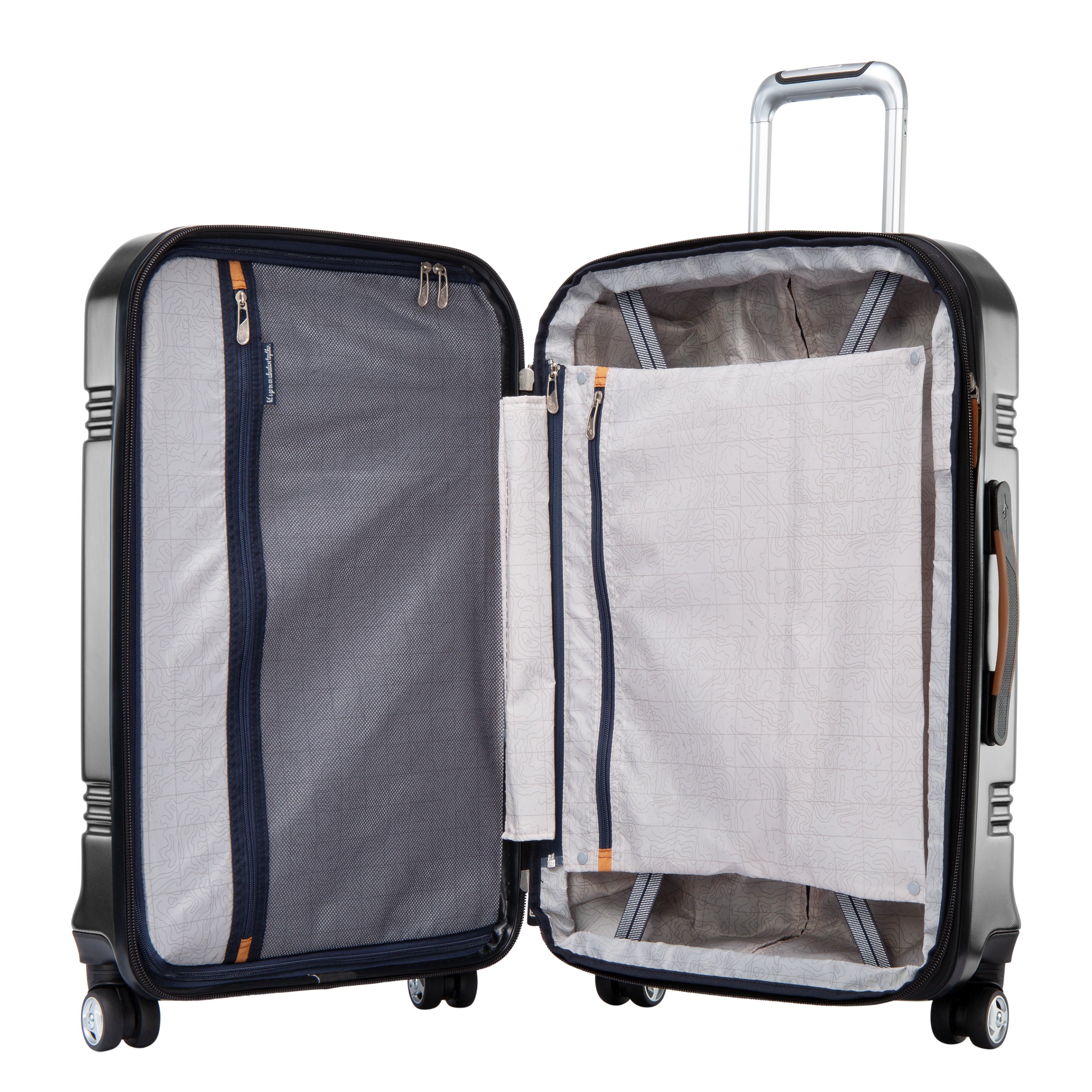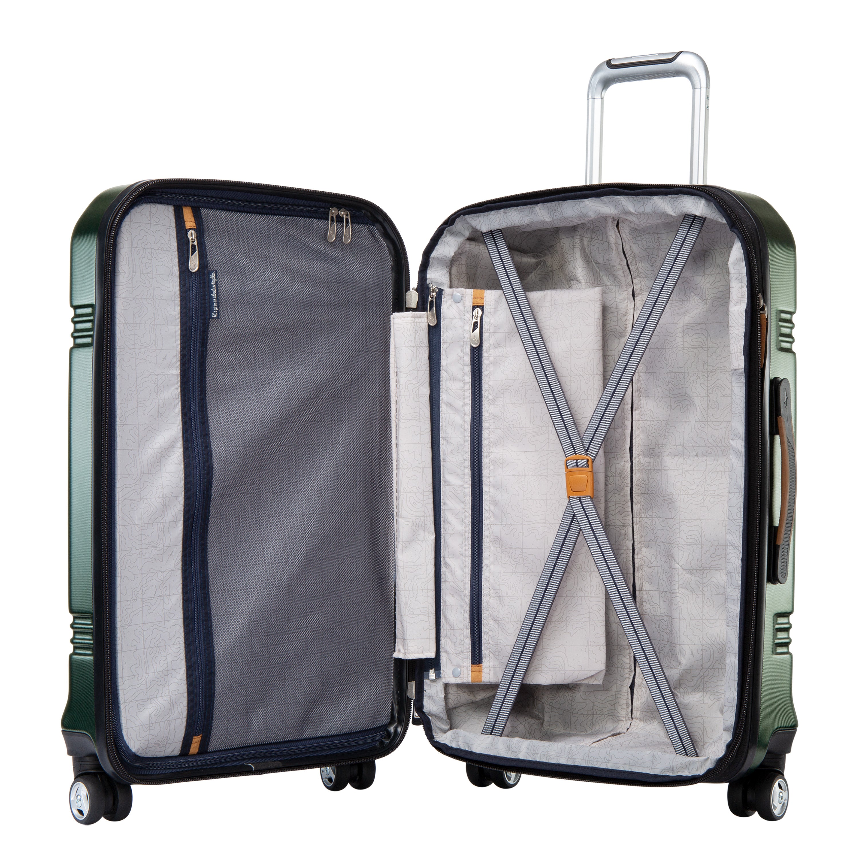 Crafted with eco-conscious PET, this durable carry-on suitcase helps any traveler support sustainability. And, with sturdy smooth-rolling wheels, a generous packing capacity, and interior organizational featureslike straps to secure packed items and a zip-away, expandable laundry bagthis reliable hardside makes an excellent travel companion.