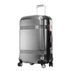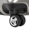 • Top carry handle; bottom carry grip. Dual any-directional wheels; recessed for stability.