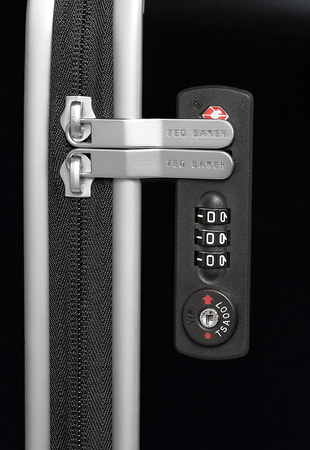 High Definition Ted Baker Take Flight Collection: Bronze Herringbone Each iconic high-definition design has been lovingly hand-applied, using 'first of its kind' water transfer technology ensuring maximum life span and 'best in class' quality. Unique trolley system made from strong, lightweight aircraft grade aluminium. Faux leather ergonomic 'T' branded handgrip.