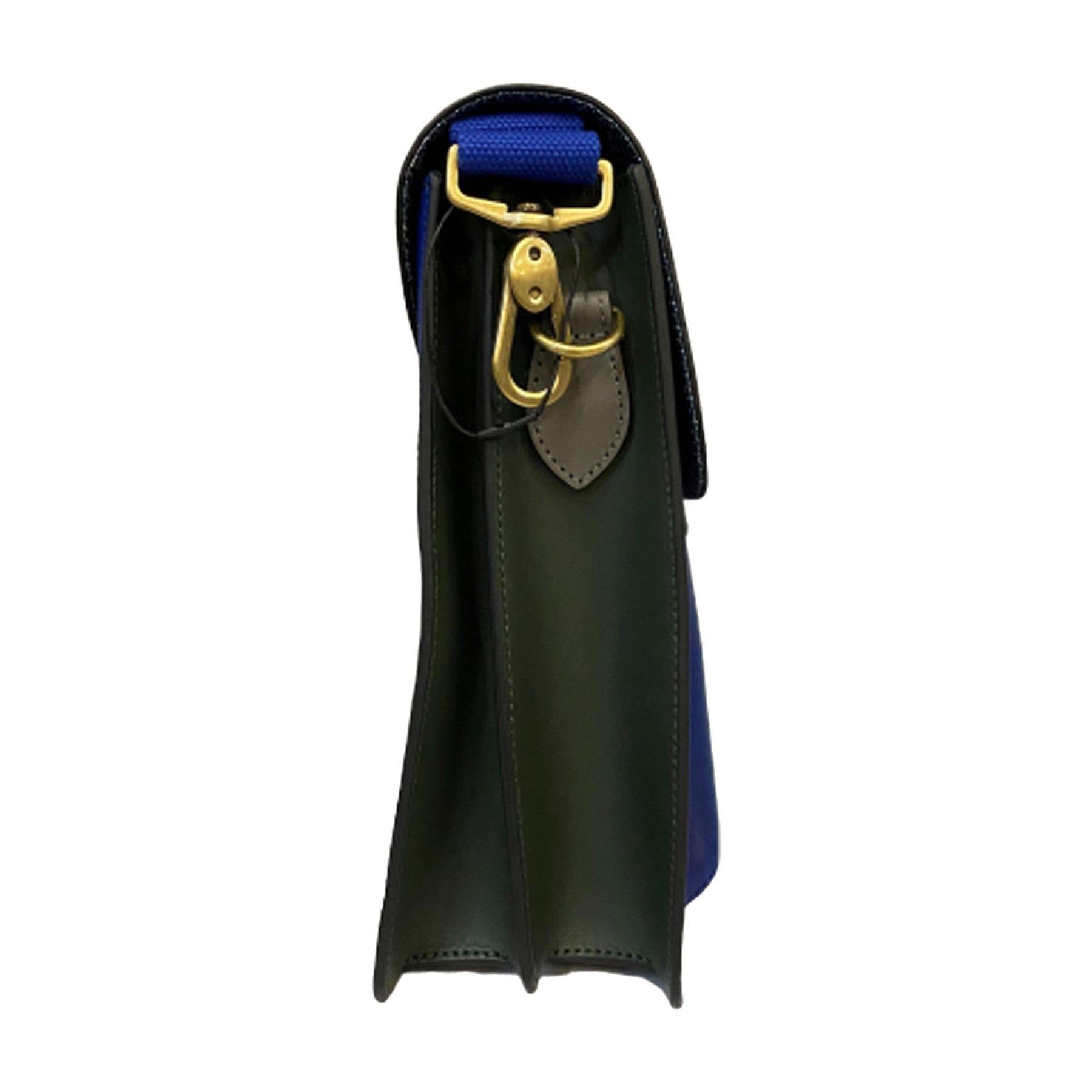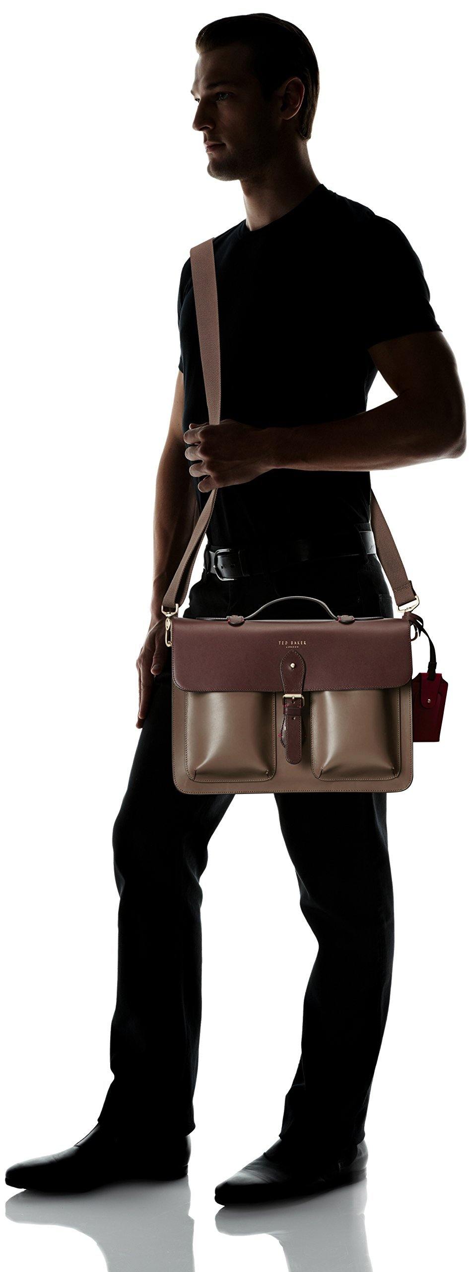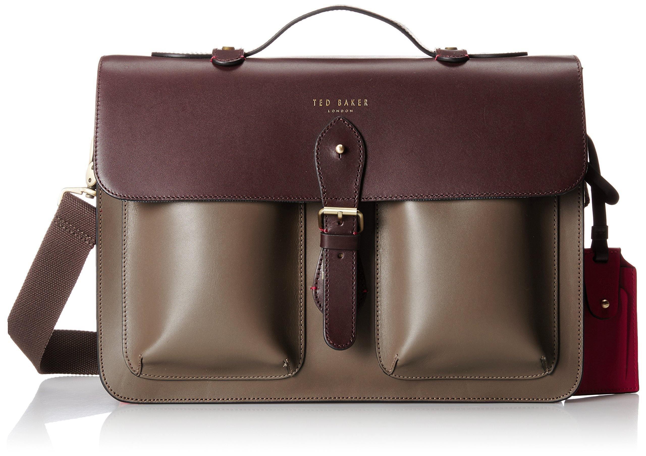 Hearty, three-color leather forms a utilitarian document bag tinged with a bit of vintage charm and fitted with an array of pockets for effortless organization on the go.
