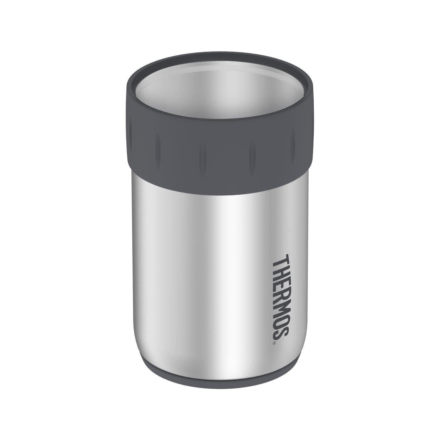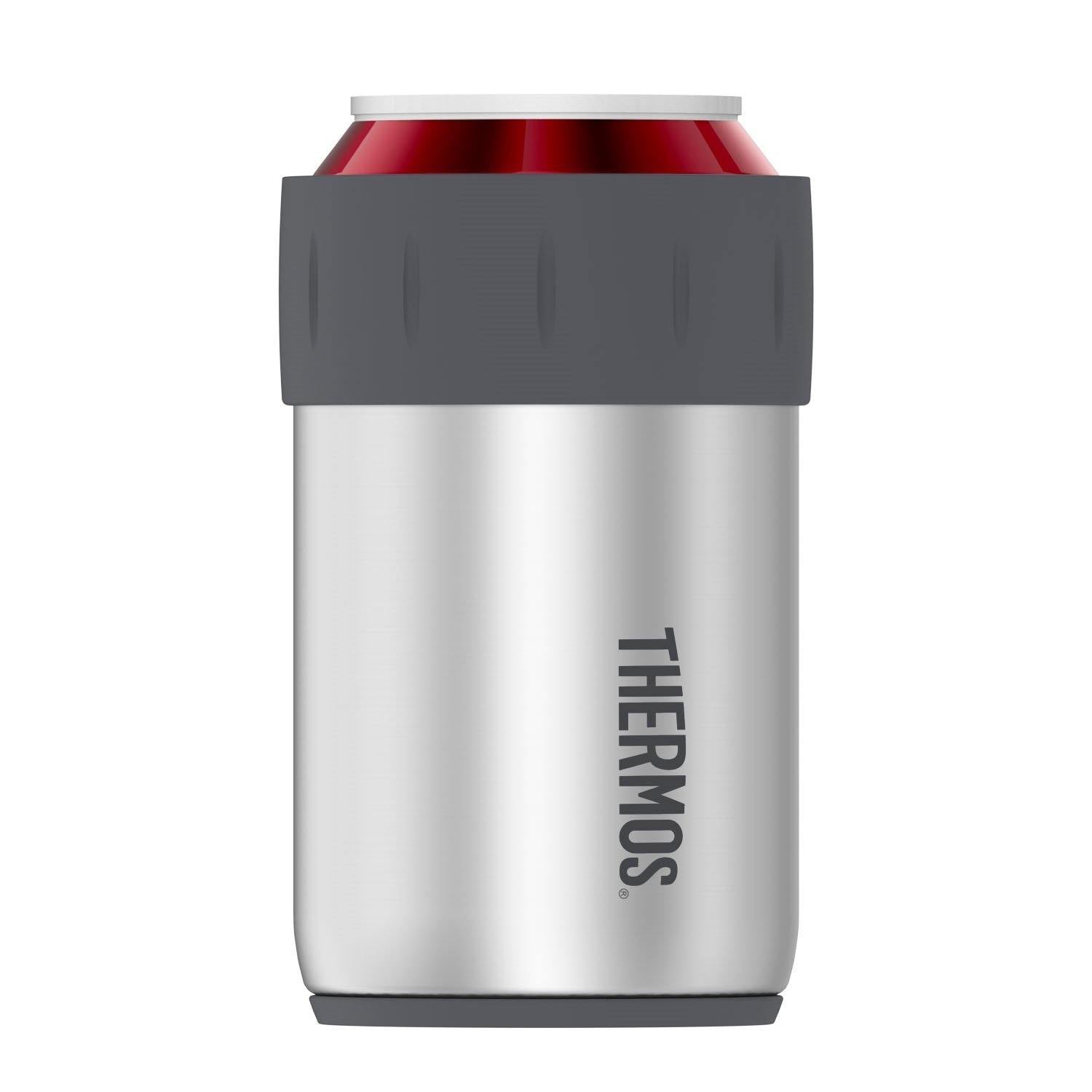 Size:12 Ounce | Color:Stainless Steel The Genuine Thermos Brand Beverage CanInsulator is the go-to item for tailgating, road trips, and keeping cannedbeverages cold longer than ever before. Featuring double wall stainless steelconstruction, this vacuum insulated can insulator keeps hands protected fromicy cold cans and keeps drinks cold up to three hours, 10 times longer than abare can. The sweat-proof design will not leave water rings and the rubbergrip is comfortable to hold. Fits most automotive cup holders.