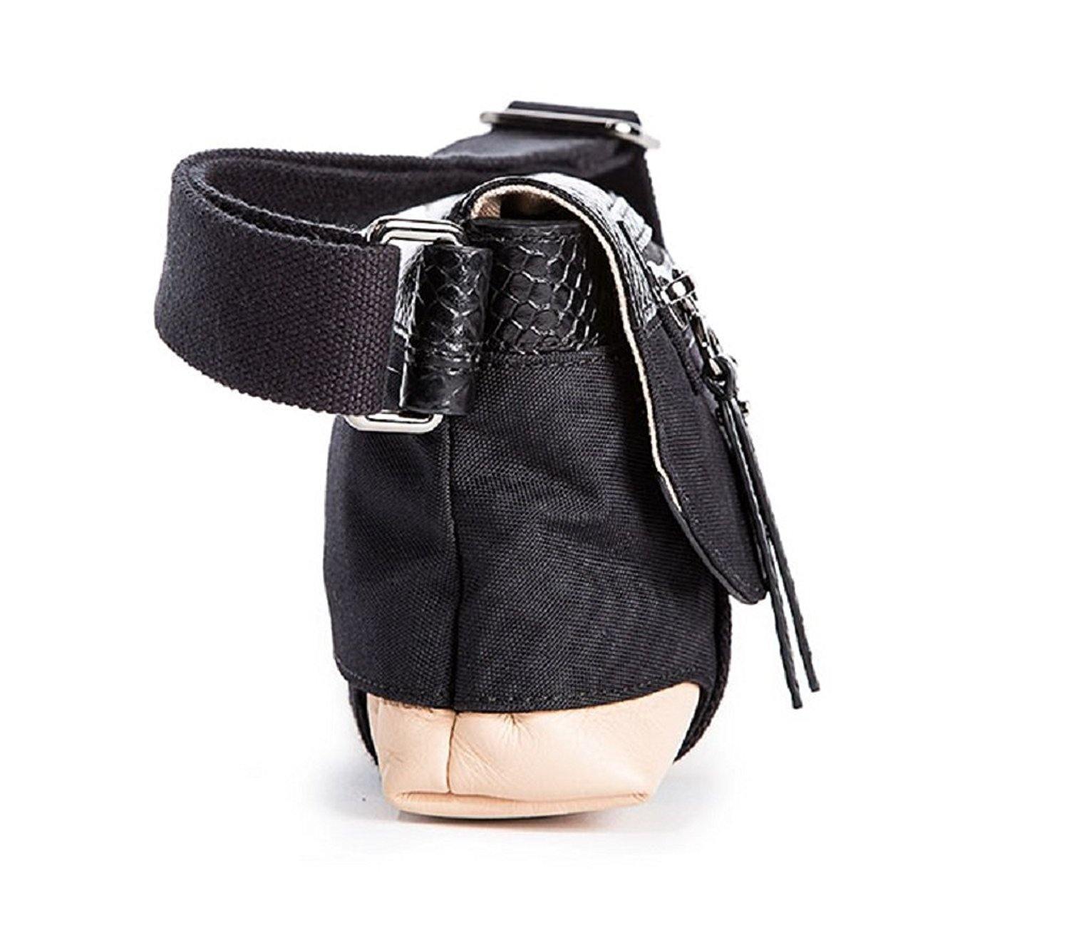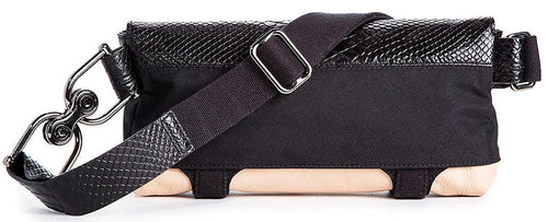 • Convertible and adjustable webbing belt with leather trim, can also be worn cross-body