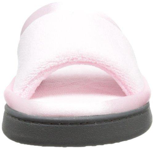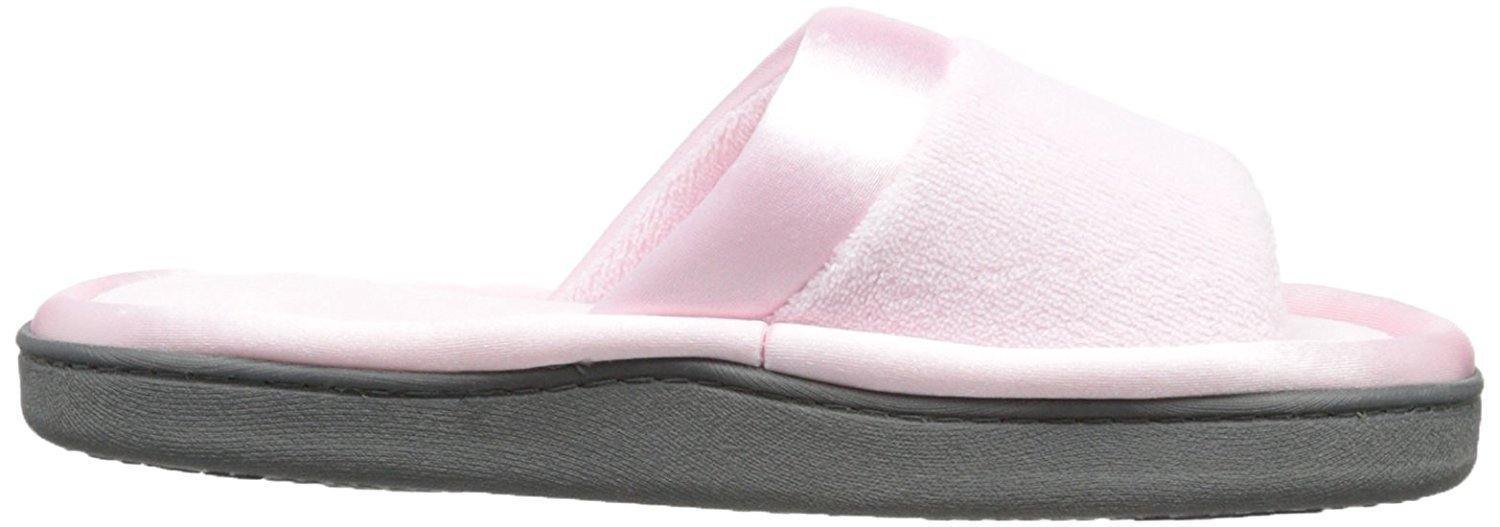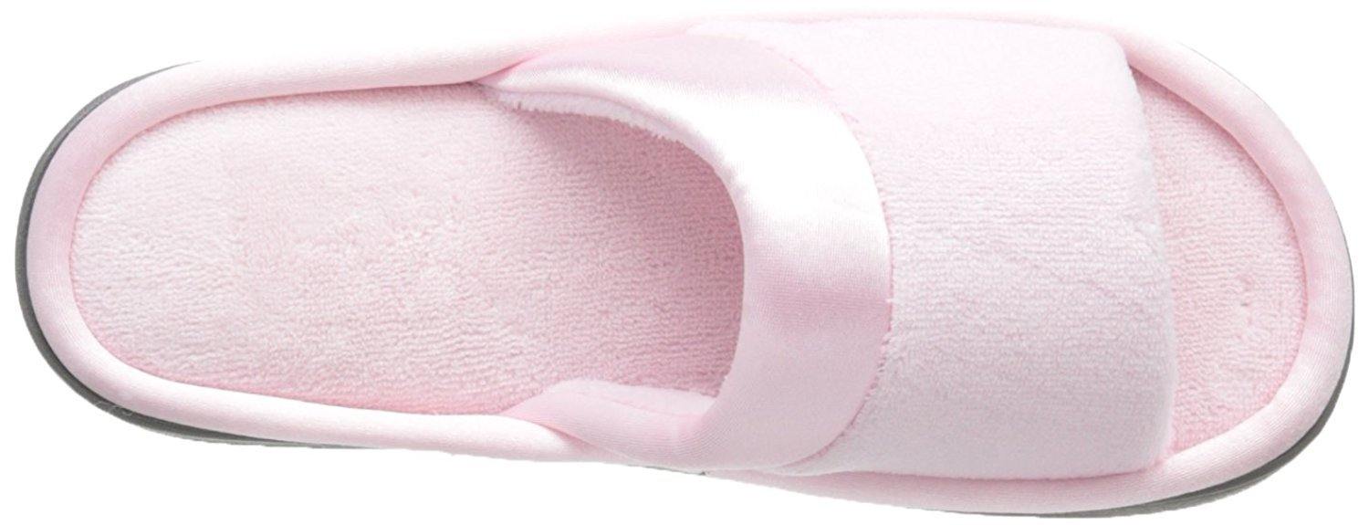 isotoner Women's Microterry Slide Slipper with Satin Trim, Peony, 7.5/8