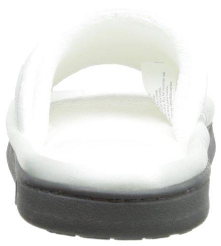 isotoner Women's Microterry Slide Slipper with Satin Trim, White, 9.5/10