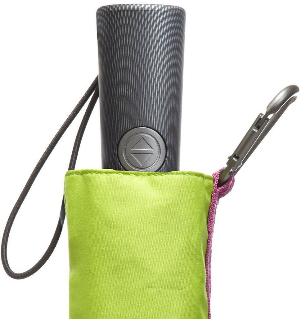 Weather or not, you're ready to go with our TRX TITAN Umbrella. Designed to keep you dry no matter what activities come your way. Scotchgard Water Resistance fabric canopy protects you from rain. TITAN Technology withstands winds up to 70 MPH with it's durable frame construction. SunGuard UPF 50+sun protection covers you from harmful UV rays, so you'll be sure to use it rain or shine. Carabiner case attaches to easily to bags so you can bring it along wherever you go. Reflective tape on umbrella borders for safety. Auto open and close with the push of a button allows you to enter doors with ease. Weighs 14.5 ounces.