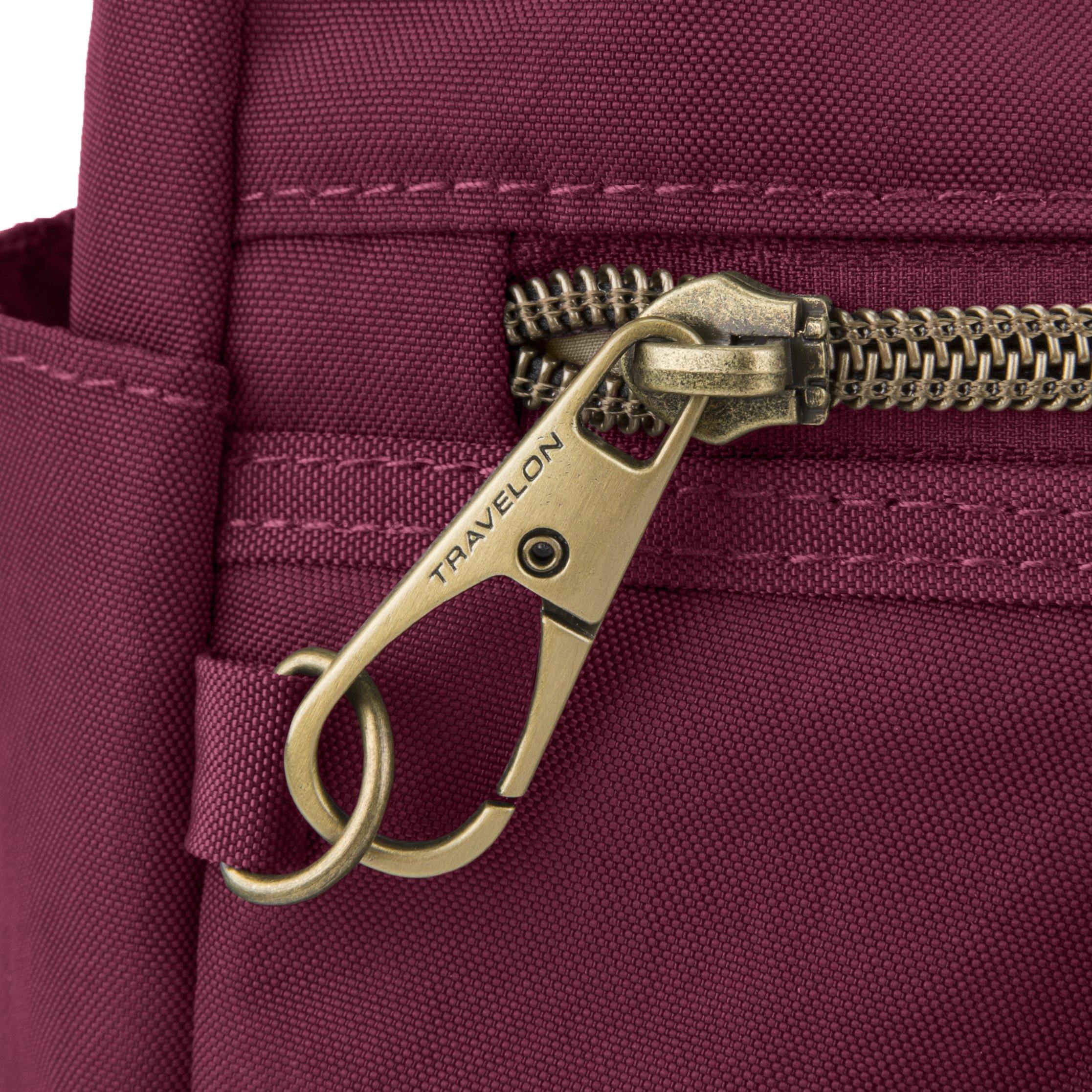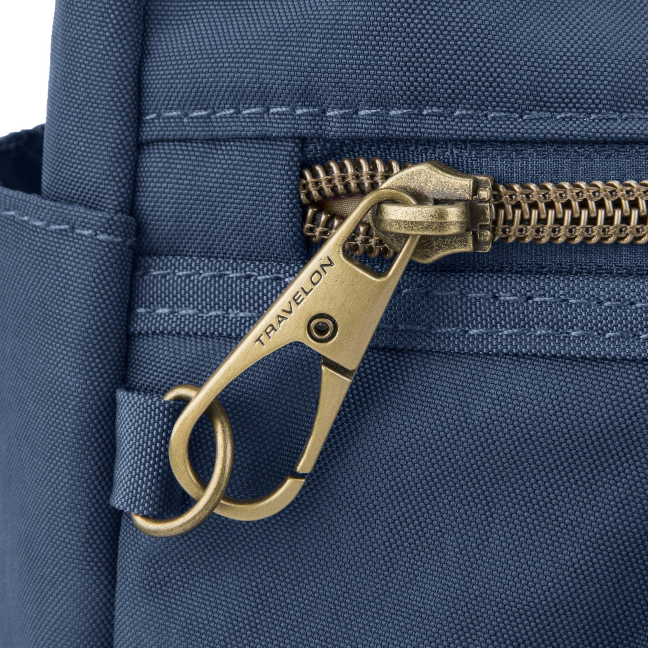 • Anti-Theft features include locking zippers, slash-resistant body panels, a slash-resistant shoulder strape, and RFID protection to keep your personal information secure from high-tech electronic readers trying to steal your identity.