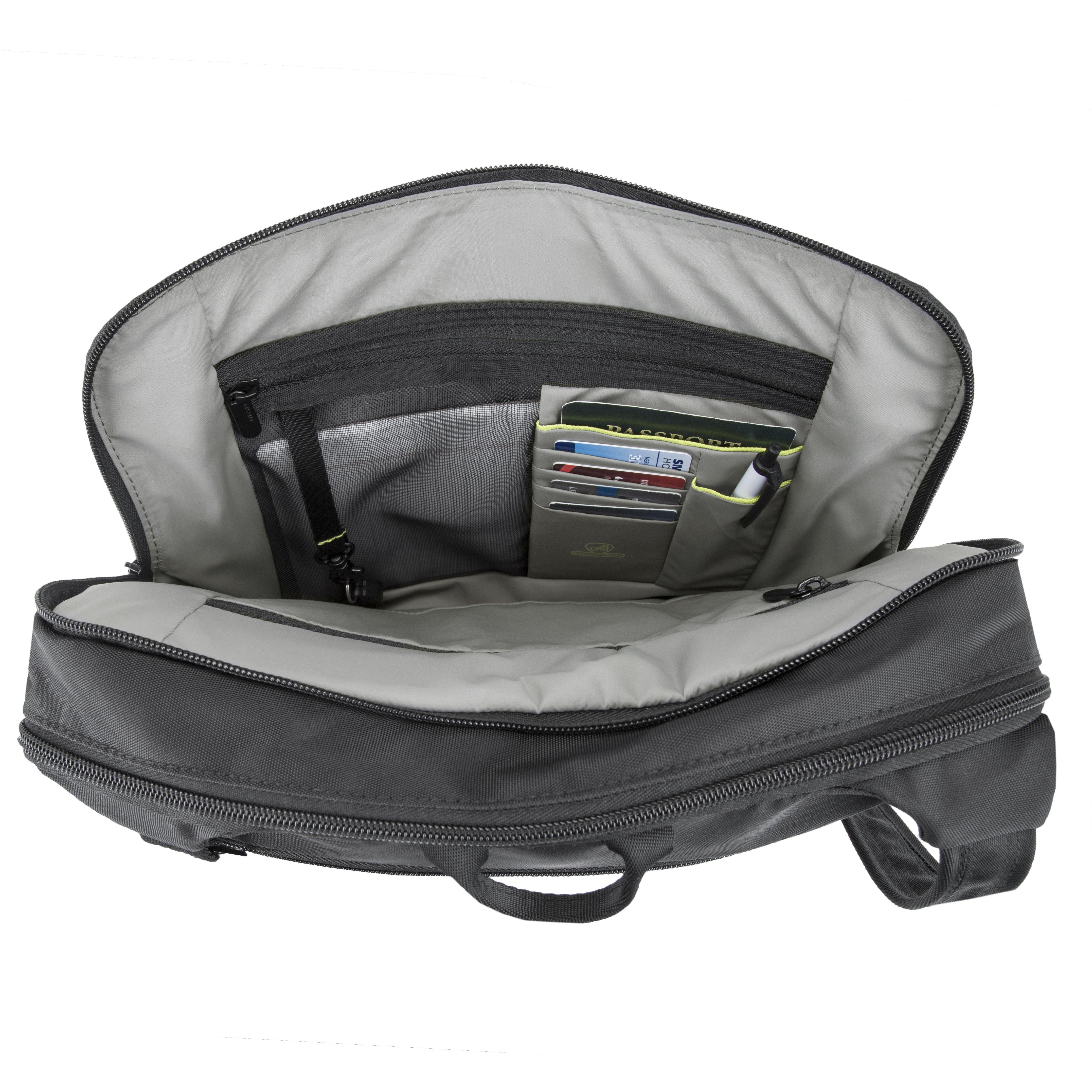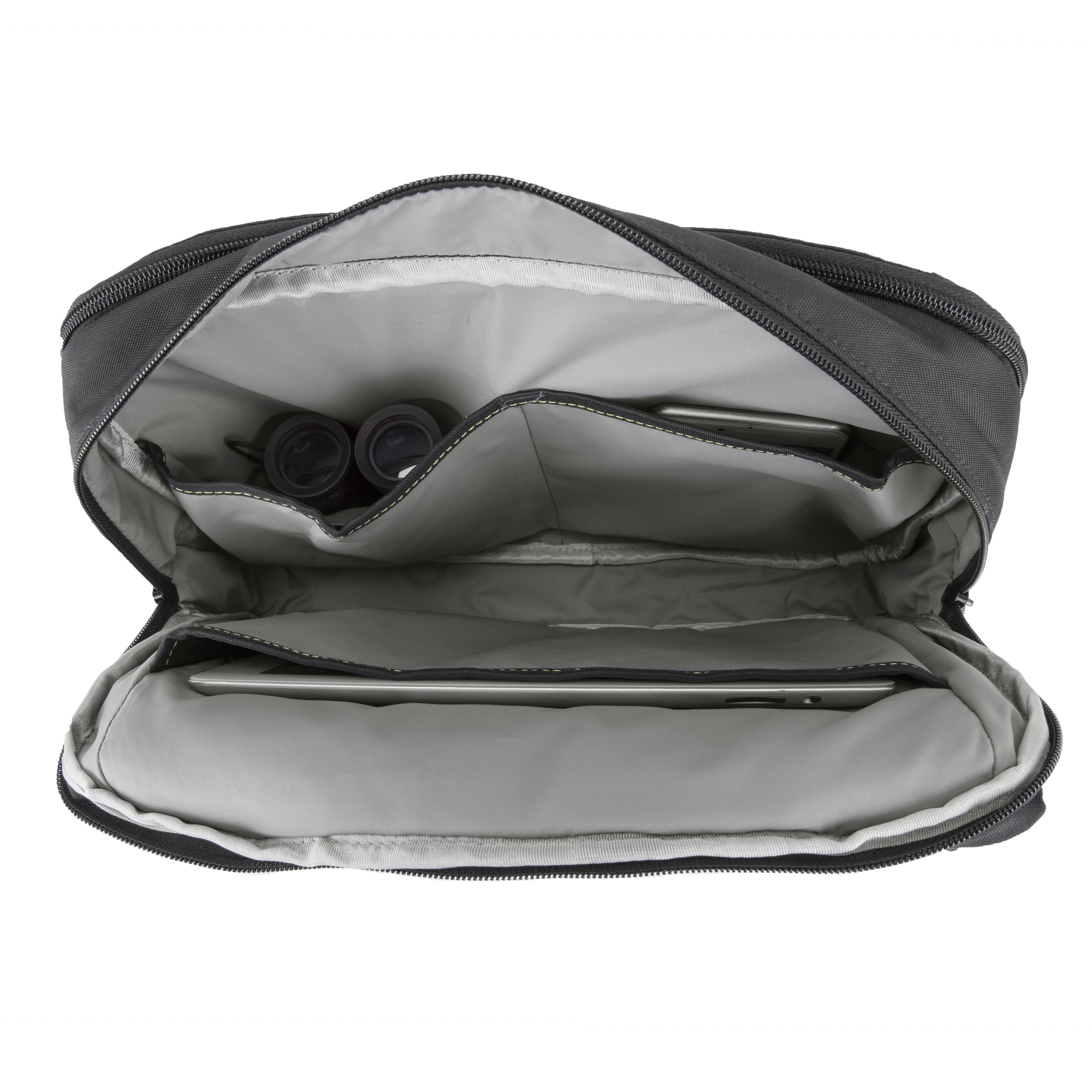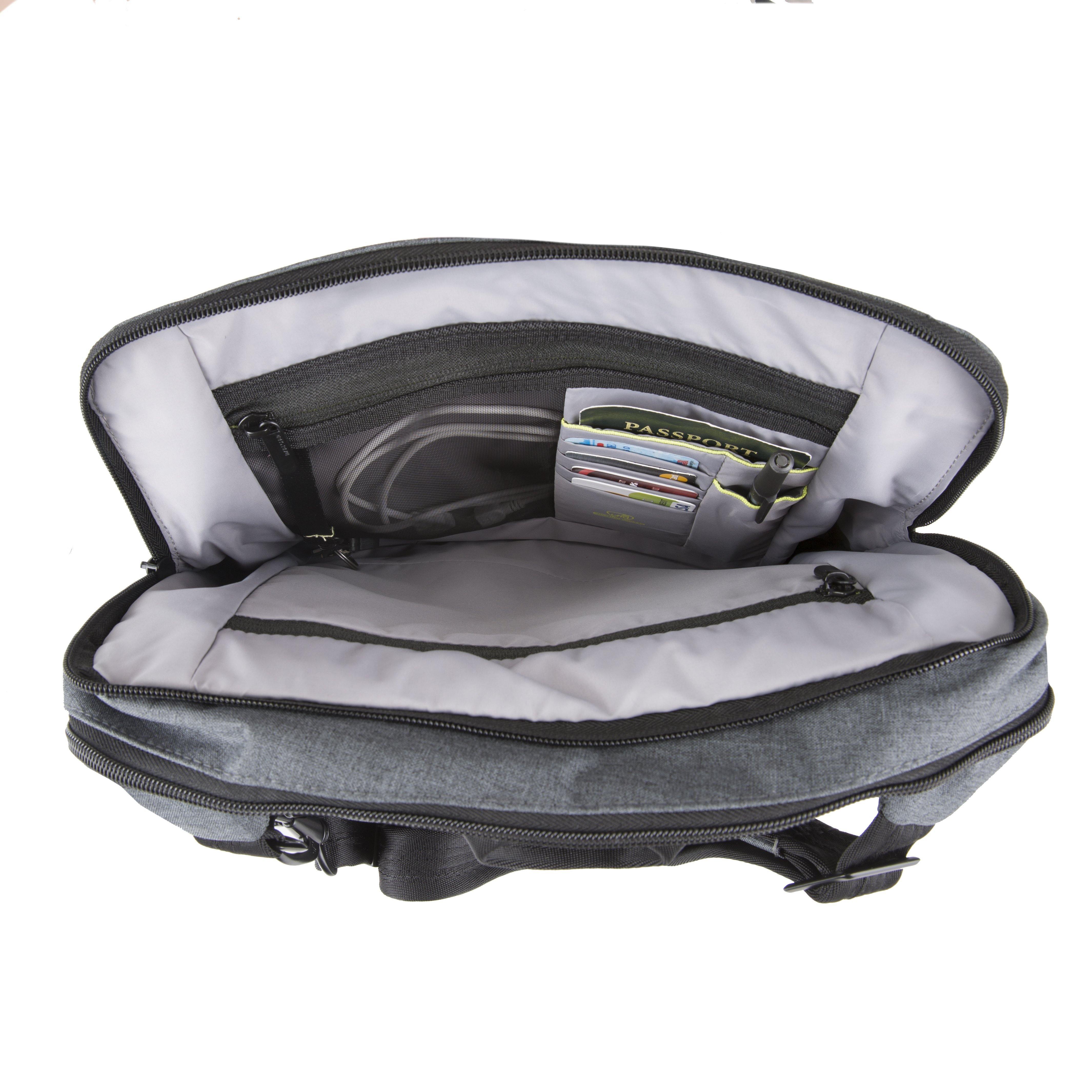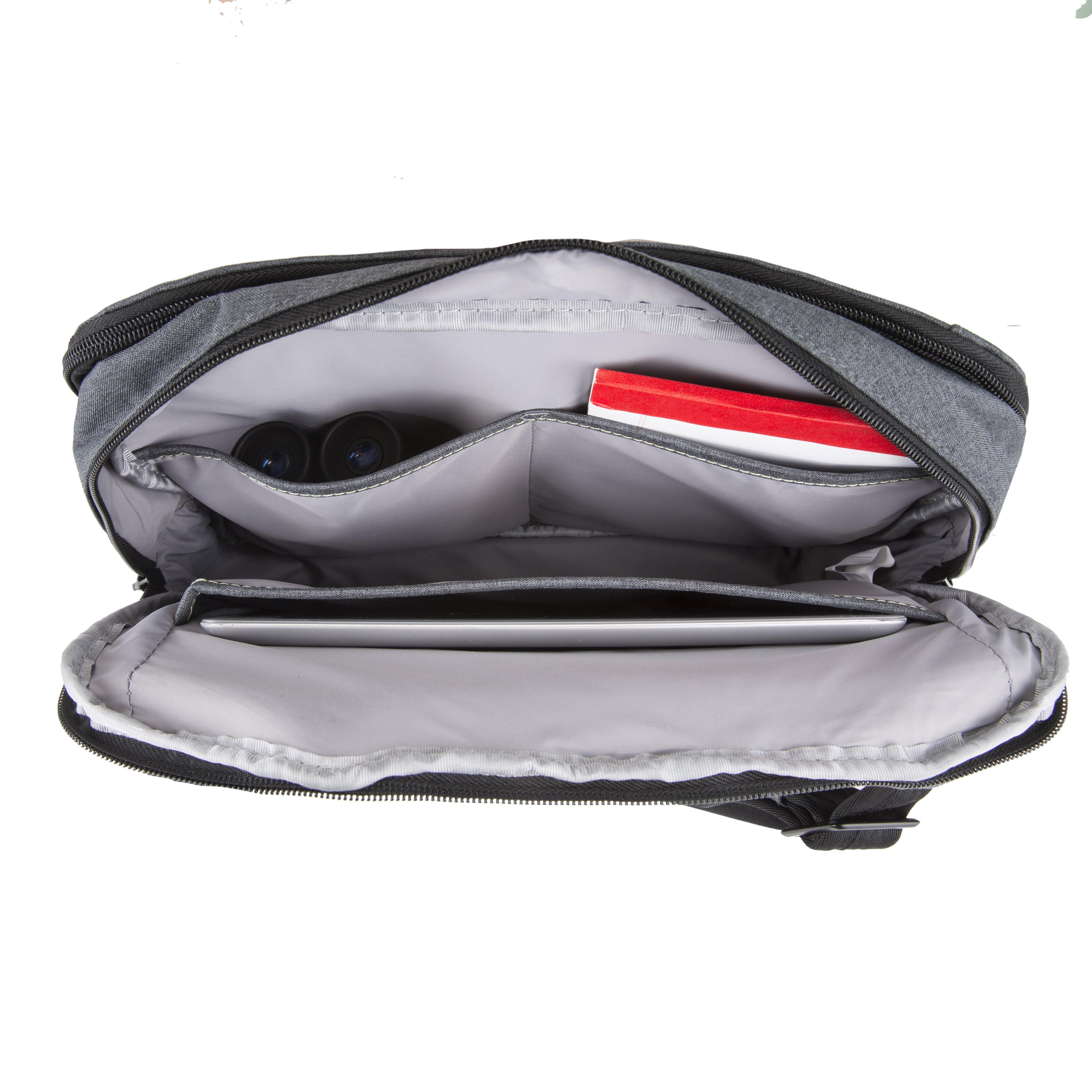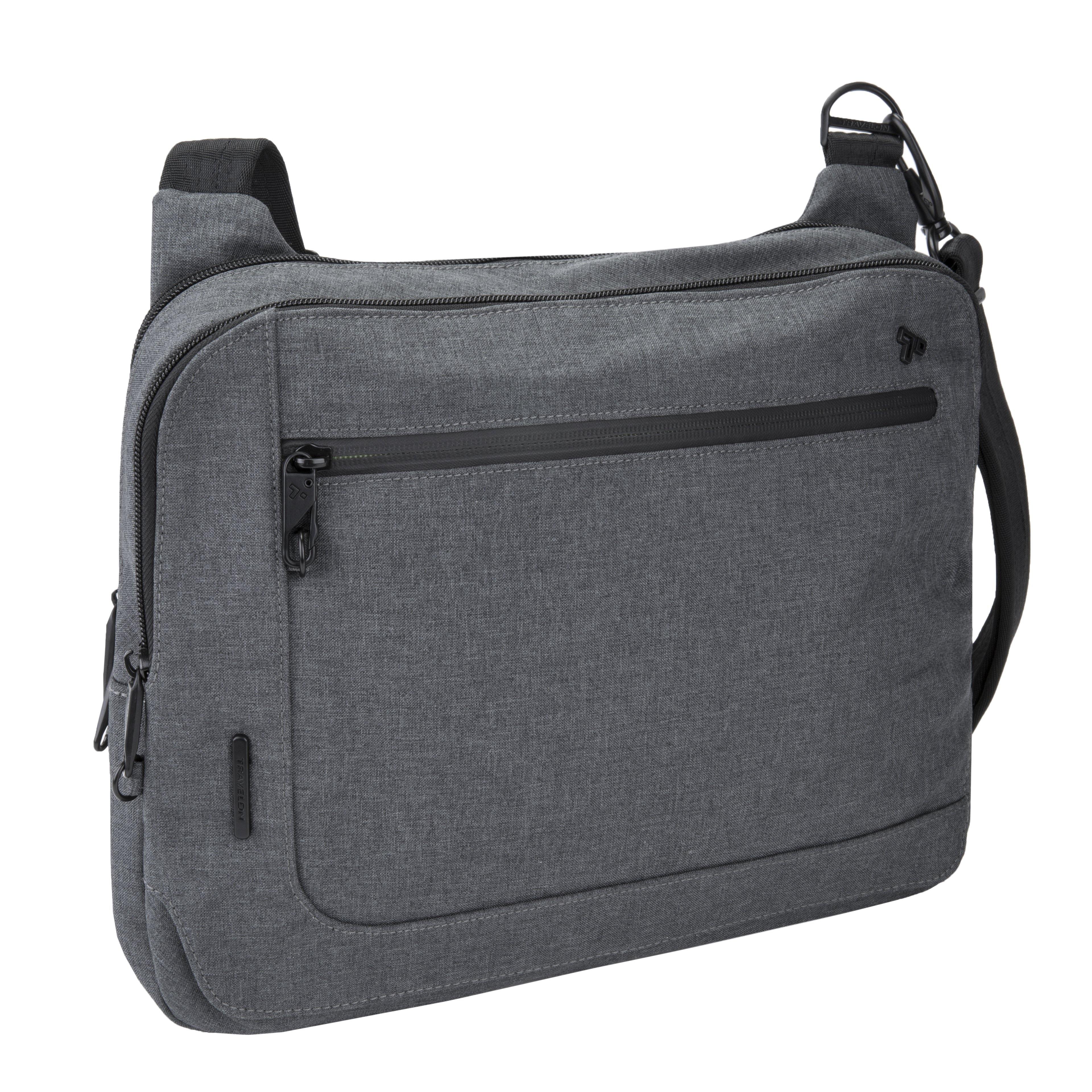 The Tablet Messenger bag has enough space for all your needs during flight or recreation. It is the perfect bag to transition from travel to meeting. Your tablet, notepad, and phone can all be contained securely in the padded rear pocket. The RFID protected front compartment is large enough to hold your passport and other important documents. It is slash-resistant with an adjustable shoulder strap and has two locking compartments for added security