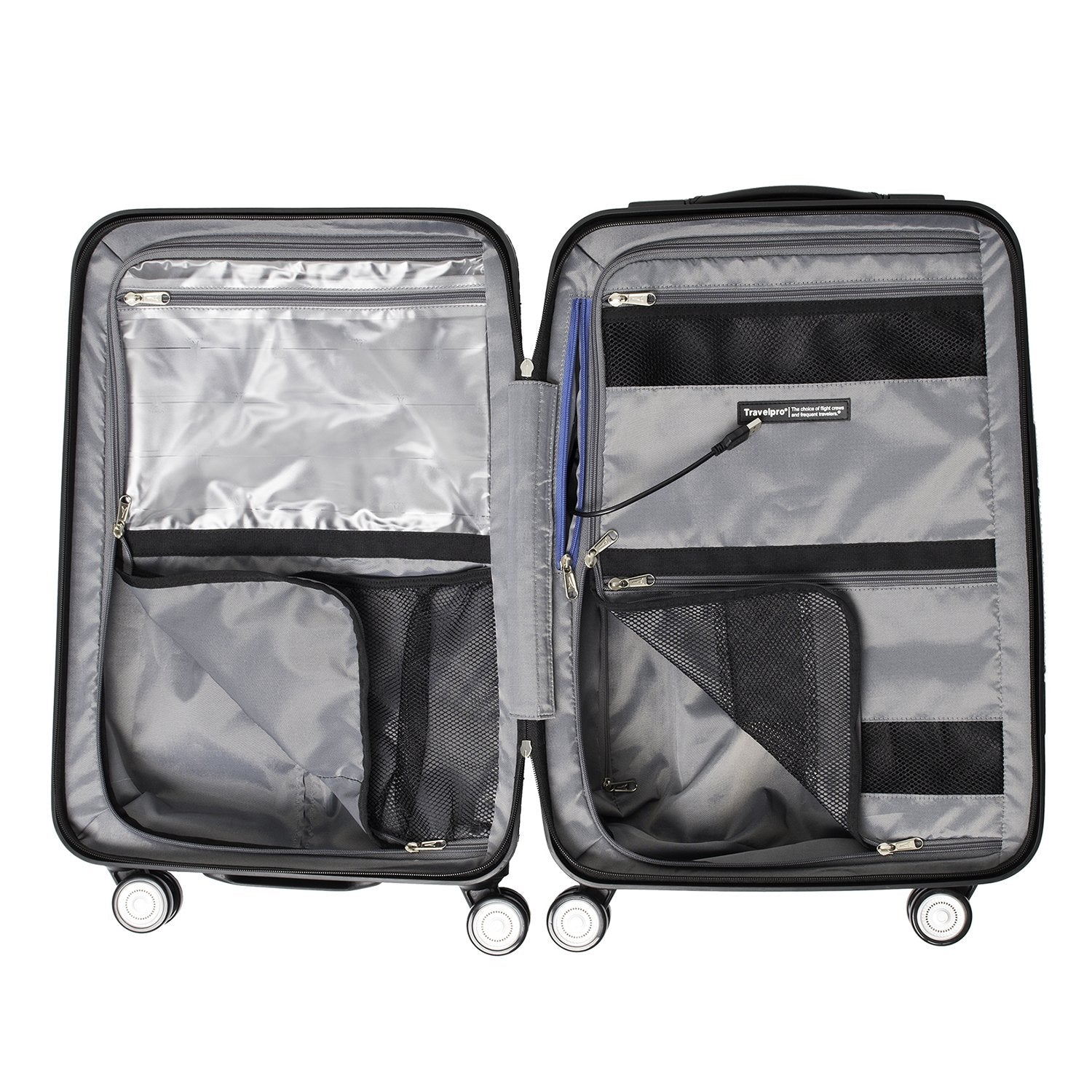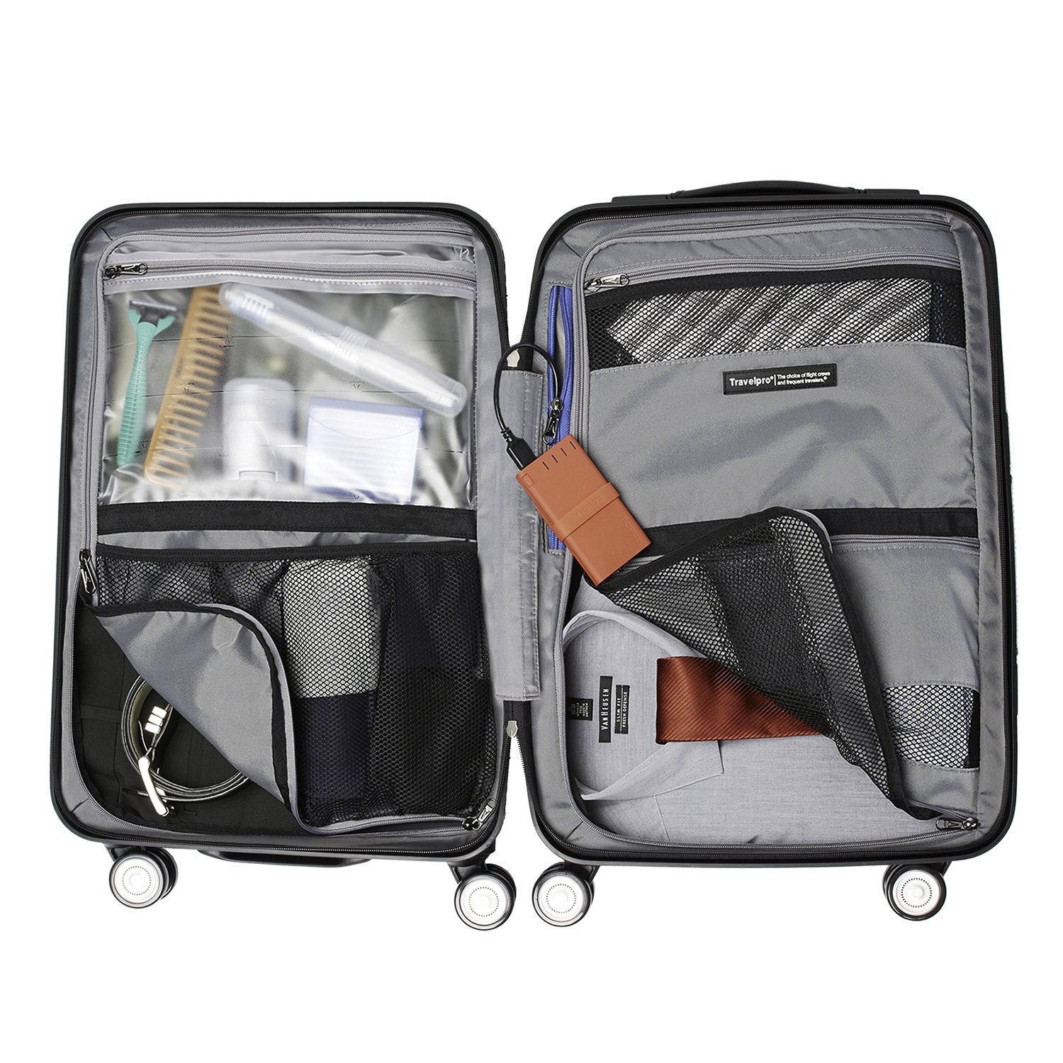 The Crew 11 hardside 21" Spinner is ideal for the frequent traveler who needs a lightweight, reliable yet stylish suitcase. Among it's numerous features, it offers a spacious interior, zipper divider, wet and dry pockets and sturdy molded corner armor. Feel confident that your belongings are protected with the TSA Lock. In touch with your modern needs, it has a dedicated power bank pocket witch connects to an external USB port. Because TravelPro always go above and beyond your expectations, this suitcase even has a cup holder integrated to the back of the suitcase. Glide your way to your destination with the Patented MagnaTrac wheel system; the self-aligning magnetic dual spinner wheels ensure a smooth and straight line roll. Unique, sturdy and capable this suitcase is built to go the distance.