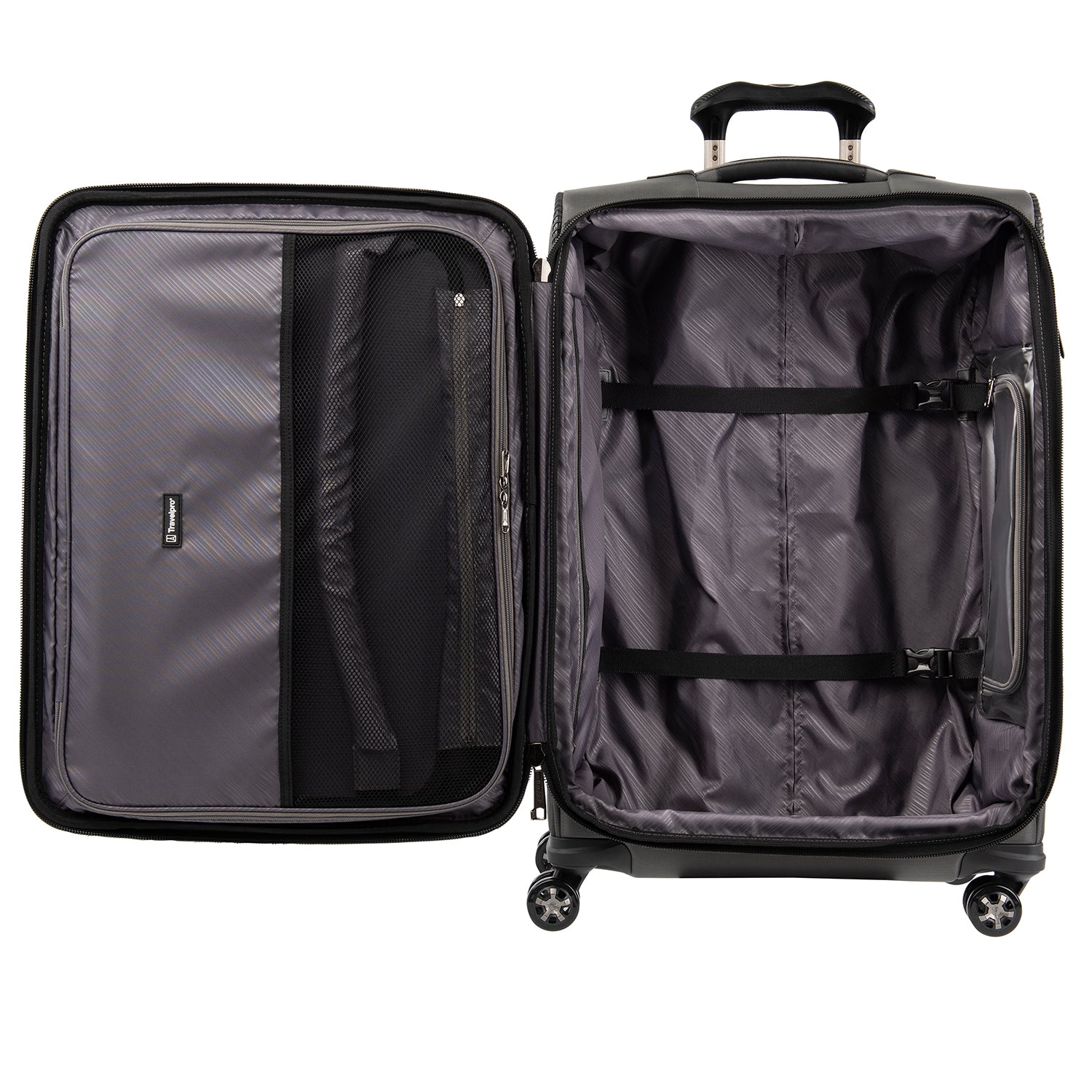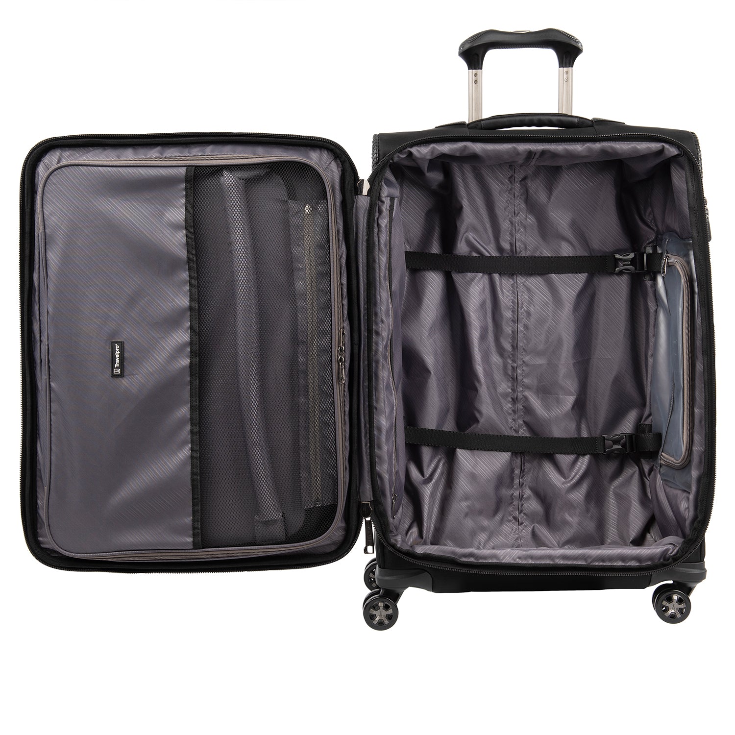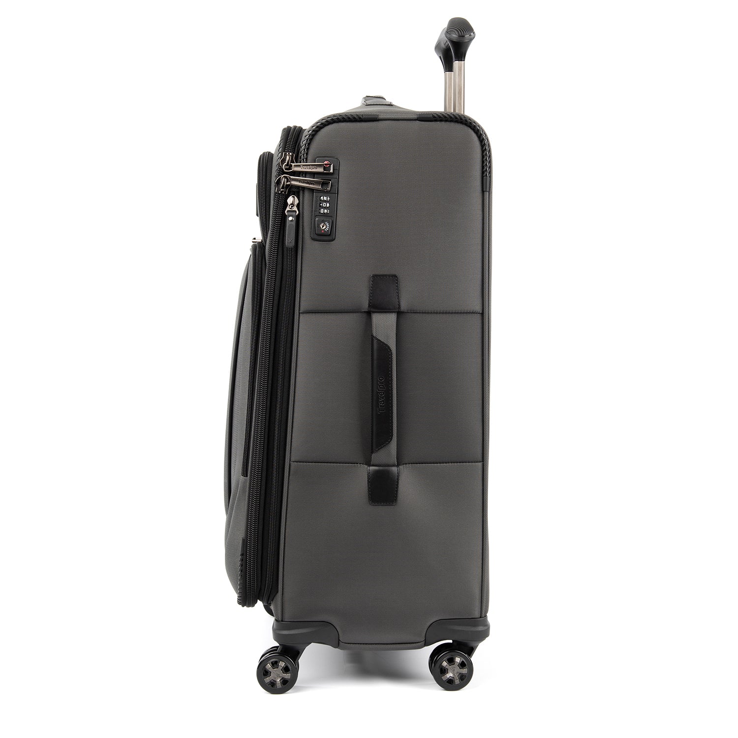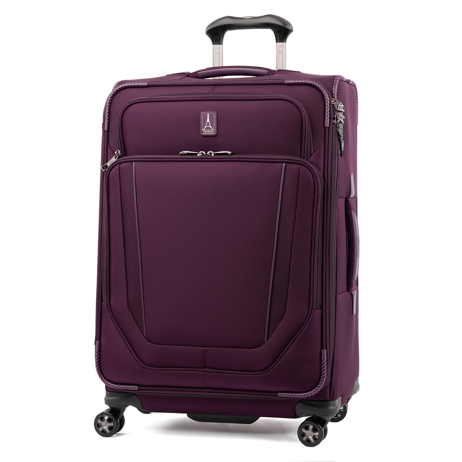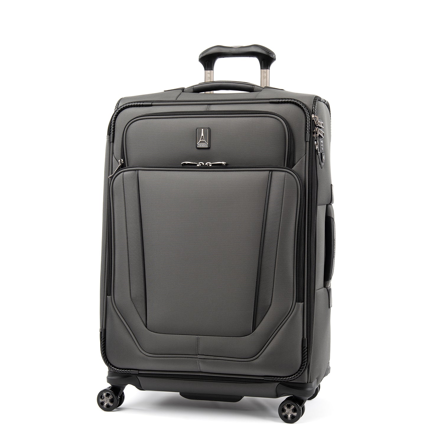 The durable Crew VersaPack 25" Expandable Spinner gives you checked bag security and packing versatility for medium and longer trips. Built to last, this ultra-sturdy spinner features a tip-resistant zippered expansion that increases packing space up to two inches and a built-in lock that allows TSA authorities to safely unlock and relock the bag when needed. Inside, a fold-out suiter system guards against wrinkles, adjustable hold-down straps keep contents in place and water-resistant storage and an accessory pocket add convenience and organizing flexibility. Wherever you journey, enjoy precise control and effortless roll with the PrecisionGlide Systemeight ultra-durable, 360 MagnaTrac Spinner Wheels led by a four-stop, height-adjustable PowerScope Handle with comfortable Contour Grip. Built for professional-grade dependability with robust corner armor, skid guards and heavy-duty wheel housings, Crew VersaPack is the civilian version of the luggage flight crews use, tested to meet the same superior quality and durability standards. This spinner is further backed by the comprehensive