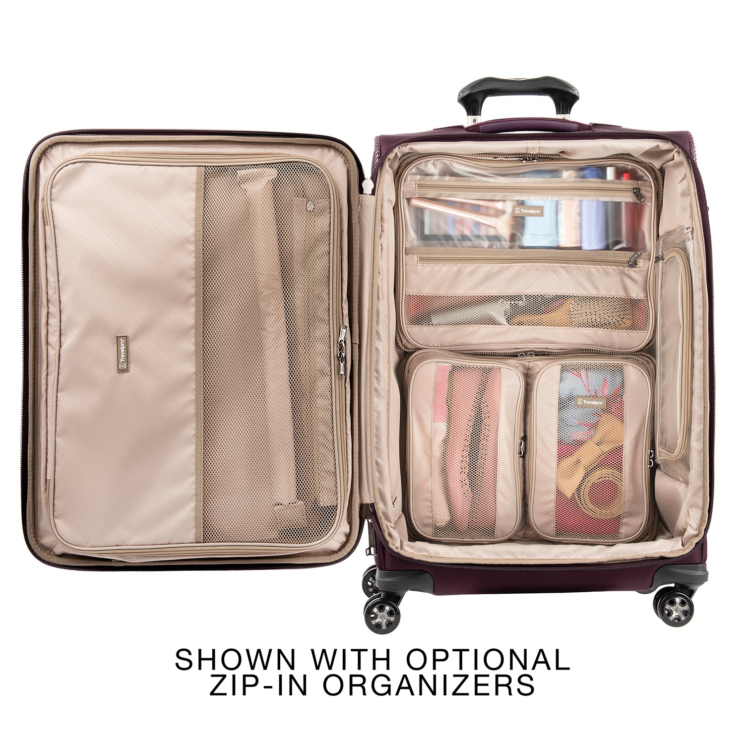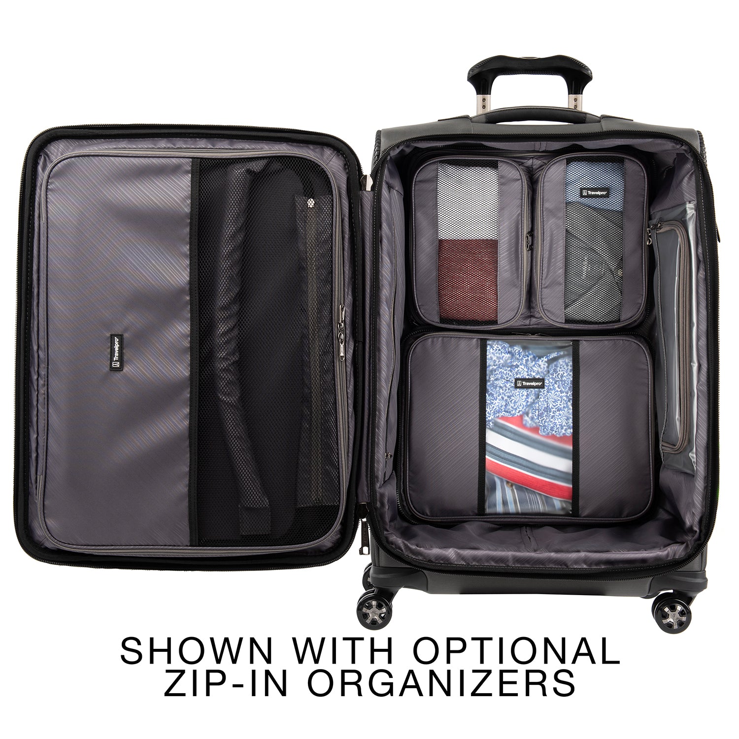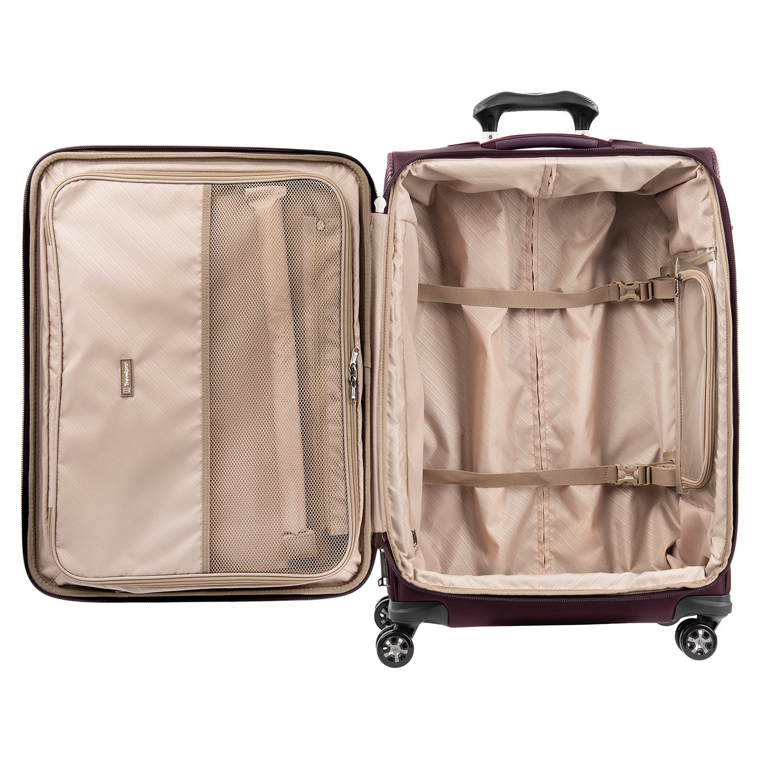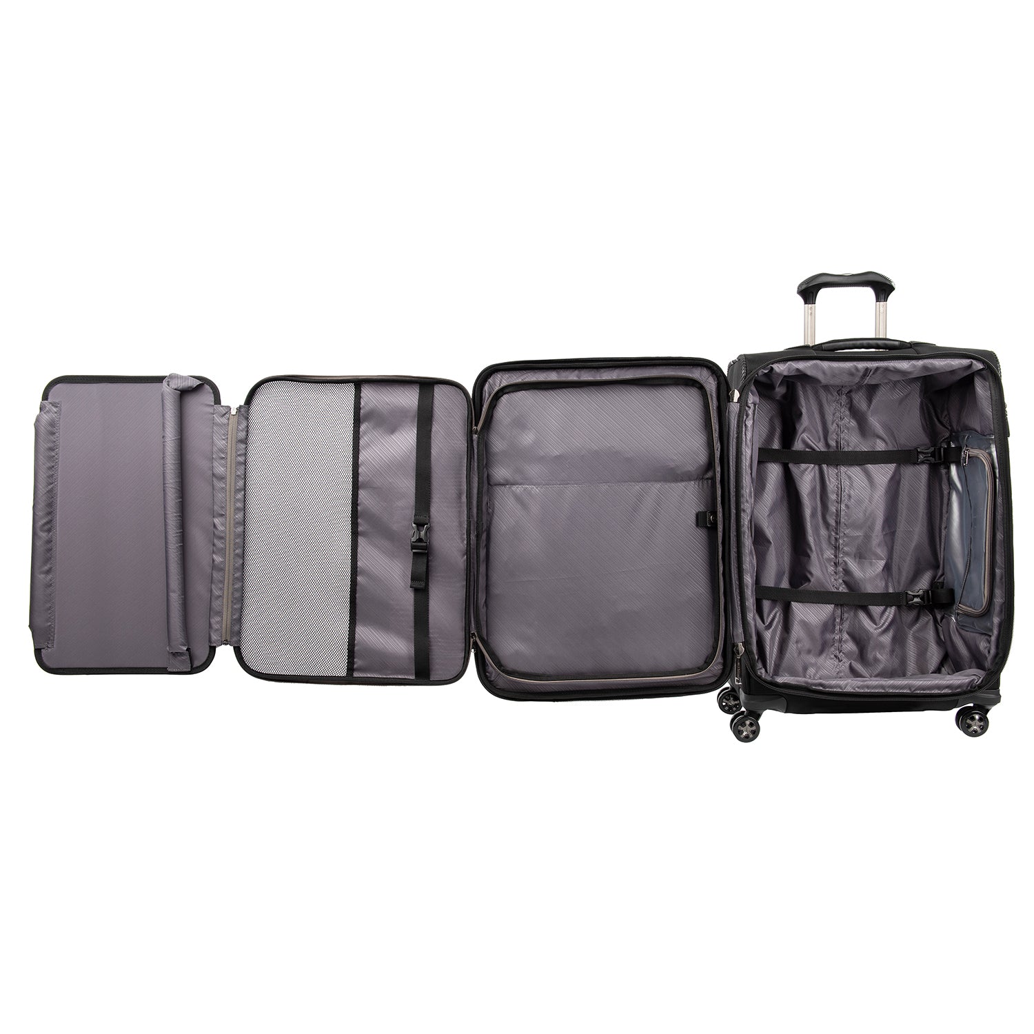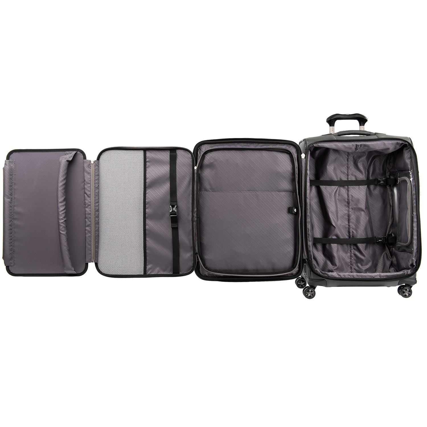 The durable Crew VersaPack 25" Expandable Spinner gives you checked bag security and packing versatility for medium and longer trips. Built to last, this ultra-sturdy spinner features a tip-resistant zippered expansion that increases packing space up to two inches and a built-in lock that allows TSA authorities to safely unlock and relock the bag when needed. Inside, a fold-out suiter system guards against wrinkles, adjustable hold-down straps keep contents in place and water-resistant storage and an accessory pocket add convenience and organizing flexibility. Wherever you journey, enjoy precise control and effortless roll with the PrecisionGlide Systemeight ultra-durable, 360 MagnaTrac Spinner Wheels led by a four-stop, height-adjustable PowerScope Handle with comfortable Contour Grip. Built for professional-grade dependability with robust corner armor, skid guards and heavy-duty wheel housings, Crew VersaPack is the civilian version of the luggage flight crews use, tested to meet the same superior quality and durability standards. This spinner is further backed by the comprehensive
