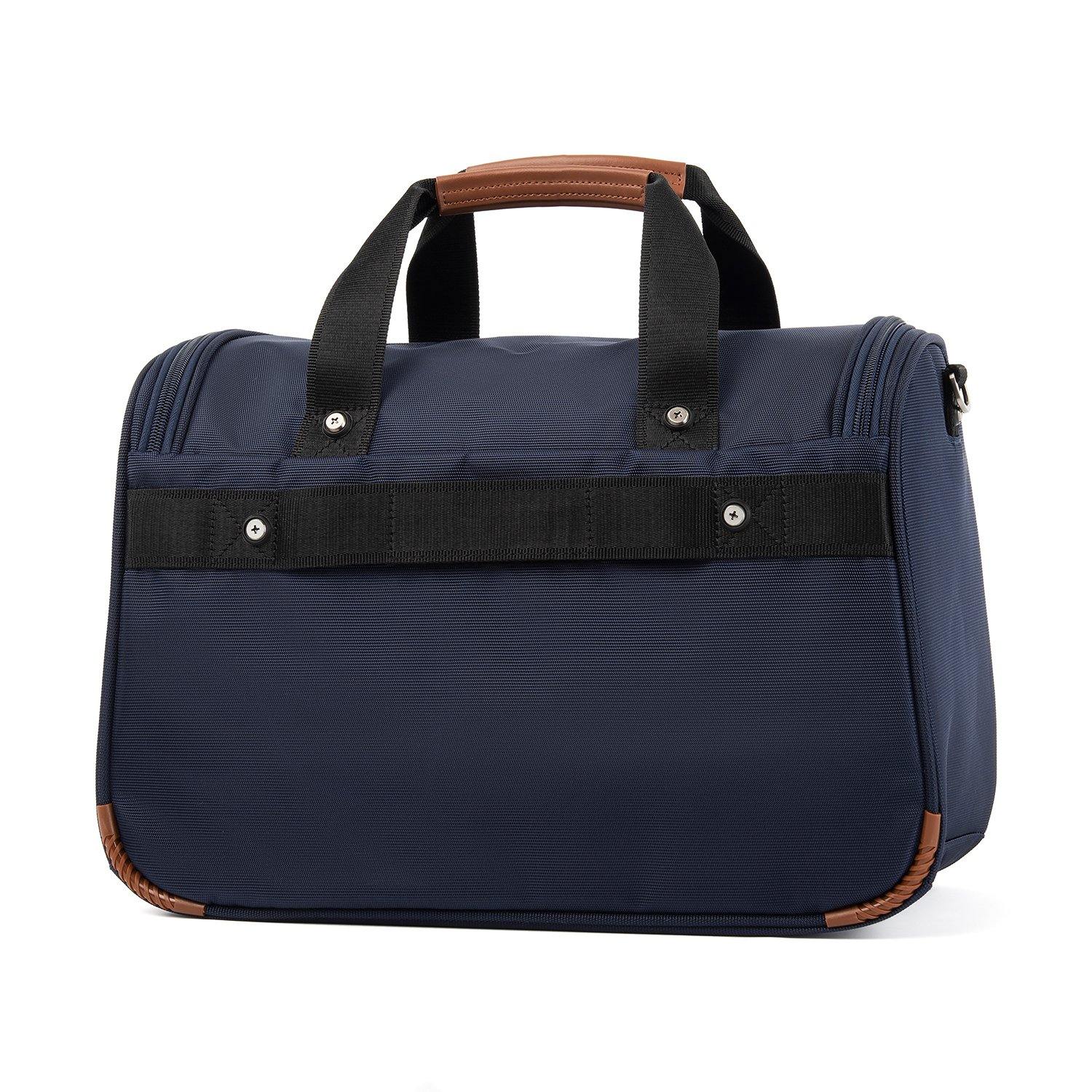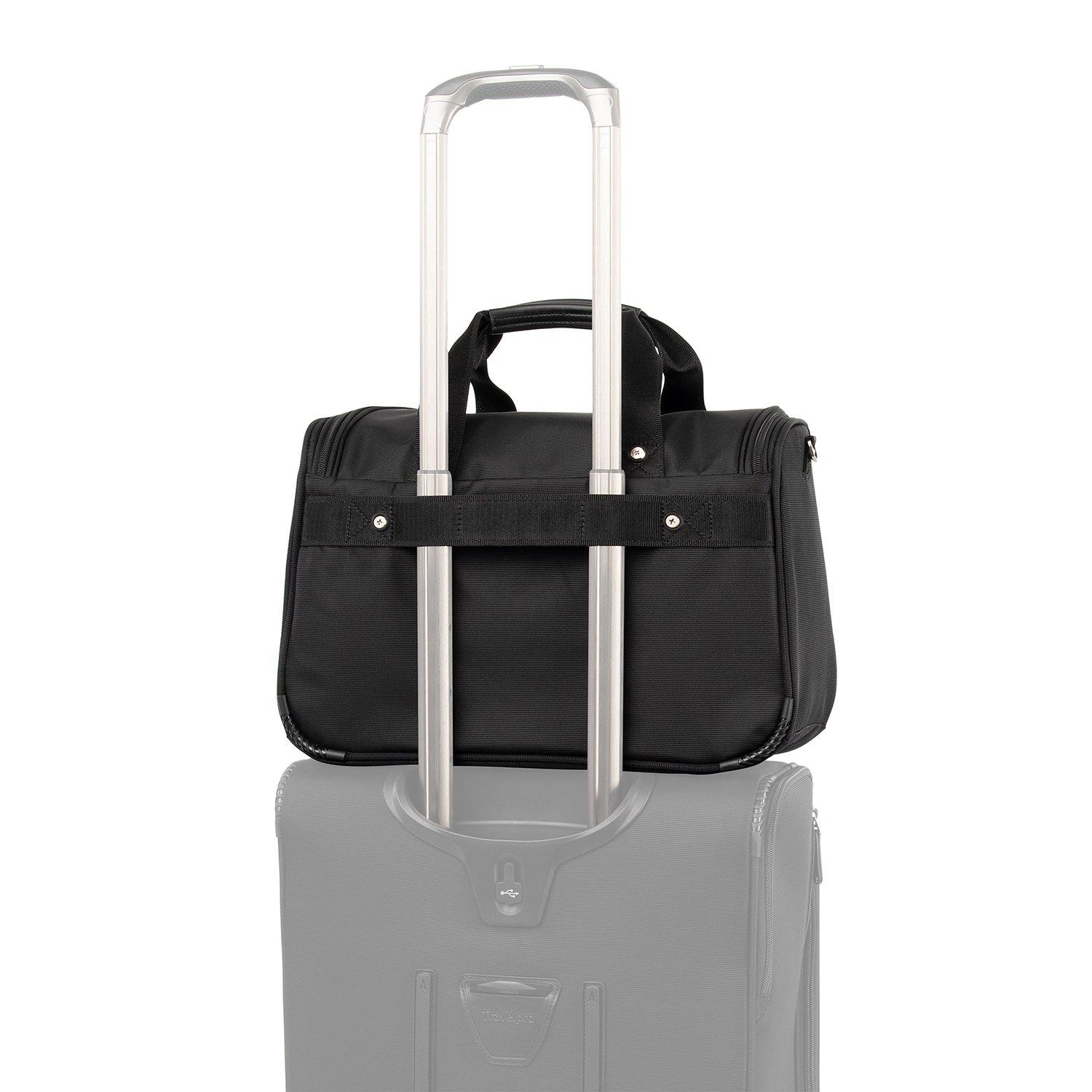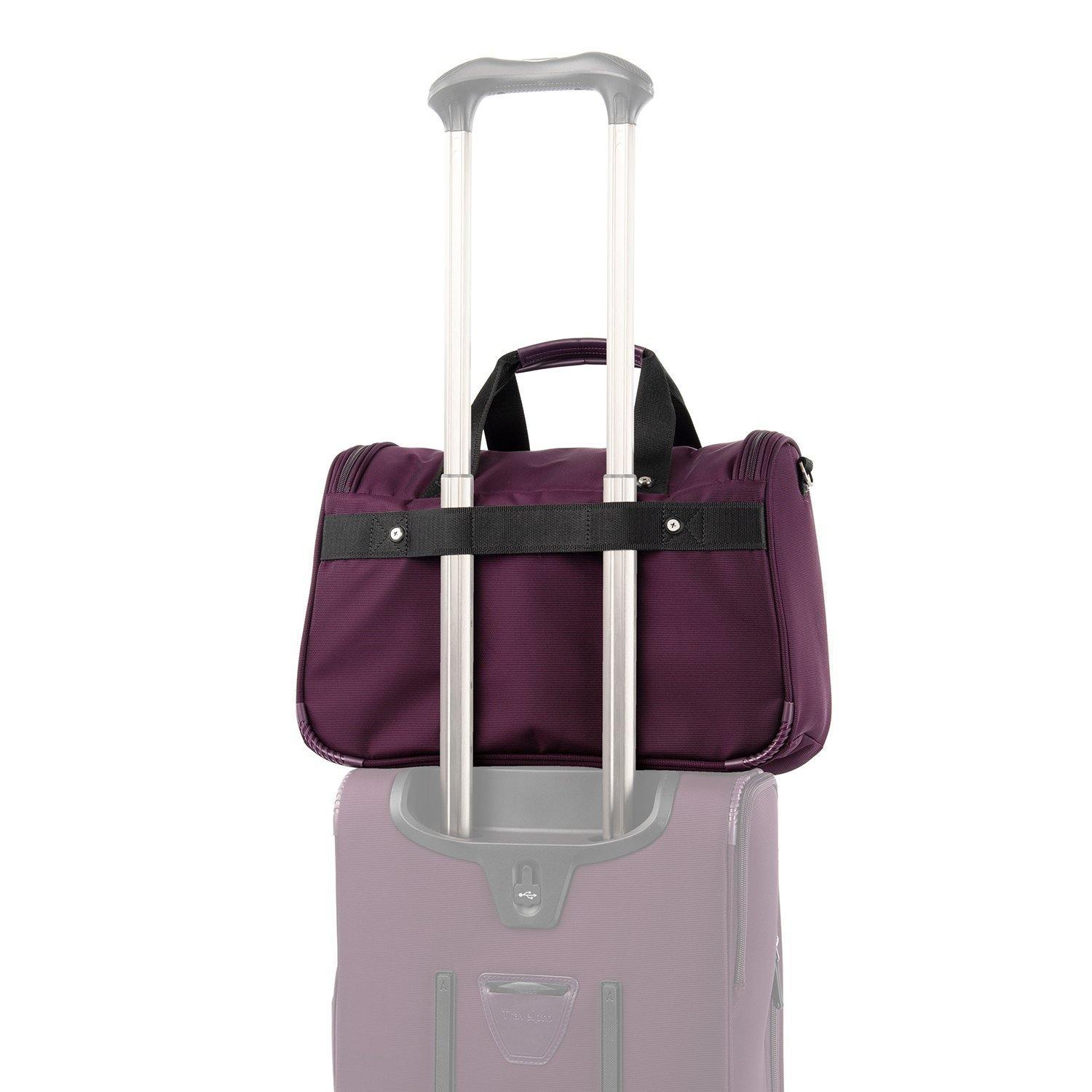 • Rear strap fits around the extension handle of a Rollaboard or spinner suitcase for secure stacking and hands-free mobility