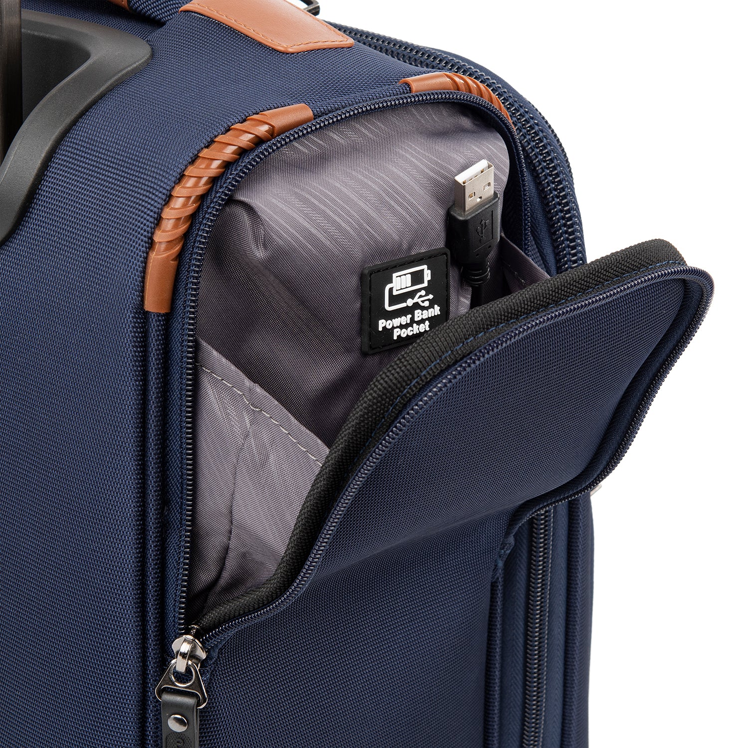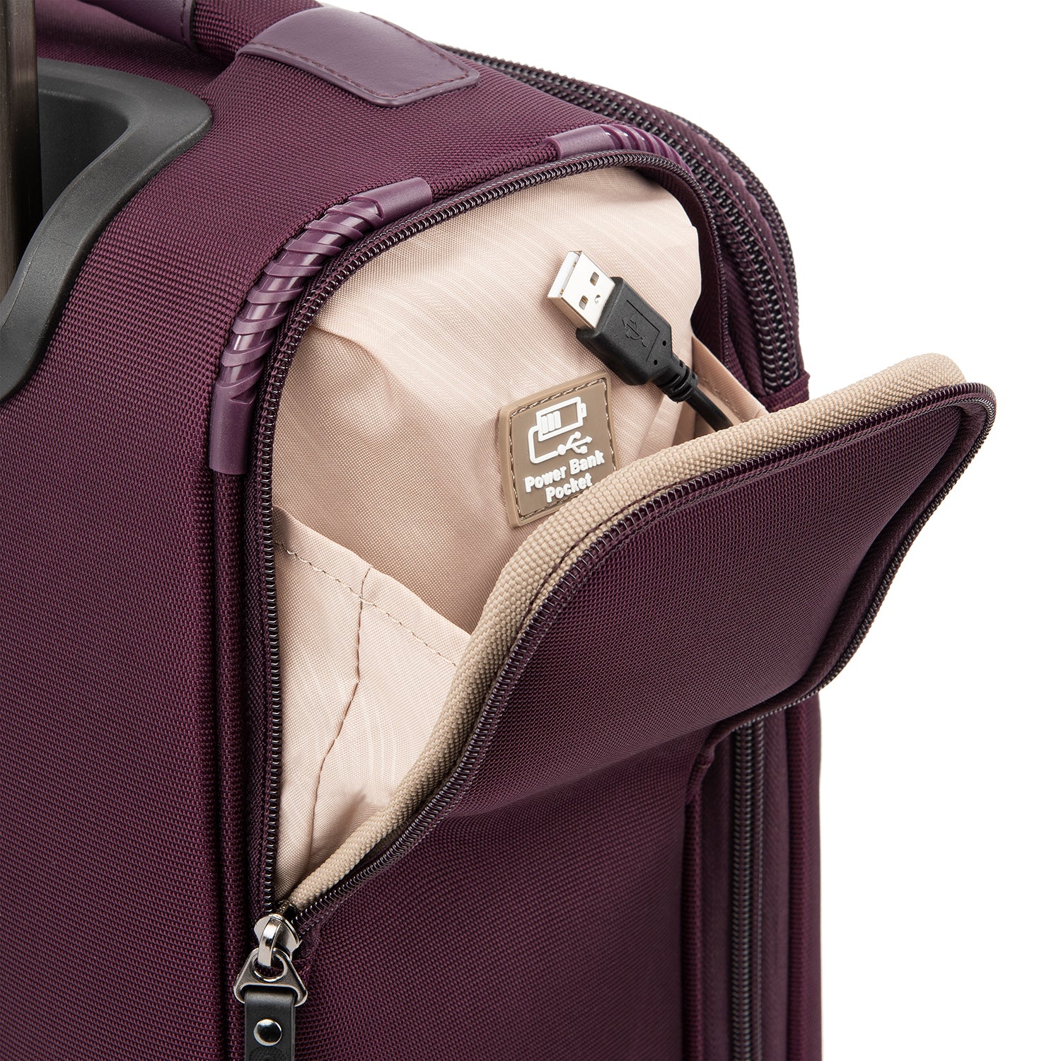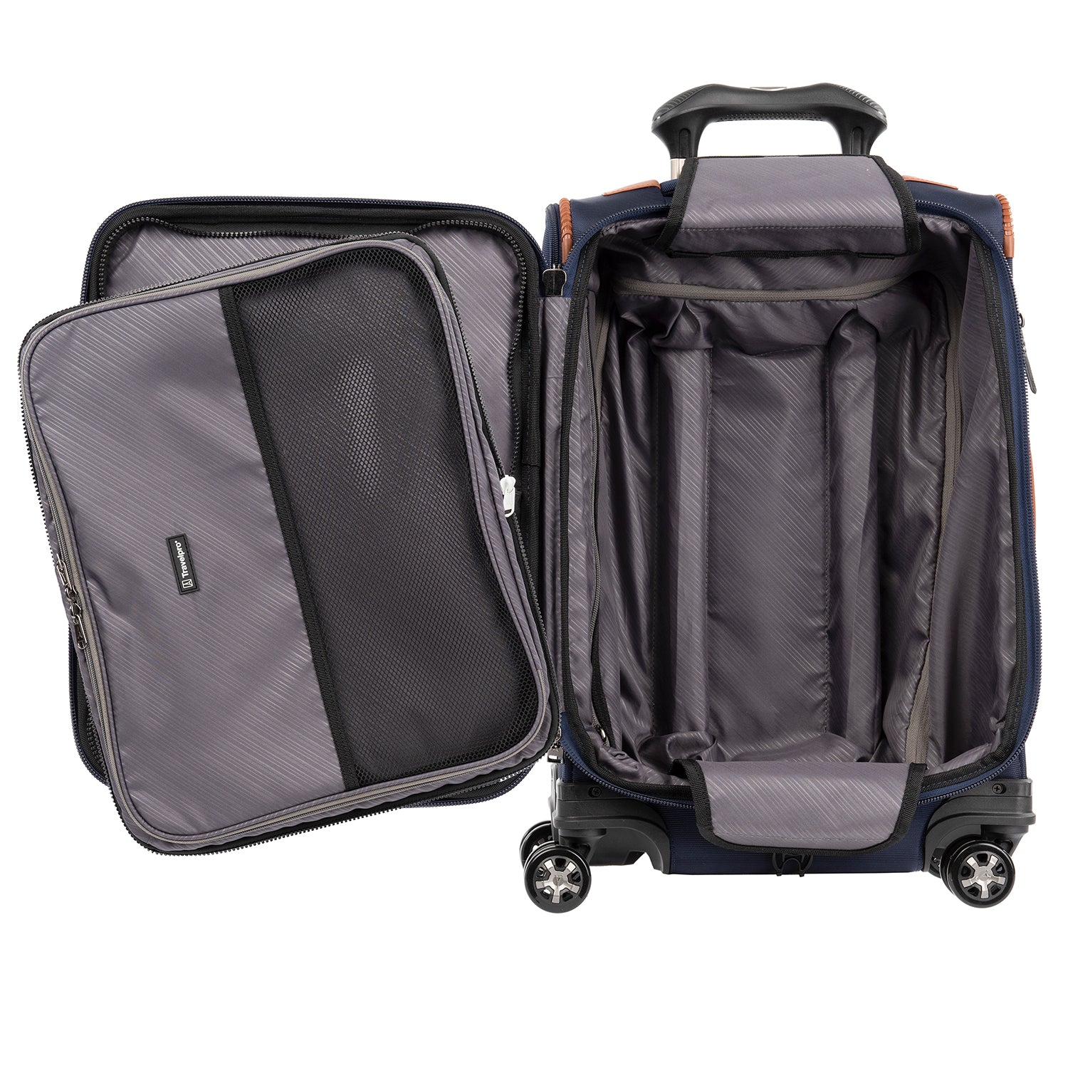 Go anywhere with a spinner that is all your own. The Crew VersaPack Global Carry-on Expandable Spinner is designed for total packing versatility and customizable with a variety of interchangeable Travelpro exclusive Zip-In Organizers. Included inside the lid is a removable Zip-In Garment Organizer, ideal for storing folded shirts, dresses and jackets. Also available for purchase separately are three additional coordinating Travelpro exclusive Zip-In Organizersa Laundry Organizer for bathing suits, workout clothes and other damp items, a Packing Cubes Organizer for shorts, t-shirts and accessories and an All-In-One Organizer for wet and dry storage. Carry-on compliant with 80% of the worlds largest airlines*domestic and international, this spinner also features a tip-resistant zippered expansion option that increases packing space up to two inches. Enjoy total convenience with a built-in USB port and dedicated exterior power bank pocket, exterior padded laptop pocket and removable TSA-compliant toiletries bag that stores perfectly in a same-sized exterior pocket. Plus, this spinners PrecisionGlide System ensures precise control and effortless roll on eight ultra-durable, 360 MagnaTrac Spinner Wheels led by a four-stop, height-adjustable PowerScope Handle with comfortable Contour Grip. Built for professional-grade dependability with robust corner armor, skid guards and heavy-duty wheel housings, Crew VersaPack is the civilian version of the luggage flight crews use, tested to meet the same superior quality and durability standards. This spinner is further backed by the comprehensive.