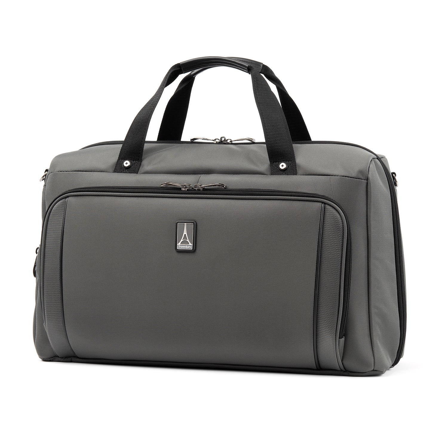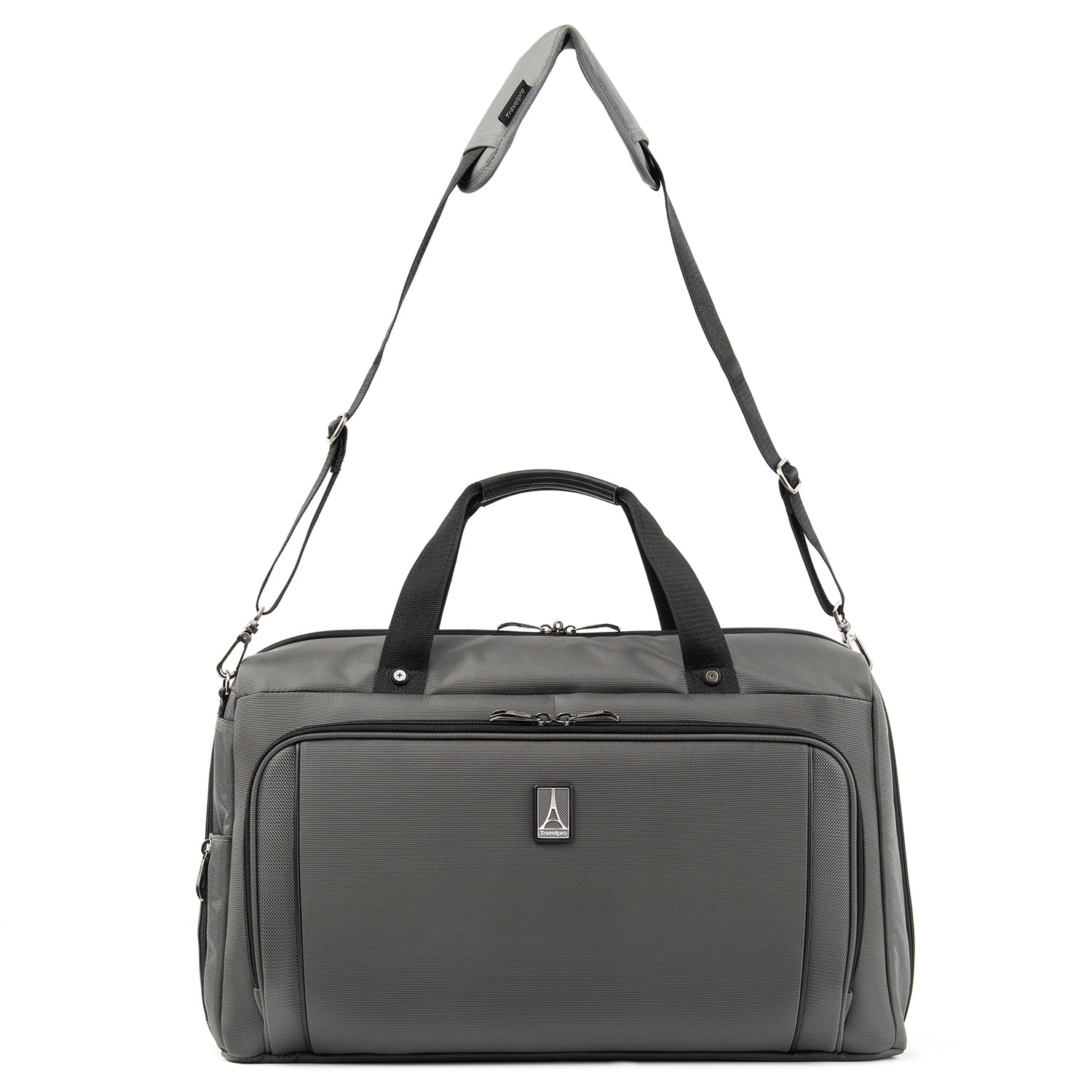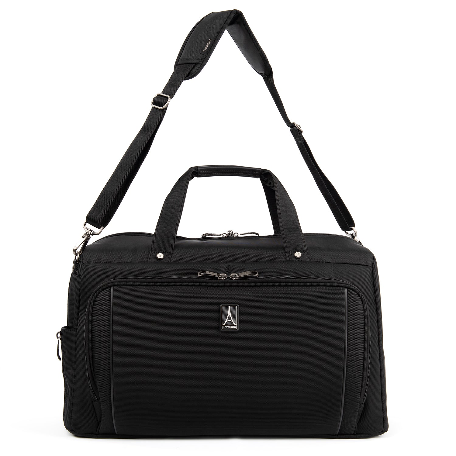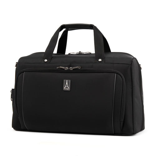 We call it a duffel. You will call it your favorite weekender. The durable Crew VersaPack Weekender Carry-on Duffel Bag with Suiter is an unassuming workhorse with its clean lines, ample interior space, split-case construction and removable fold-out suiter that carries casual wear to a tuxedo without a wrinkle. Hit the road or the jetway with the perfect all-in-one bag for a short trip, or use this bag as a companion to other luggage. A Travelpro QuickSlip front pocket with magnetic closure is ideal for storing a cell phone or other essentials on the move. The padded tablet sleeve accommodates standard-size tablets, and an exterior side pocket is fitting for a water bottle or umbrella. Plus, the quick-access zippered front pocket includes a key fob and organizational compartments to keep all essentials neatly stored wherever you roam. Carrying options include dual handles, a removable adjustable shoulder strap and a rear stacking strap that fits around the extension handle of a Rollaboard or spinner suitcase for secure stacking and hands-free mobility. Built and tested to meet the same superior quality and durability standards, Crew VersaPack is the civilian version of the luggage flight crews use, made from stain-and abrasion-resistant high-density ballistic nylon fabric with SUPRA Zipper heads, engineered to resist damage from daily use and abuse. Plus, this bag is further backed by a Built For a Lifetime Limited Warranty with our Trusted Companion Promise.