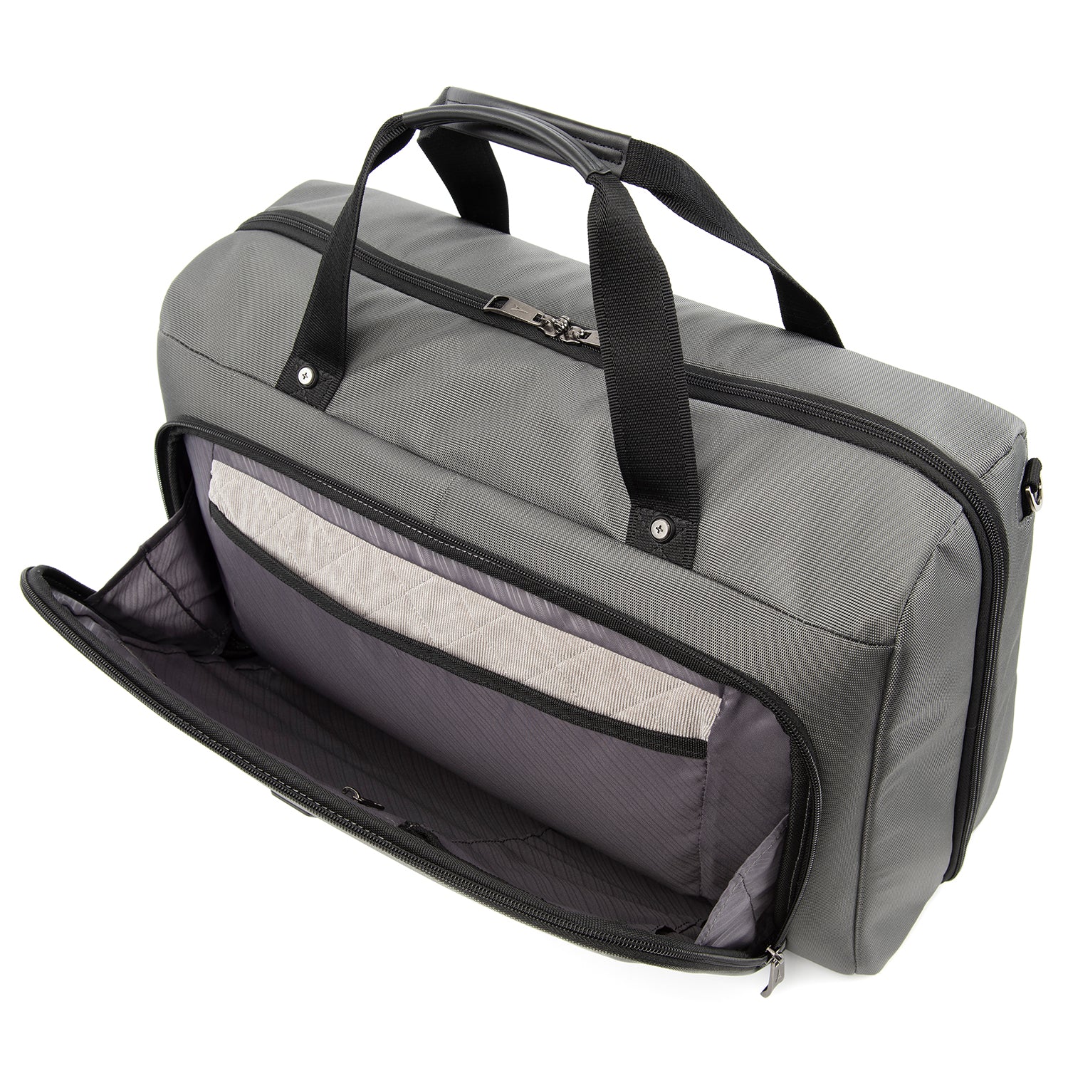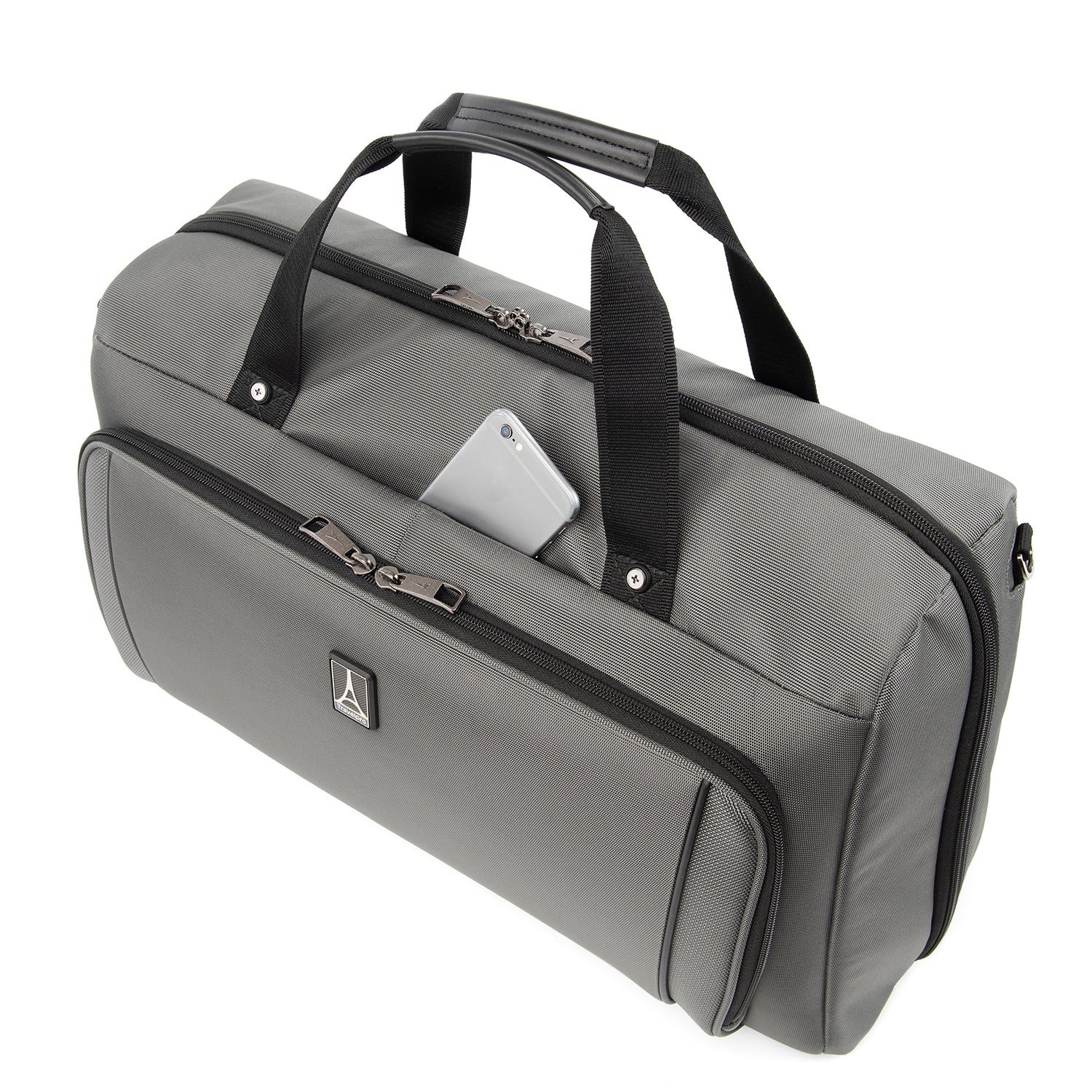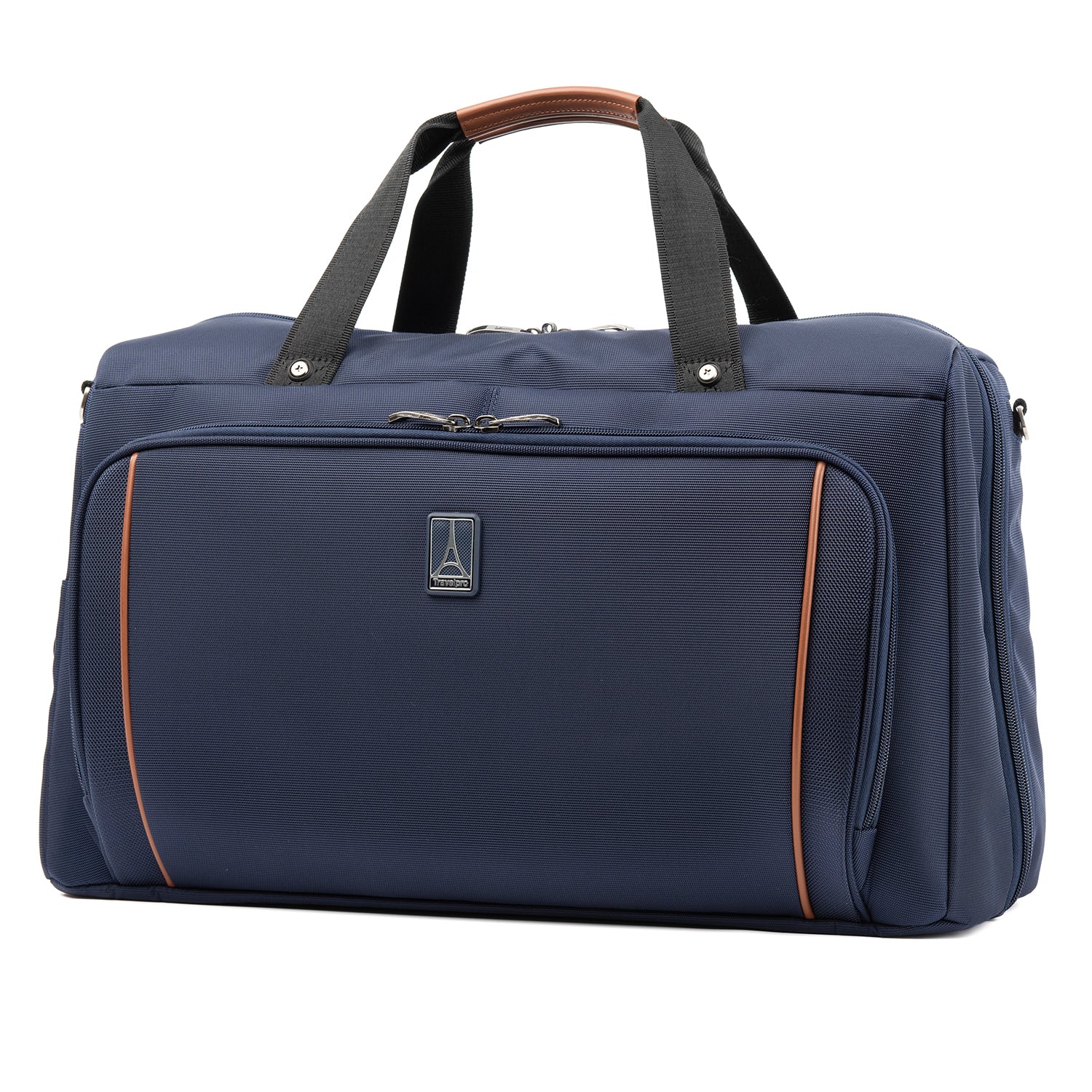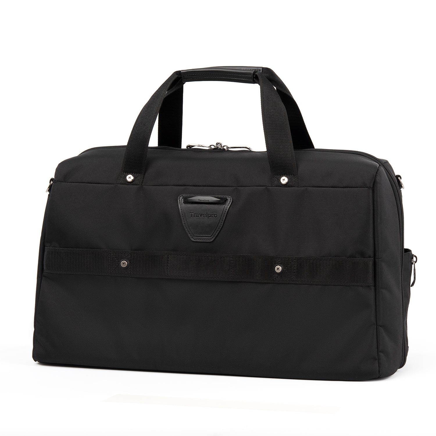 We call it a duffel. You will call it your favorite weekender. The durable Crew VersaPack Weekender Carry-on Duffel Bag with Suiter is an unassuming workhorse with its clean lines, ample interior space, split-case construction and removable fold-out suiter that carries casual wear to a tuxedo without a wrinkle. Hit the road or the jetway with the perfect all-in-one bag for a short trip, or use this bag as a companion to other luggage. A Travelpro QuickSlip front pocket with magnetic closure is ideal for storing a cell phone or other essentials on the move. The padded tablet sleeve accommodates standard-size tablets, and an exterior side pocket is fitting for a water bottle or umbrella. Plus, the quick-access zippered front pocket includes a key fob and organizational compartments to keep all essentials neatly stored wherever you roam. Carrying options include dual handles, a removable adjustable shoulder strap and a rear stacking strap that fits around the extension handle of a Rollaboard or spinner suitcase for secure stacking and hands-free mobility. Built and tested to meet the same superior quality and durability standards, Crew VersaPack is the civilian version of the luggage flight crews use, made from stain-and abrasion-resistant high-density ballistic nylon fabric with SUPRA Zipper heads, engineered to resist damage from daily use and abuse. Plus, this bag is further backed by a Built For a Lifetime Limited Warranty with our Trusted Companion Promise.