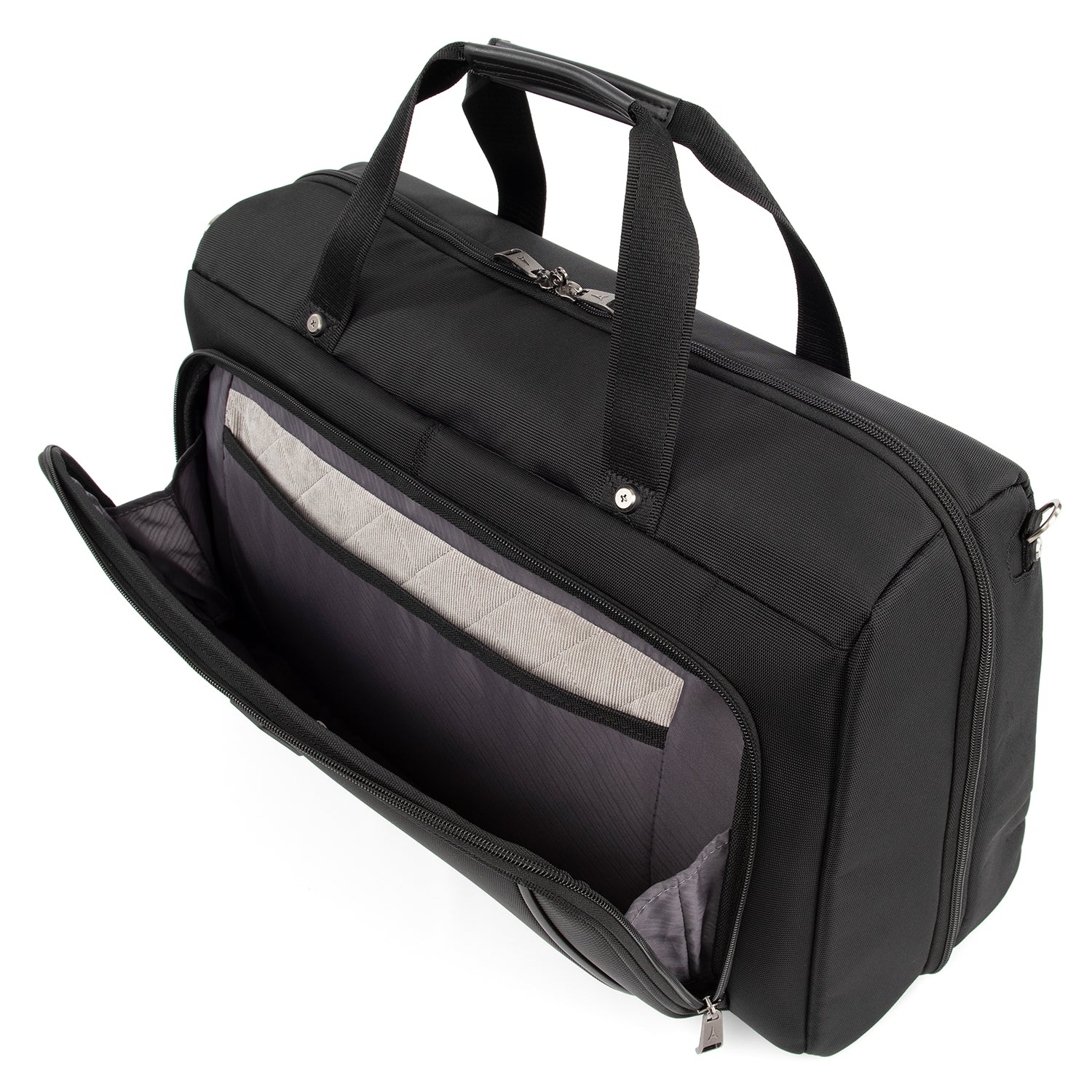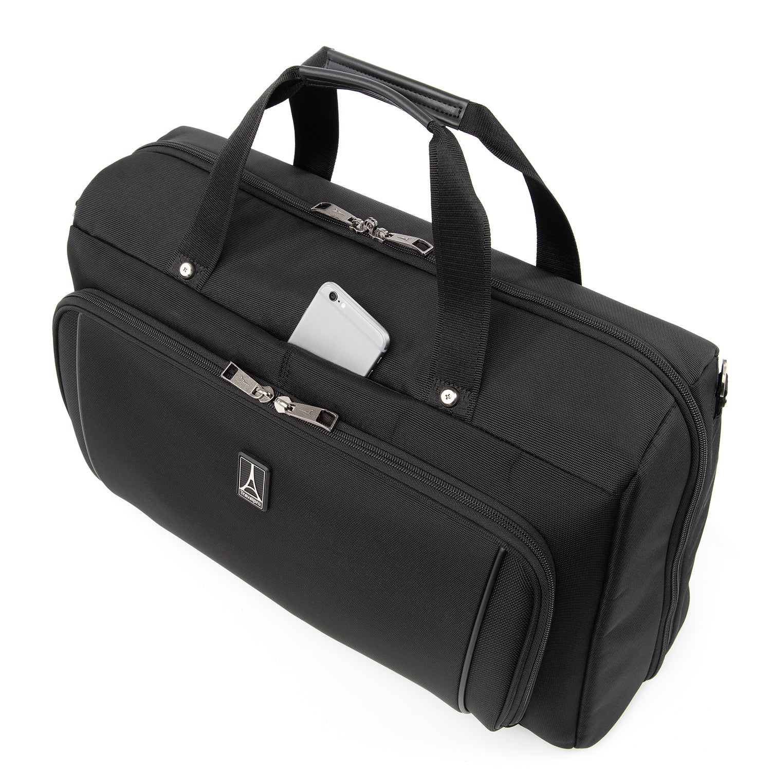 • Padded tablet sleeve accommodates standard-size tablets. High-density ballistic nylon fabric with DuraGuard coating resists stains and abrasions. Travelpro QuickSlip front pocket with magnetic closure is ideal for storing a cell phone or other essentials when going through airport security.