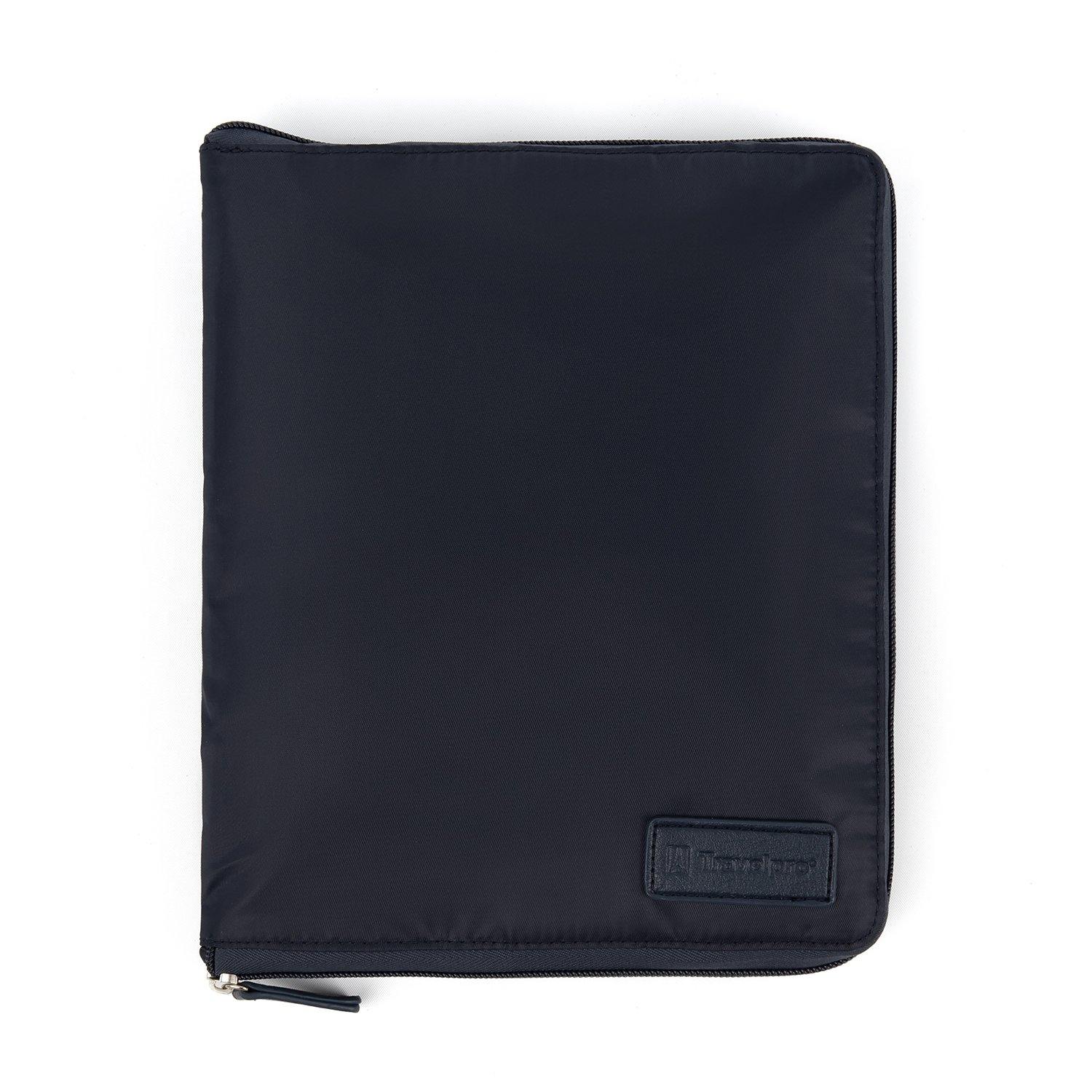 • Features include an interior zip pocket for secure storage of small items, a Travelpro QuickSlip front pocket with magnetic closureideal for storing a cell phone or other essentials on the go and a rear stacking strap that fits around the extension handle of a Rollaboard or spinner suitcase for hands-free carrying.