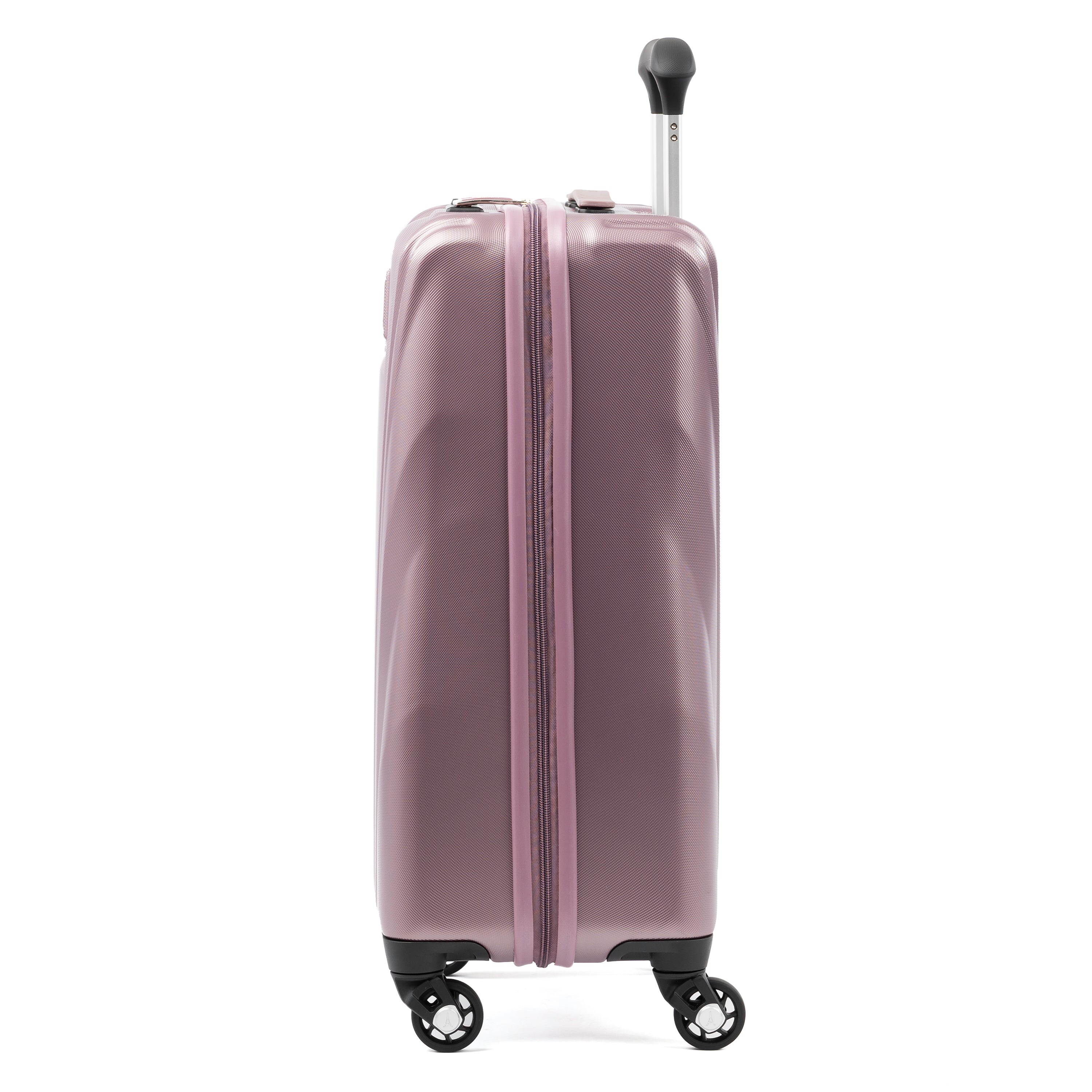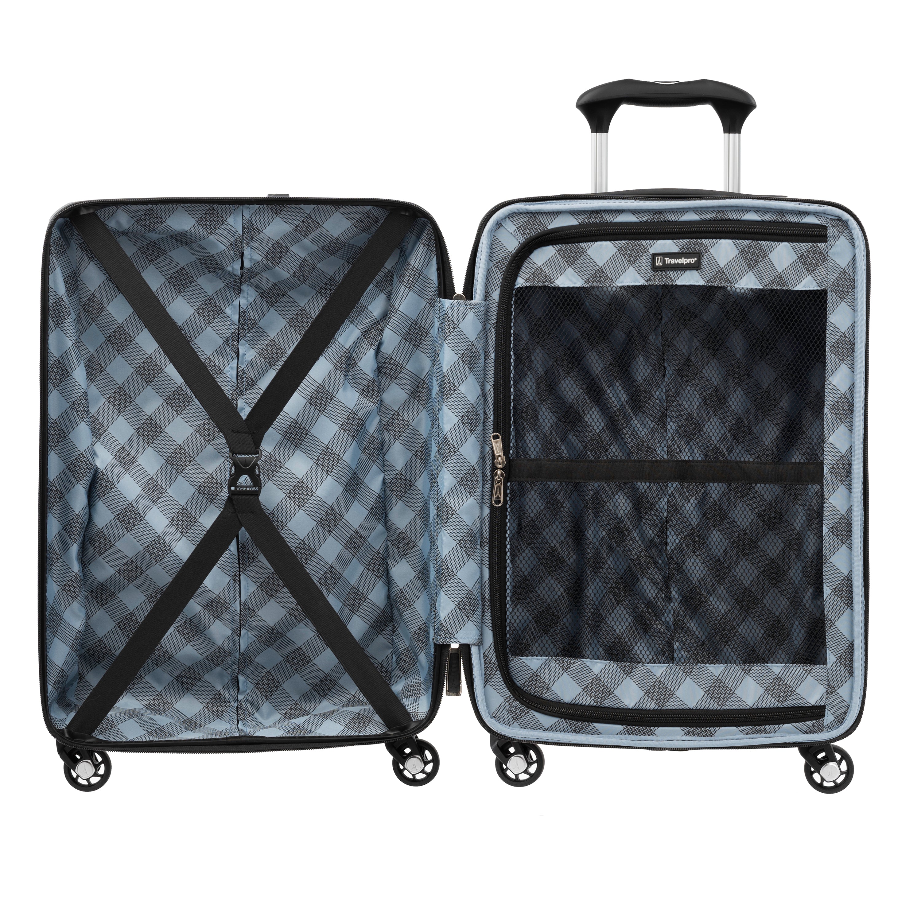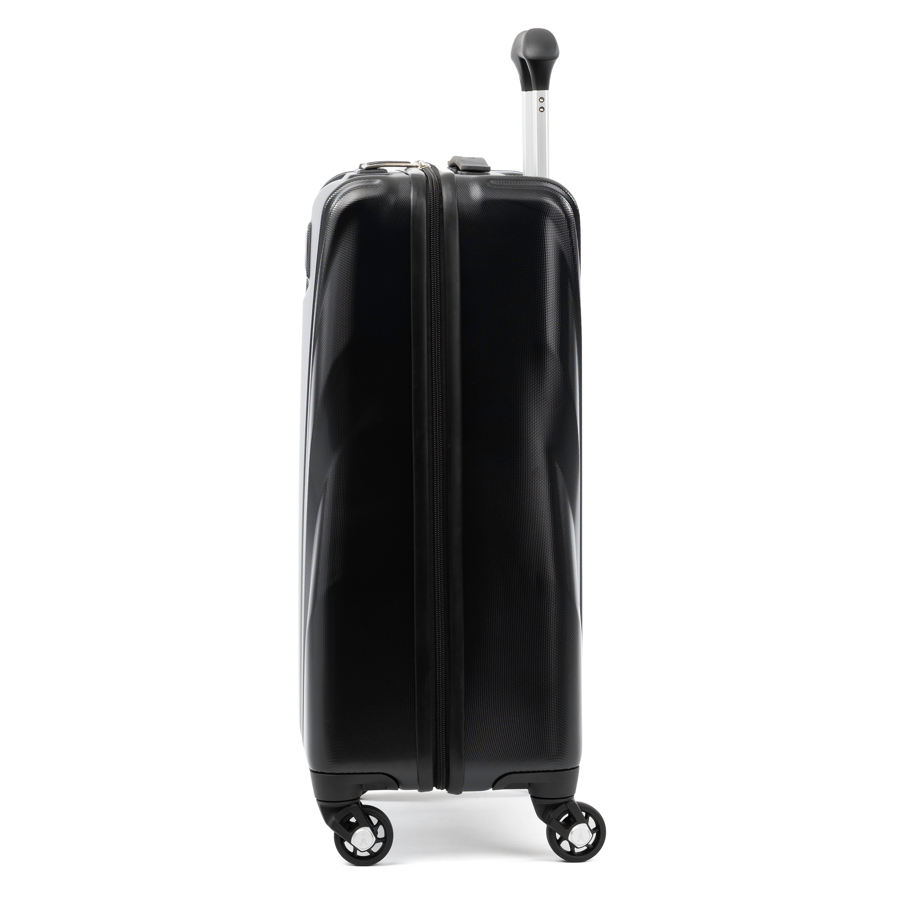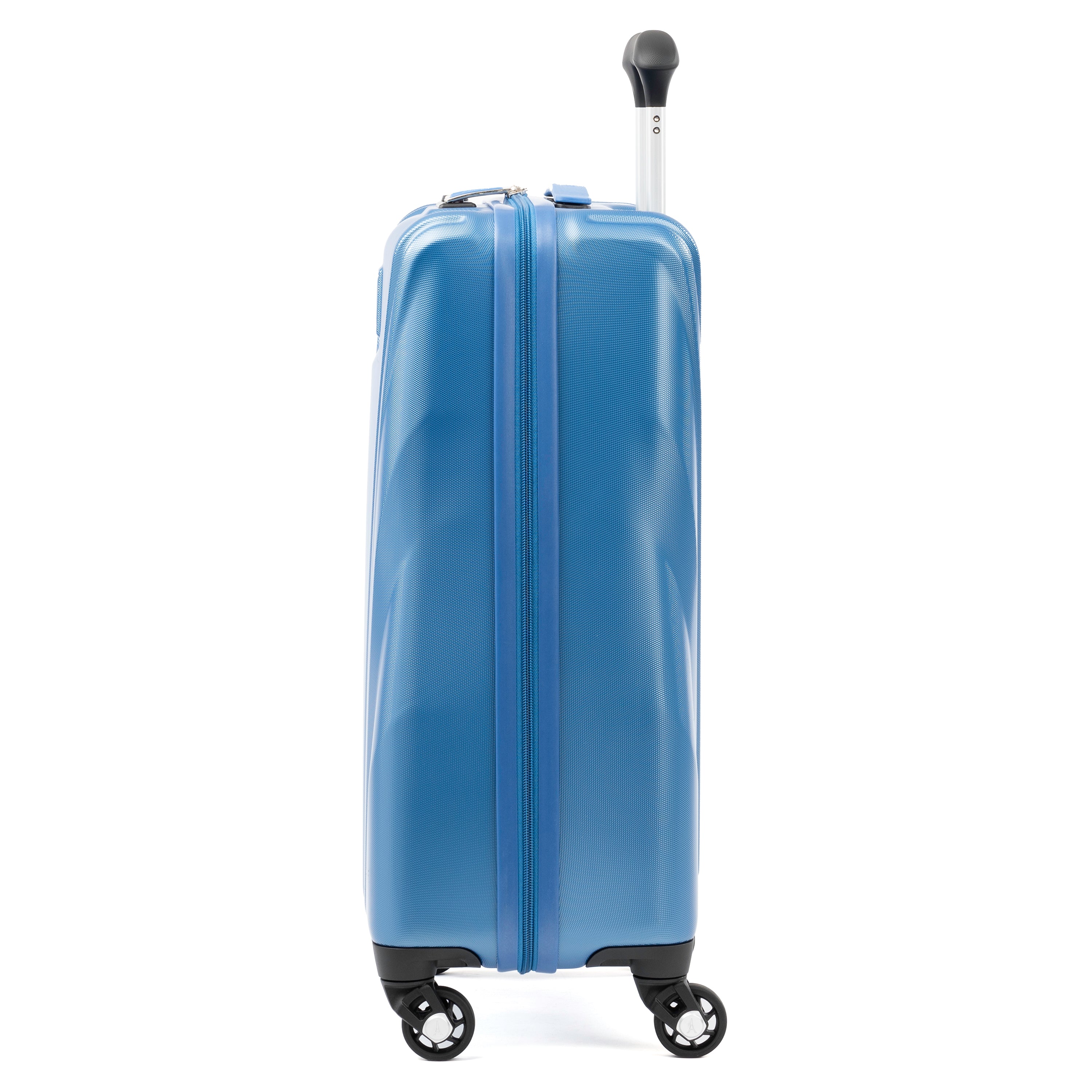 Sleek and compact, the Maxlite 5 International Carry-On Hardside Spinner is your go-to carry on for long- or short-haul flights, designed to meet carry-on size restrictions for many international airlines. The ultra-lightweight polycarbonate shell provides ultimate durability, absorbing impact with flex to protect contents and resist cracking. Plus, the shells textured surface helps reduce visible scratching or scuff marks, while molded corner guards serve as built-in bumpers on high-wear points. An integrated TSA-compliant lock keeps contents secure while allowing authorities to unlock and relock the suitcase without damage when needed for inspection. Carry all your onboard essentials or pack for a shorter trip, the split case construction and interior divider panel provide separate packing compartments, and elastic hold-down straps keep everything in its place. Roll with ease on four 360 spinner wheels guided by the lightweight, height-adjustable PowerScope Lite handle with comfortable Contour Grip. Backed by Travelpro Built For A Lifetime Limited Warranty with our Trusted Companion Promise.