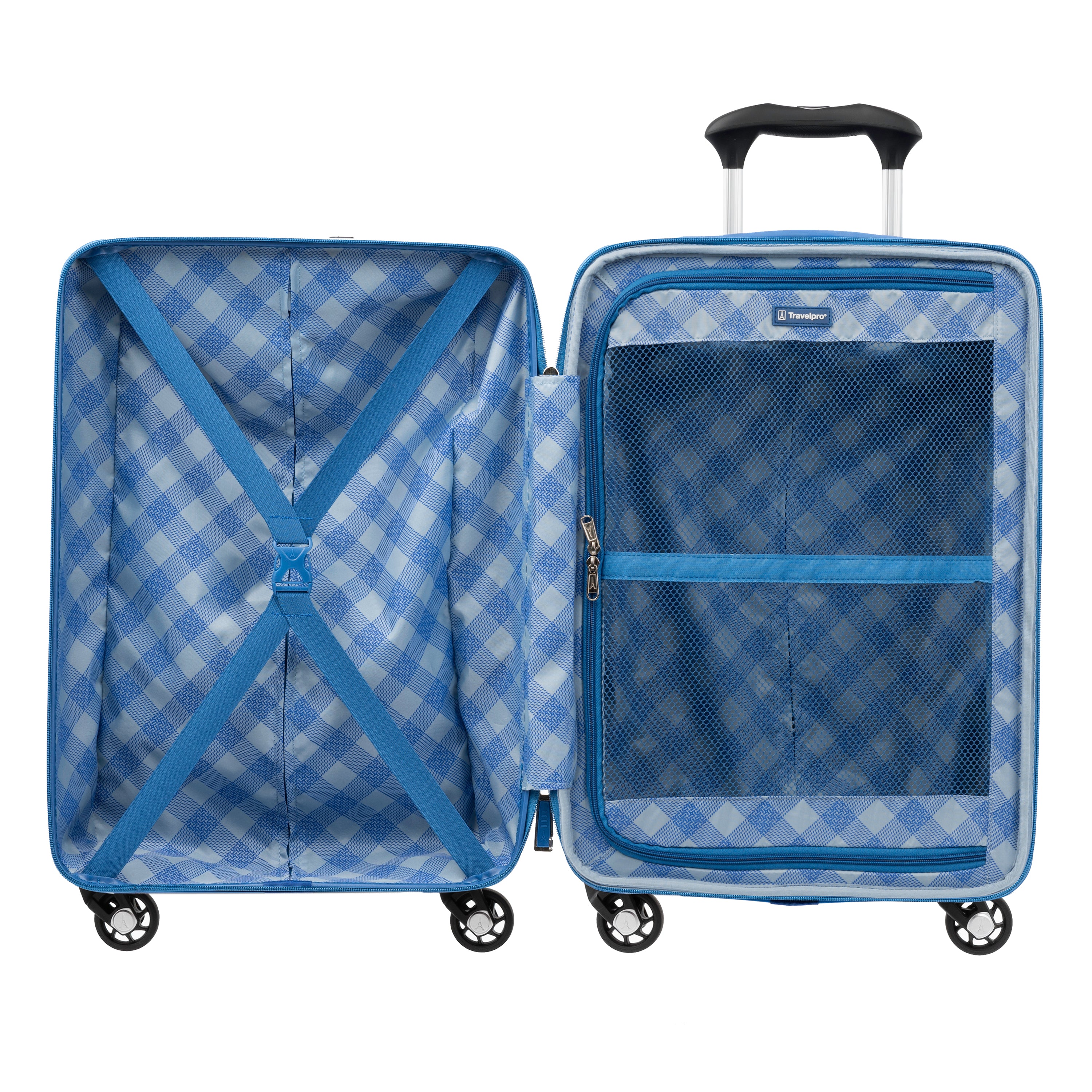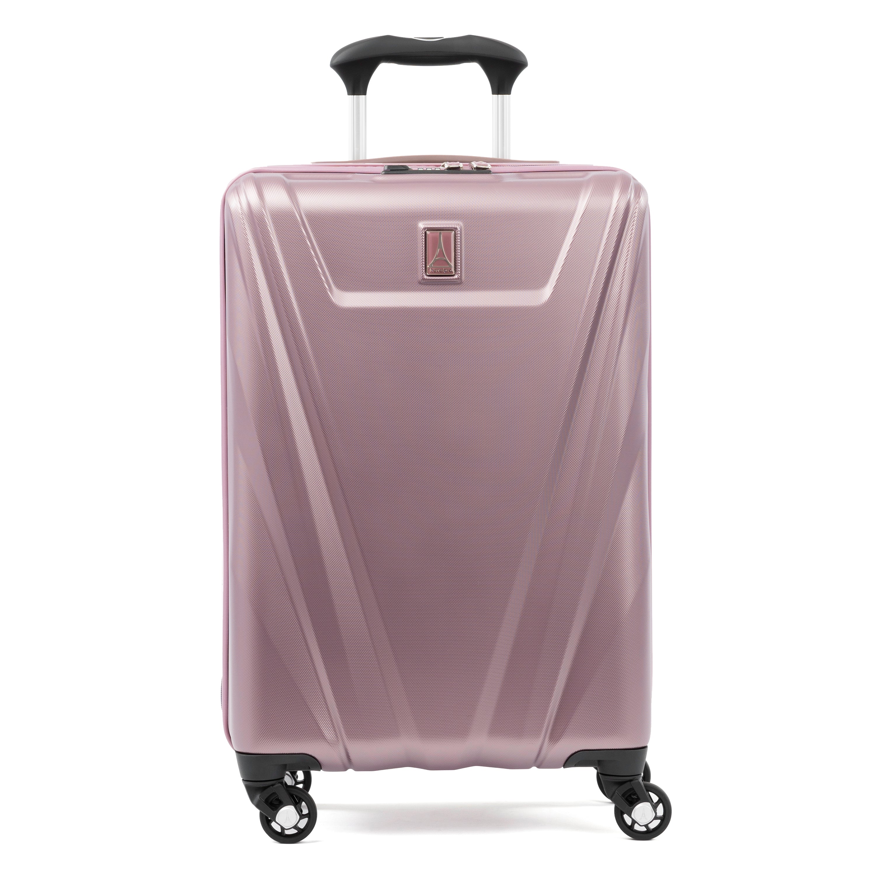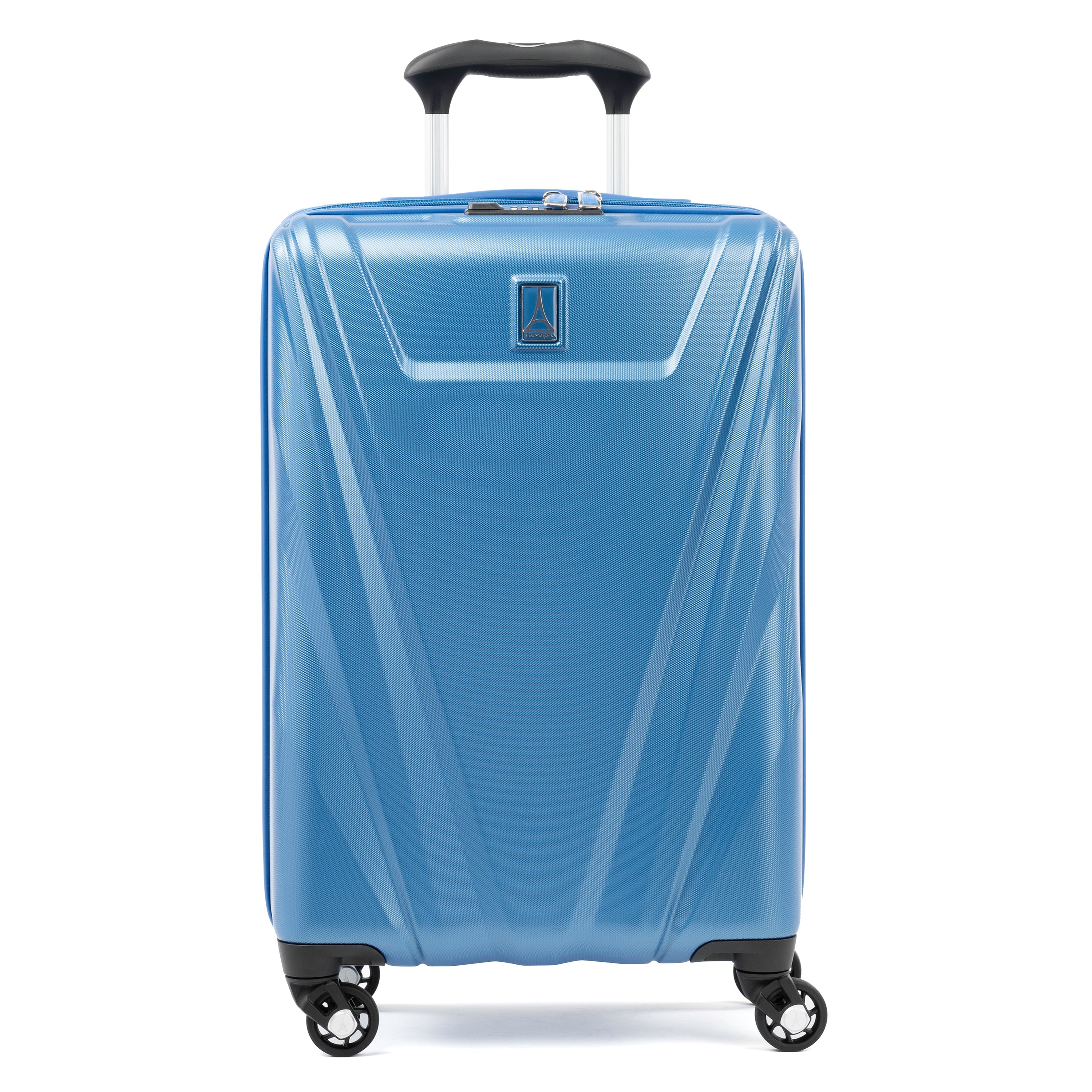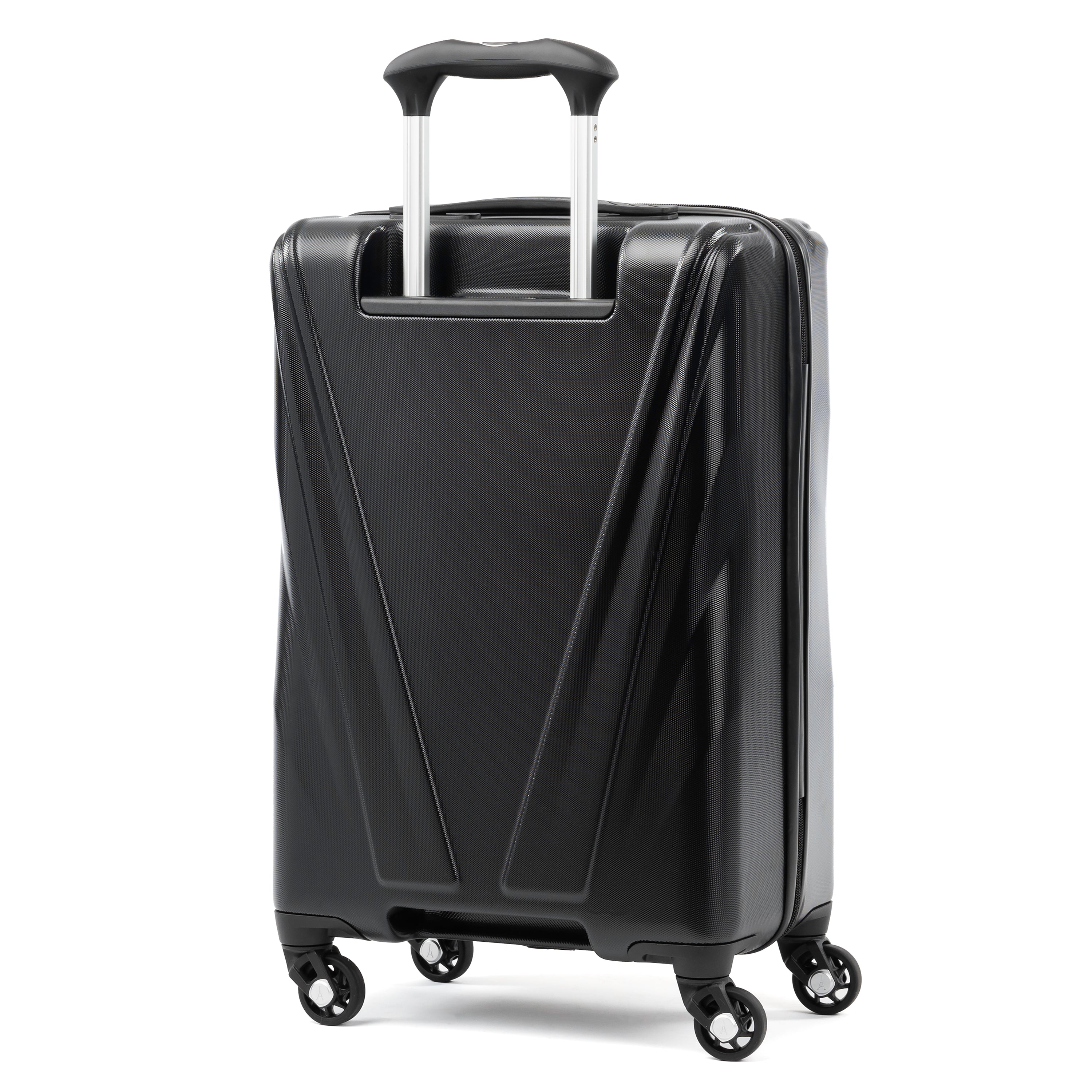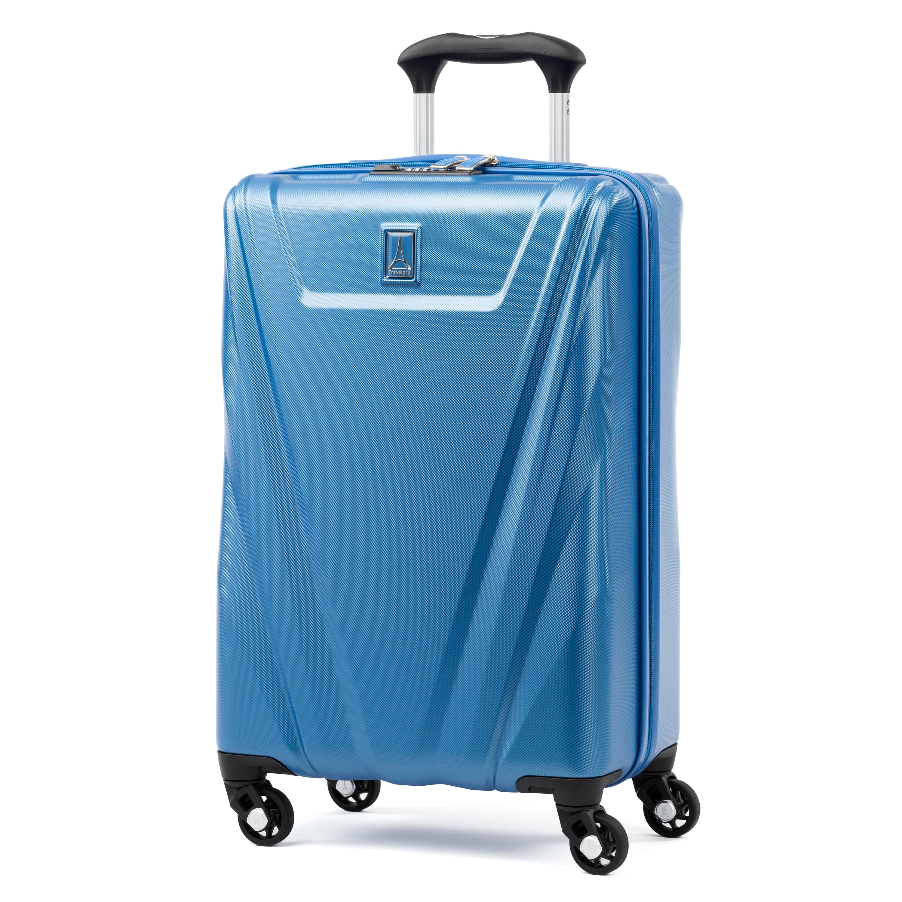 Sleek and compact, the Maxlite 5 International Carry-On Hardside Spinner is your go-to carry on for long- or short-haul flights, designed to meet carry-on size restrictions for many international airlines. The ultra-lightweight polycarbonate shell provides ultimate durability, absorbing impact with flex to protect contents and resist cracking. Plus, the shells textured surface helps reduce visible scratching or scuff marks, while molded corner guards serve as built-in bumpers on high-wear points. An integrated TSA-compliant lock keeps contents secure while allowing authorities to unlock and relock the suitcase without damage when needed for inspection. Carry all your onboard essentials or pack for a shorter trip, the split case construction and interior divider panel provide separate packing compartments, and elastic hold-down straps keep everything in its place. Roll with ease on four 360 spinner wheels guided by the lightweight, height-adjustable PowerScope Lite handle with comfortable Contour Grip. Backed by Travelpro Built For A Lifetime Limited Warranty with our Trusted Companion Promise.