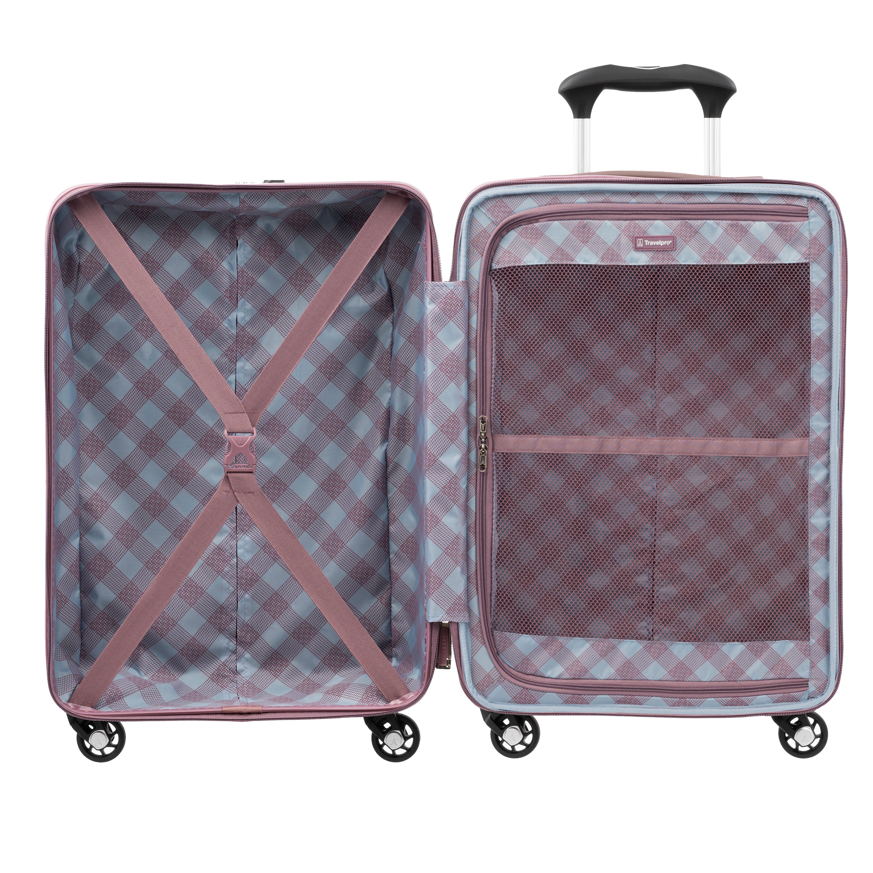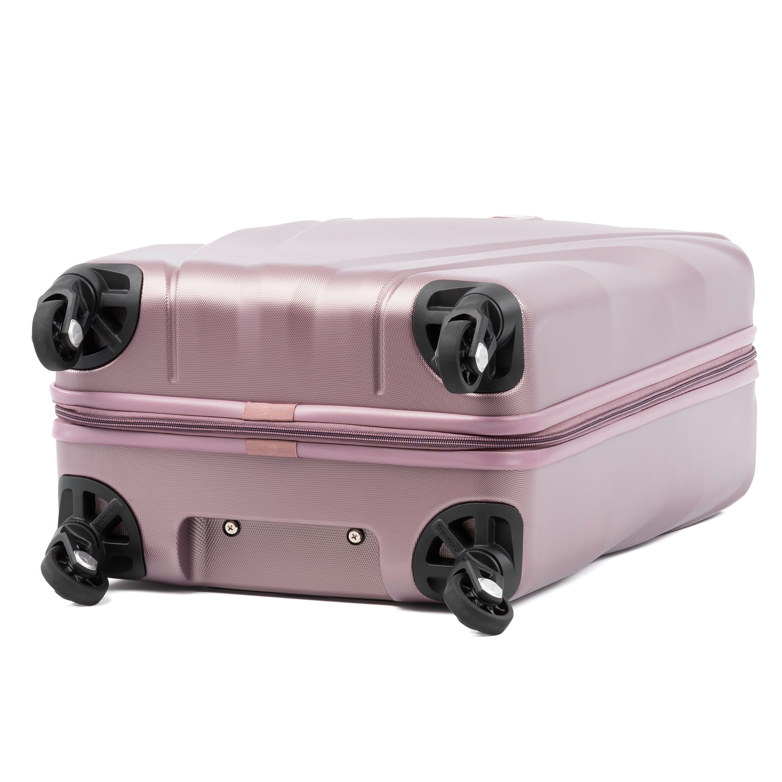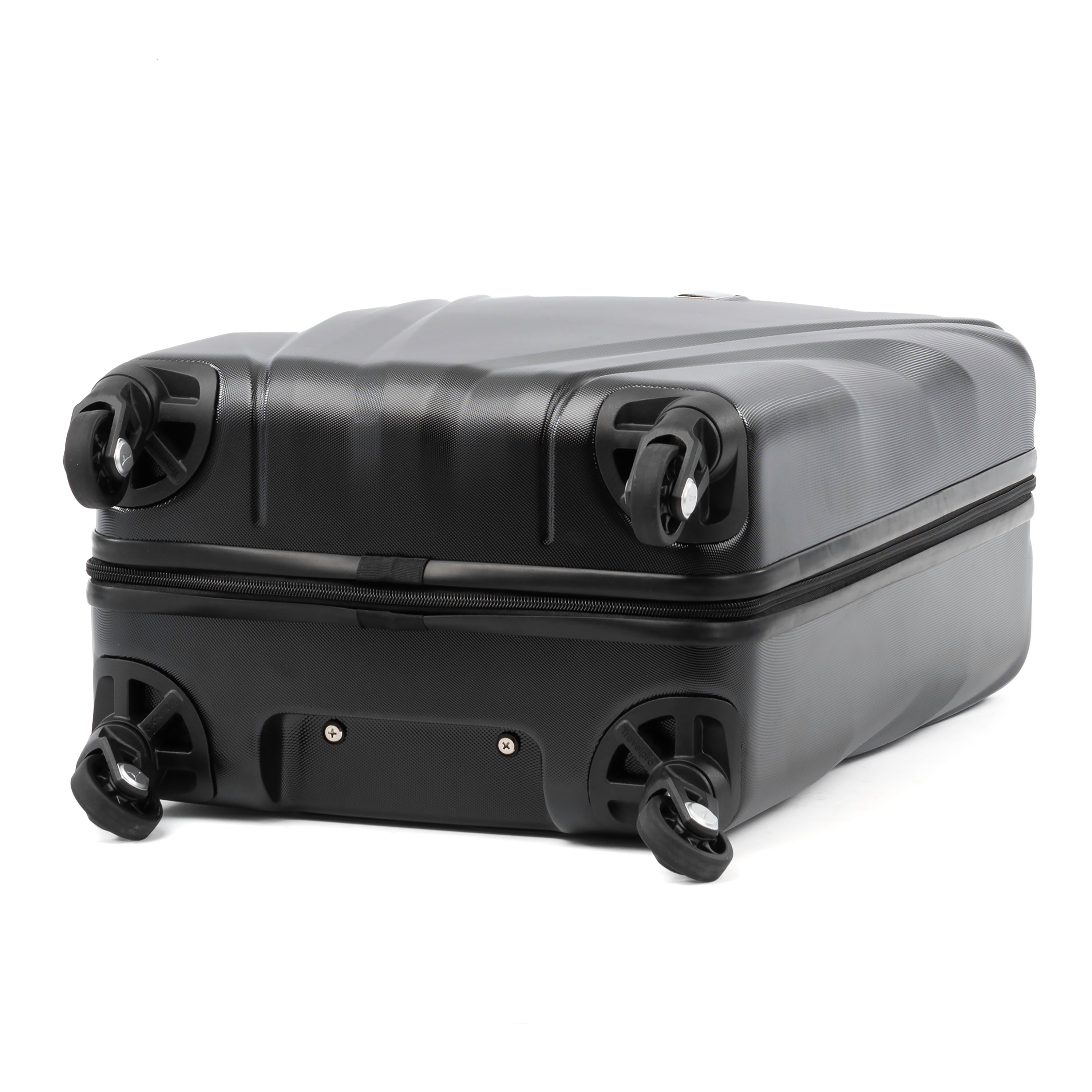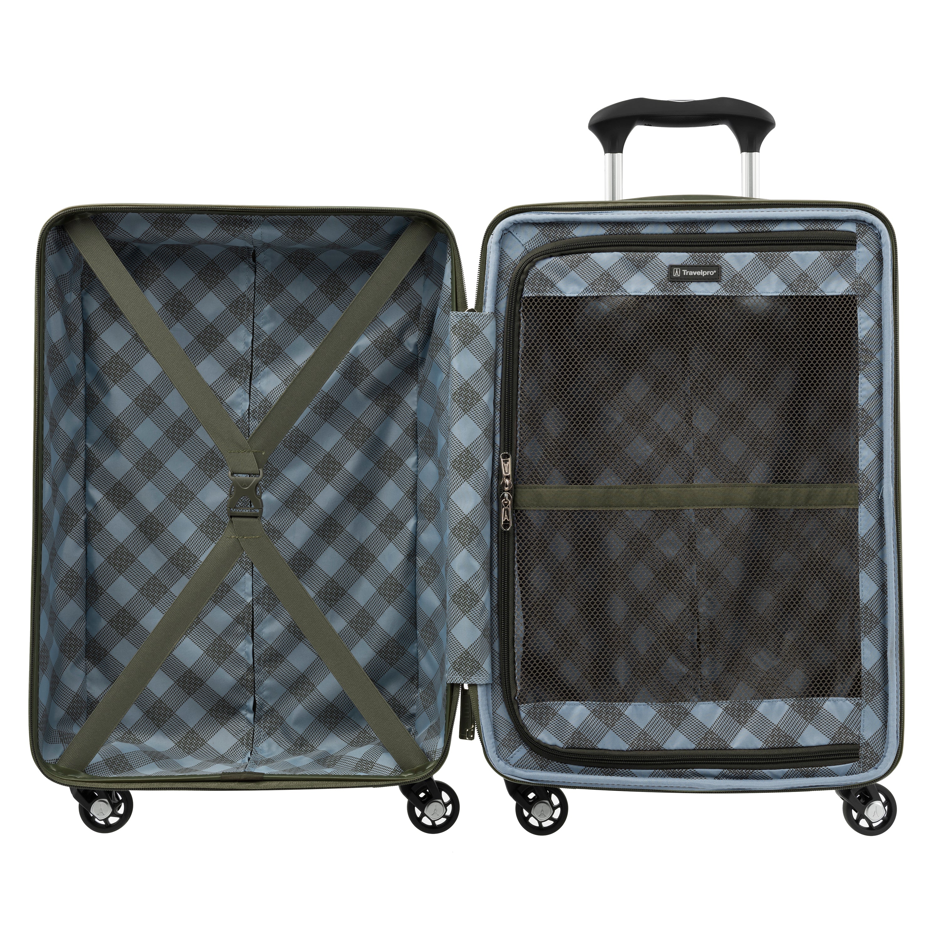 Sleek and compact, the Maxlite 5 International Carry-On Hardside Spinner is your go-to carry on for long- or short-haul flights, designed to meet carry-on size restrictions for many international airlines. The ultra-lightweight polycarbonate shell provides ultimate durability, absorbing impact with flex to protect contents and resist cracking. Plus, the shells textured surface helps reduce visible scratching or scuff marks, while molded corner guards serve as built-in bumpers on high-wear points. An integrated TSA-compliant lock keeps contents secure while allowing authorities to unlock and relock the suitcase without damage when needed for inspection. Carry all your onboard essentials or pack for a shorter trip, the split case construction and interior divider panel provide separate packing compartments, and elastic hold-down straps keep everything in its place. Roll with ease on four 360 spinner wheels guided by the lightweight, height-adjustable PowerScope Lite handle with comfortable Contour Grip. Backed by Travelpro Built For A Lifetime Limited Warranty with our Trusted Companion Promise.