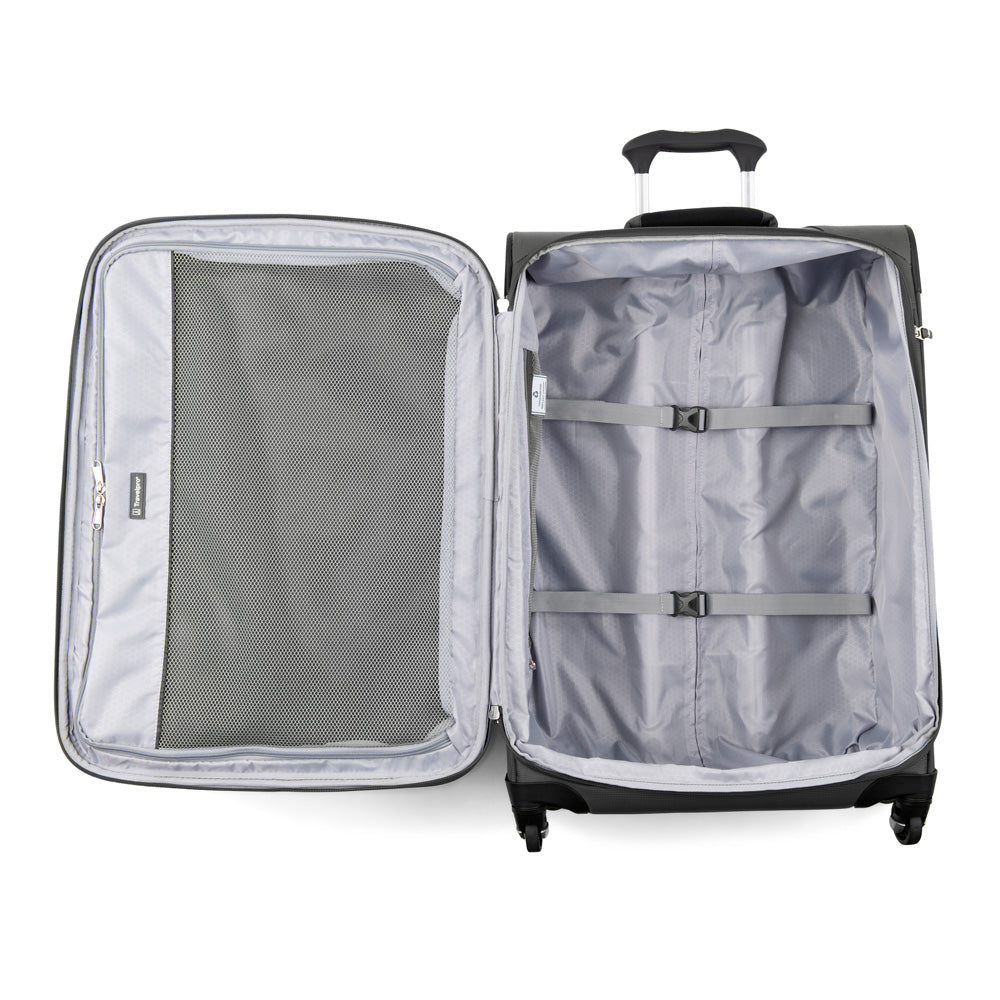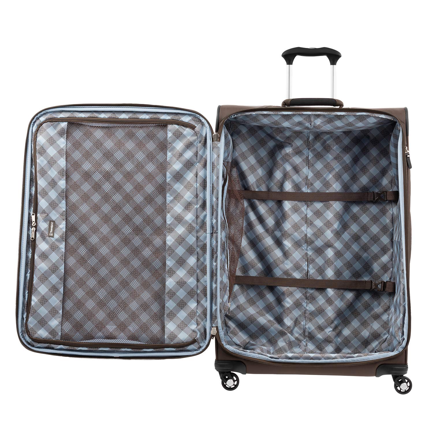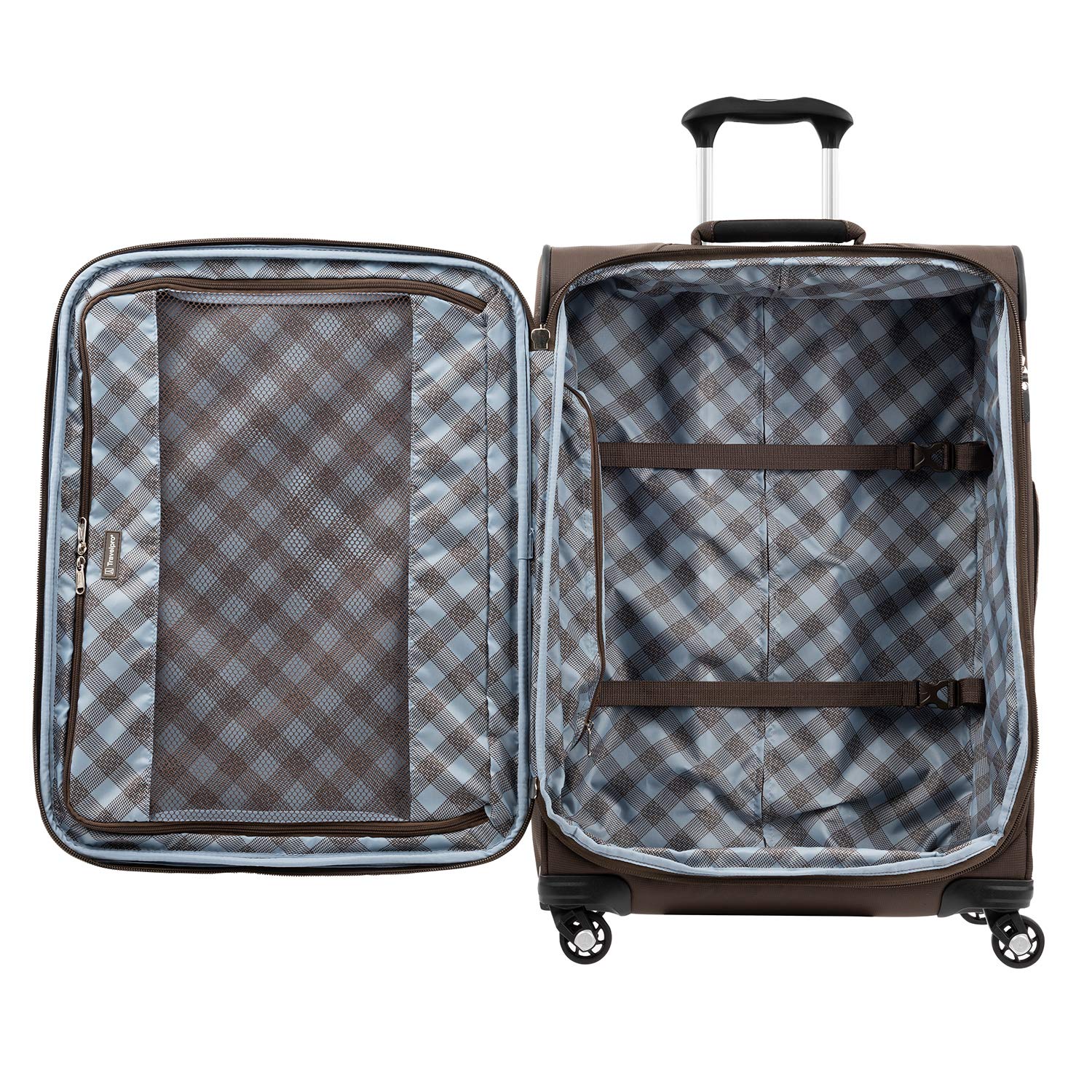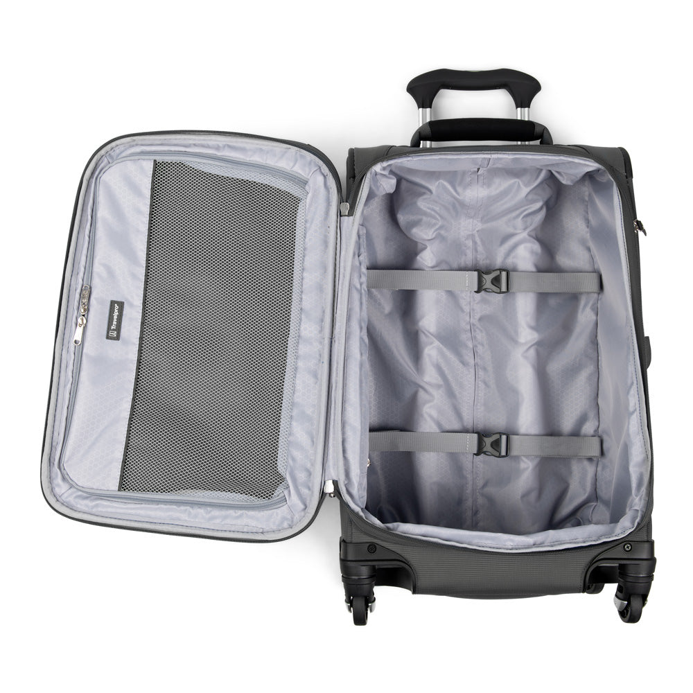 This carry-on soft-sided spinner is so light, it flies! One of our lightest wheeled carry-on suitcases, the Maxlite 5 21" Expandable Spinner is designed for ultimate comfort and mobility, featuring a 2-position adjustable PowerScope Lite handle with patented Contour Grip and 4-wheel 360 rotating spinners that glide effortlessly. Enjoy packing convenience with two quick-access, exterior front pockets, full-length interior lid pocket, side accessory pocket and adjustable hold-down straps, while the high-tensile-strength expandable zipper gives you maximum packing flexibility.