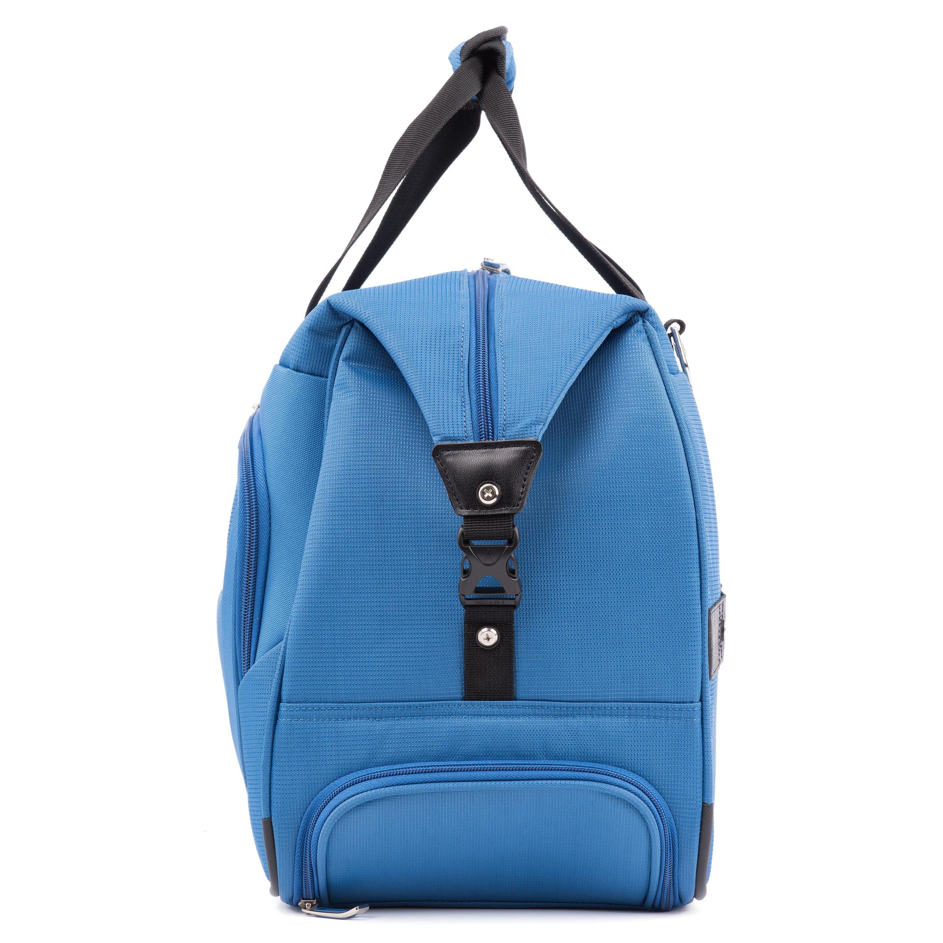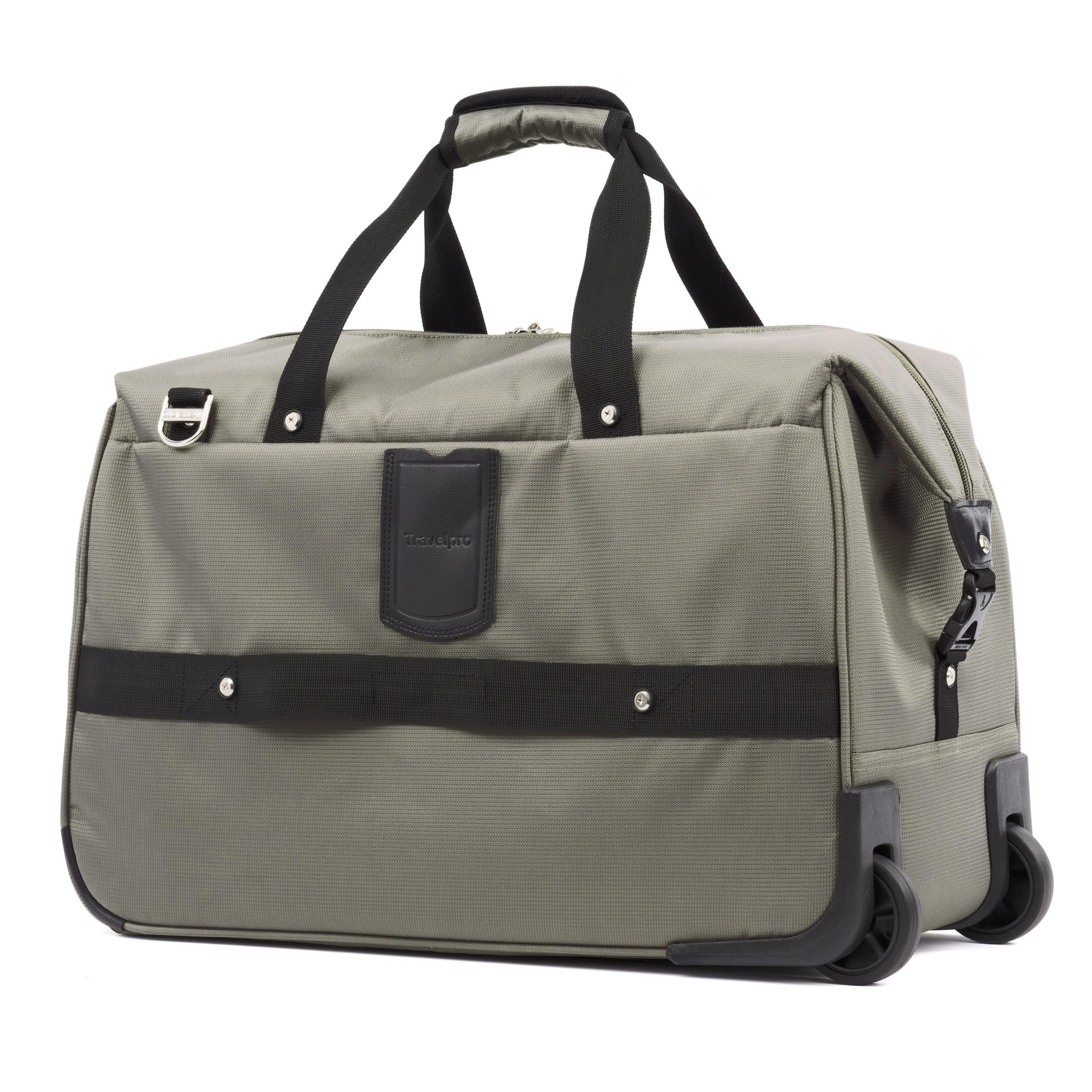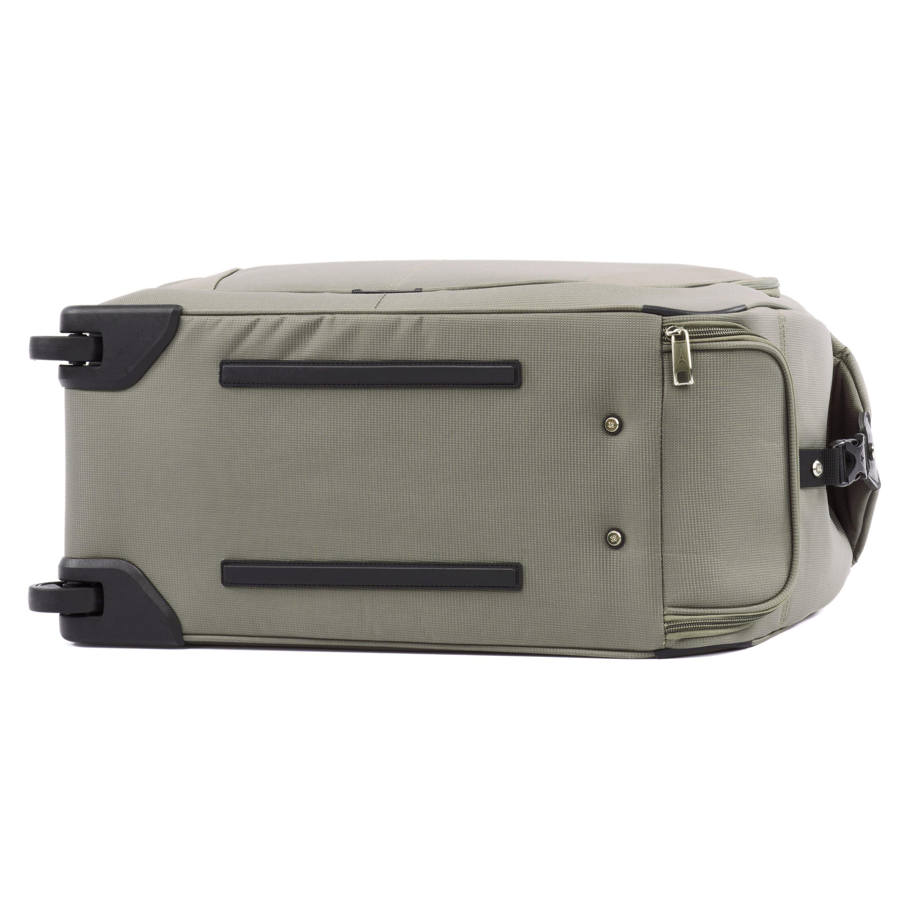 The duffel bag has evolved. The Travelpro Maxlite 5 Carry-On Rolling Duffel is the faithful travel companion that is always ready to take you away for the weekend. Compact and soft-sided, this lightweight carry-on bag features two sizable exterior pockets and a roomy interior with one built-in pocket. Inline skate wheels and a 2-position adjustable PowerScope Lite handle make transport easy, while flexible carrying options include a top handle, adjustable shoulder strap and a rear stacking strap for secure stacking on top of another rolling bag.