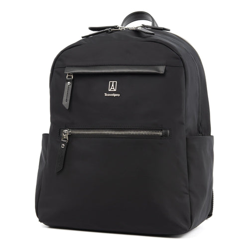 The Platinum Elite Womens Backpack from Travelpro exceeds expectations. This elegantly-styled slim design delivers big on capacity with built-in padded laptop and tablet sleeves and numerous organizing compartments. Multiple exterior pockets offer quick access to a water bottle or other grab-and-go essentials, and a discreet, exterior Travelpro QuickSlip pocket with magnetic closure is ideal for keeping your cell phone secure while going through airport security or catching your next business meeting. Adjust the padded shoulder straps to your ideal fit or use the rear stacking strap over the extension handle of a rolling bag for hands-free carrying. This beauty is built to last from lightweight materials that resist stains and moisture. Backed by the Travelpro Built For A Lifetime Limited Worry Free Warranty and Trusted Companion Promise.