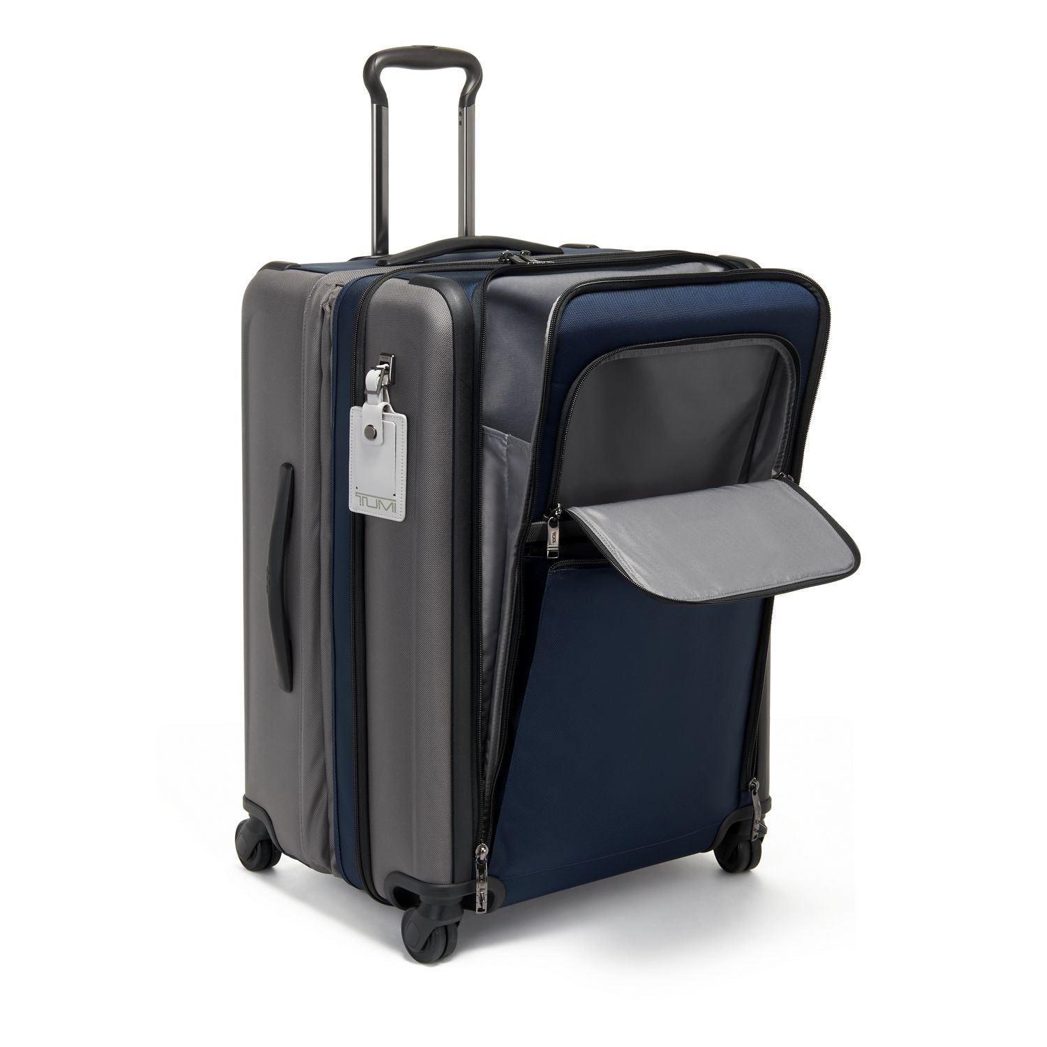 This versatile 4-wheeled suitcase with a multi-level, expandable main compartment is ideal for flexible packing and features a removable garment sleeve and TUMIs easy-to-use Lever Lock Expansion System that allows for up to 2 5 cm of additional space. Handy interior and exterior pockets keep essentials in order and close at hand. Part of our Alpha 3 Collection, made from TUMIs patented, ultra-durable FXT ballistic nylon. Our iconic business and travel pieces bring together innovative design, superior performance, and best in class functionality. Select styles come outfitted with a colorful TUMI Accents Kit luggage tag, monogram patch, handle wrap and zipper pull ties for an additional cost.