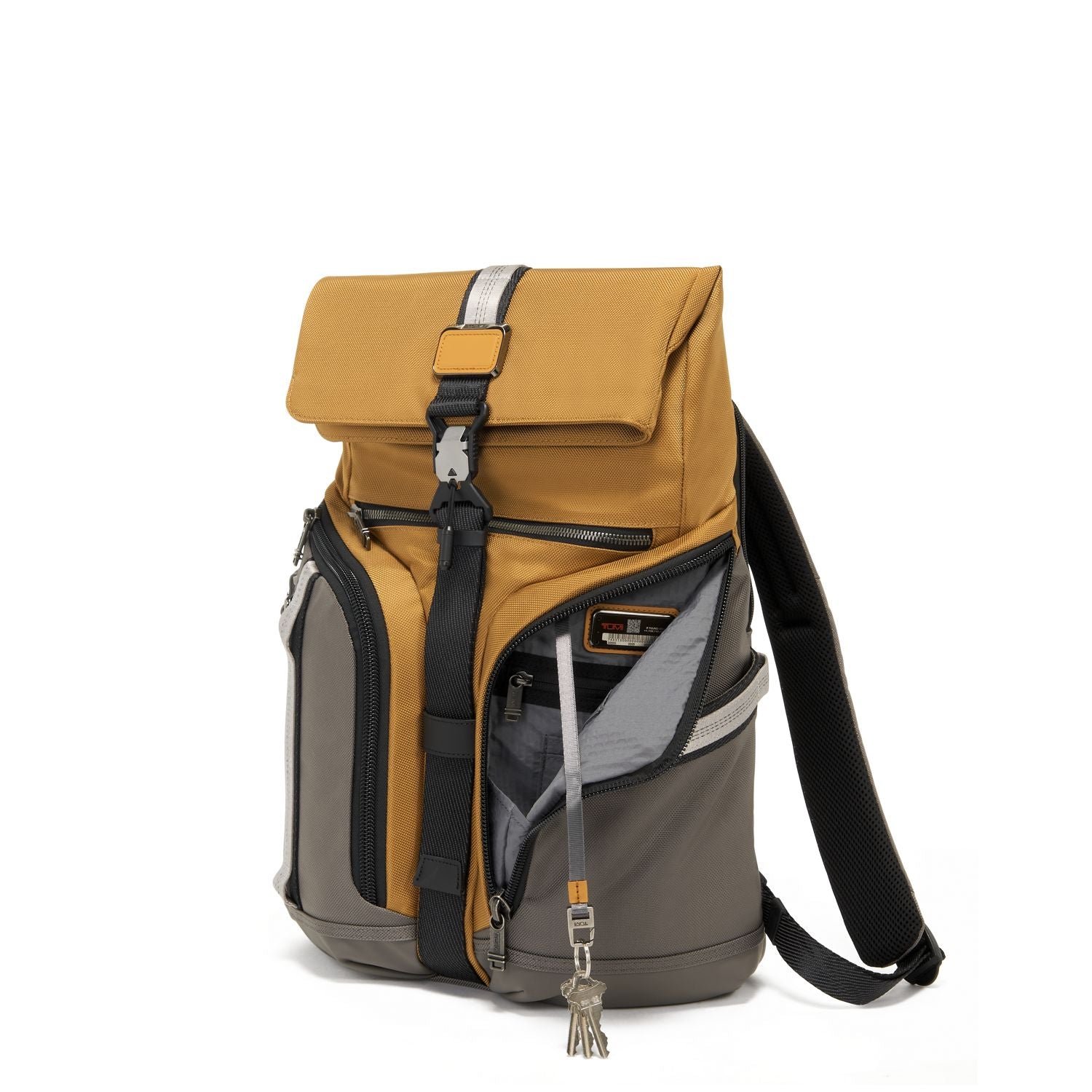 Built to perform, the Logistics Backpack features a flap lid with a strap that adjusts to accommodate your haul. The L-zip opening makes for simple packing while maximizing the carry capacity. There are dedicated pockets for your laptop, tablet, phone, and water bottle. The addition of daisy chains makes it compatible with TUMI+ accessories to further enhance its functionality. Sold separately.Alpha Bravo brings you rugged yet refined pieces that will take you from the office to the outdoors and beyond.