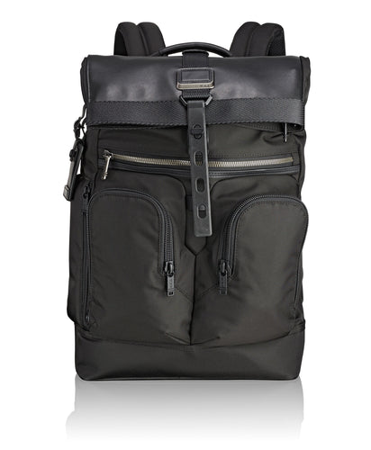A ruggedly refined roll-top backpack, the London comes in TUMIs signature ballistic nylon, which withstands the wear and tear of everyday use. Holds your laptop, tablet and phone plus enough clothes to get you through the weekend. Comfortable, padded backpack straps. Top zip closure.