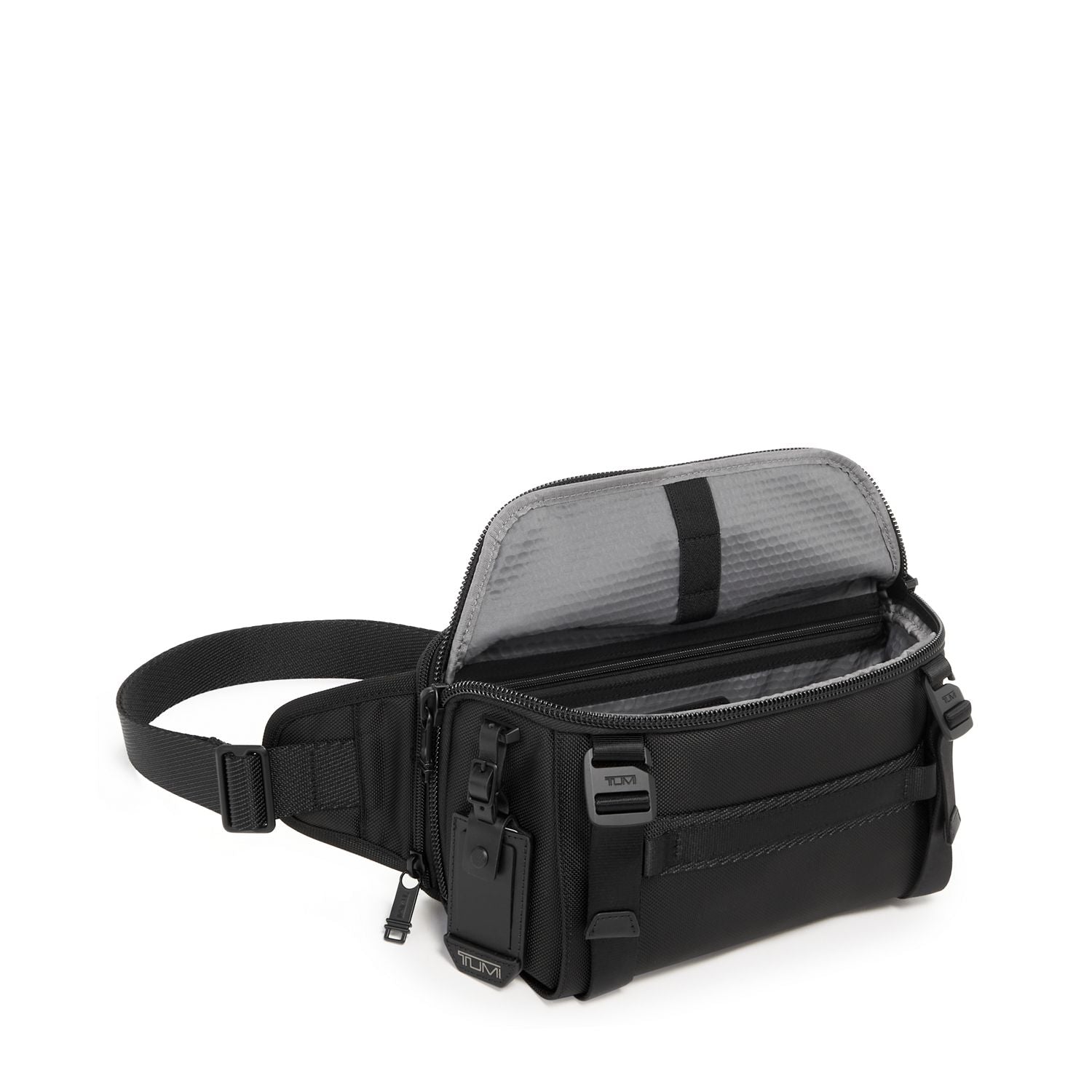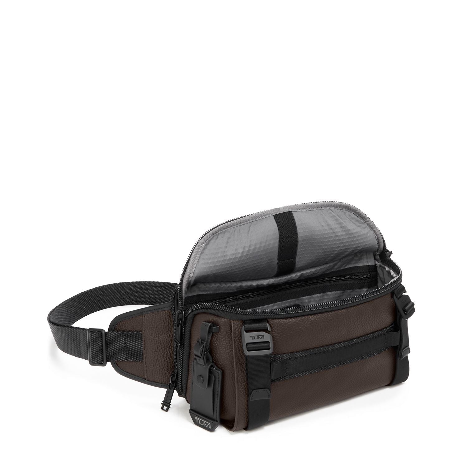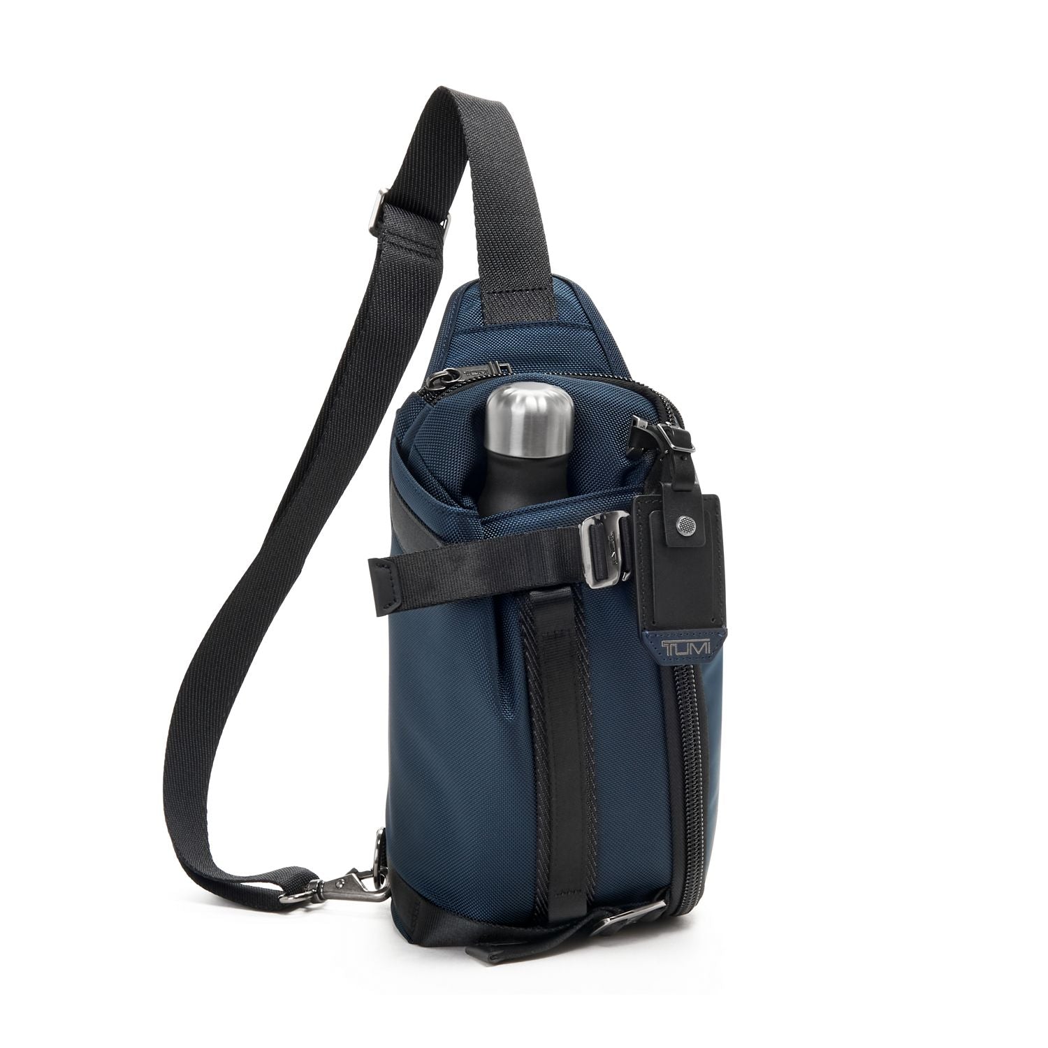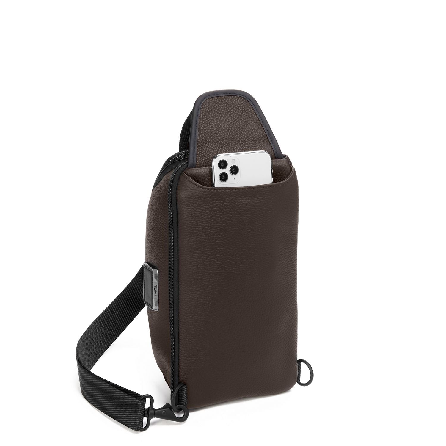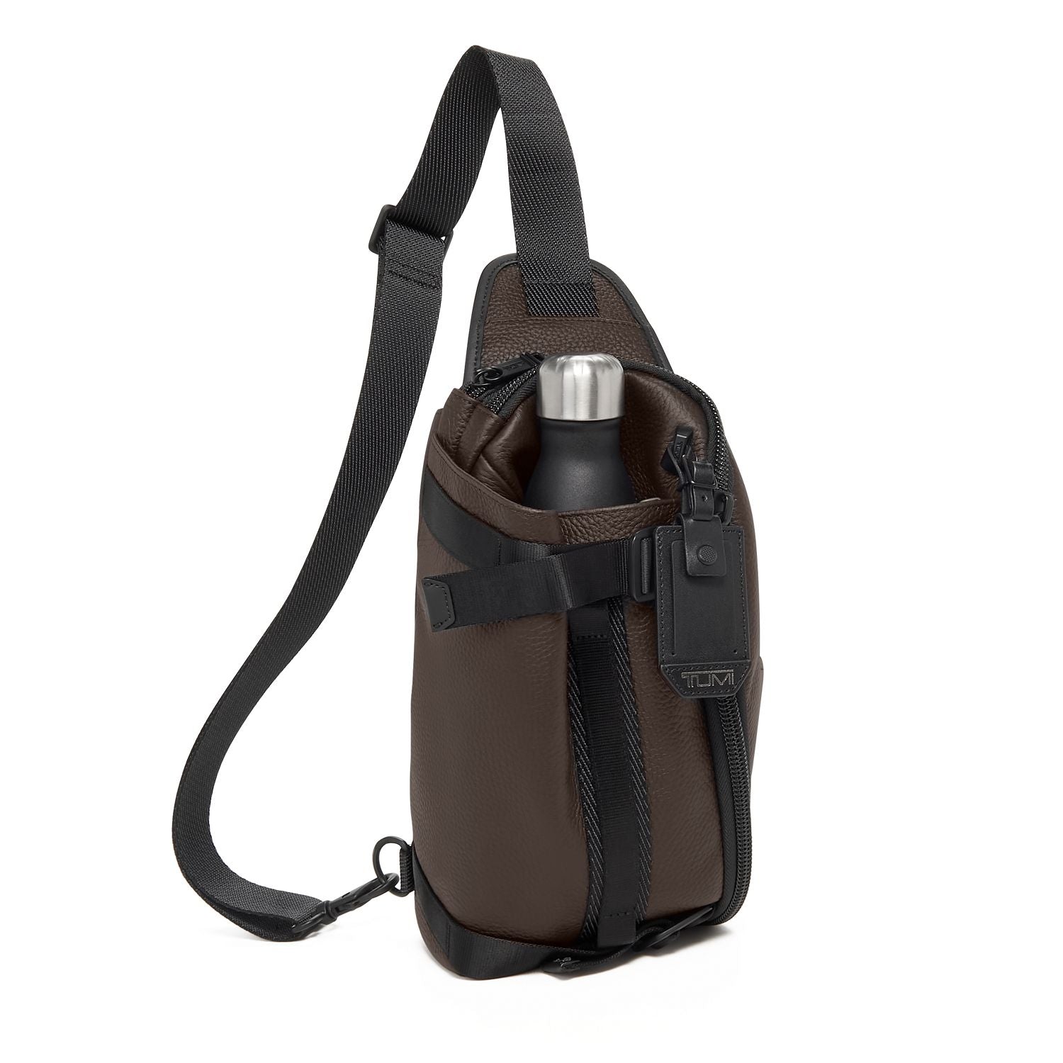 The load is light but the functionality is high with this leather sling. Equipped with a water-resistant pocket, you're all set for your most active days. Its G-hooks can be used to attach accessories from TUMI+ to add modularity. Sold separately.