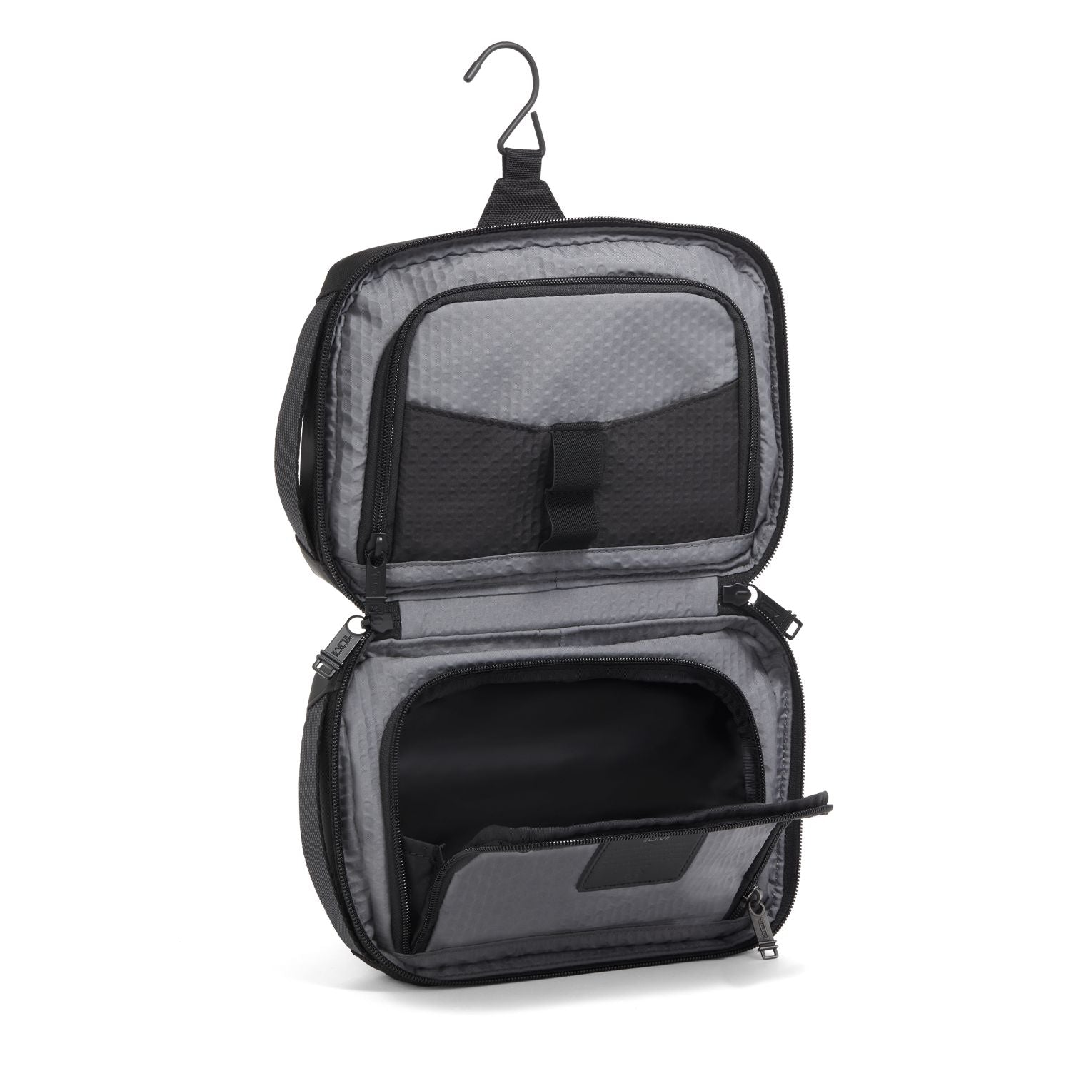 • Anti-microbial lining (The anti-microbial solutions do not protect the users or others against bacteria, viruses, germs, or other disease organisms.), 2 elastic loops, 2 open pockets, 2 U-zip pockets (one with a water-resistant lining), TUMI Tracer®