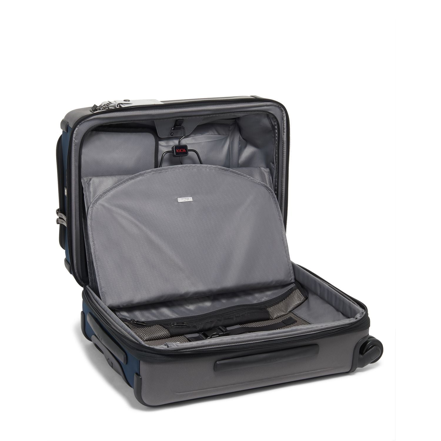 Our Continental Carry-On offers an innovative dual entry to the main compartment, allowing you quick access to your belongings through the front lid. Designed to meet the carry-on size requirements for travel within North America, it includes a built-in USB port to keep you connected on the go, as well as a separate garment sleeve to keep one suit in shape. Power bank sold separately.