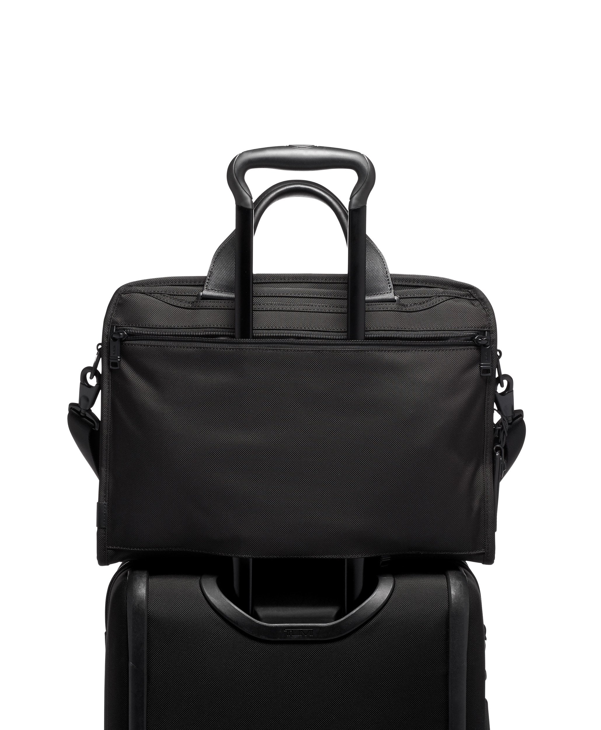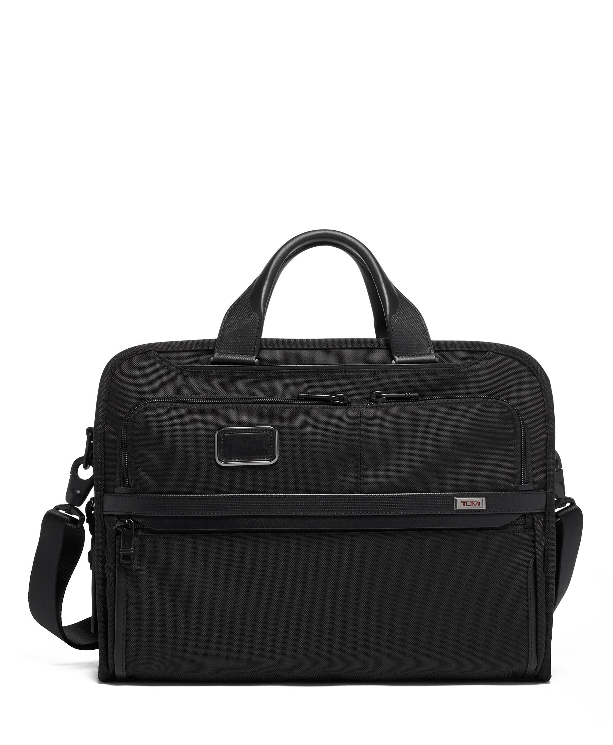 Ideal for your daily commute, this slim-profile brief optimizes both organization and comfort. The main compartment features a file divider perfect for documents, as well as a padded tablet pocket and multiple smaller pockets for your tech and business accessories. Part of our Alpha 3 Collection, made from TUMIs patented, ultra-durable FXT ballistic nylon. Our iconic business and travel pieces bring together innovative design, superior performance, and best in class functionality. Select styles come outfitted with a colorful TUMI Accents Kit luggage tag, monogram patch, handle wrap and zipper pull ties for an additional cost.