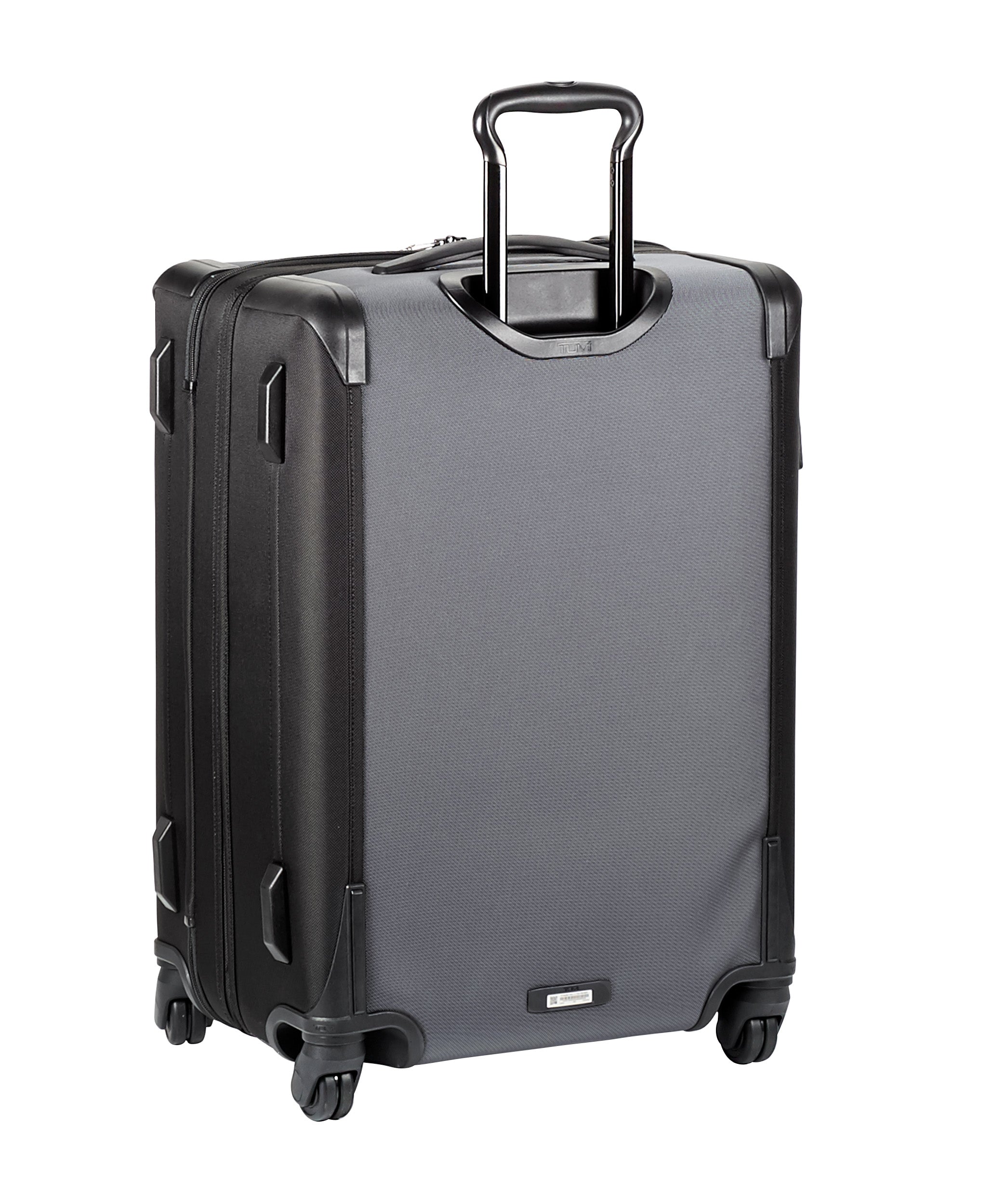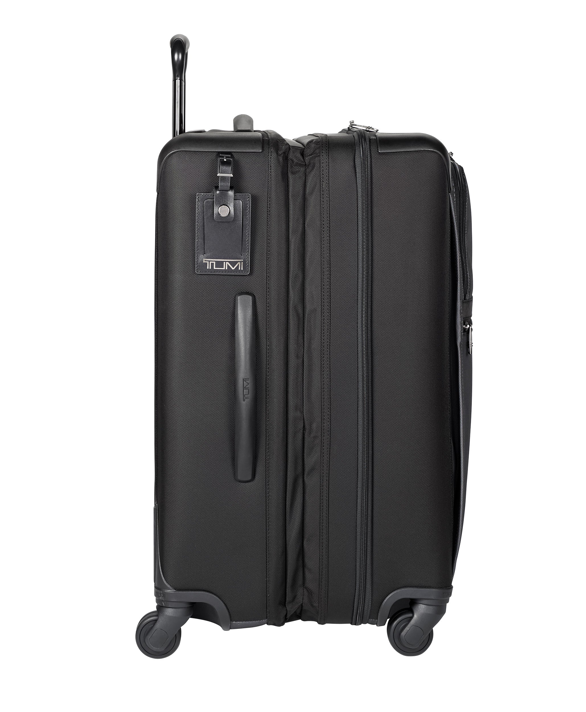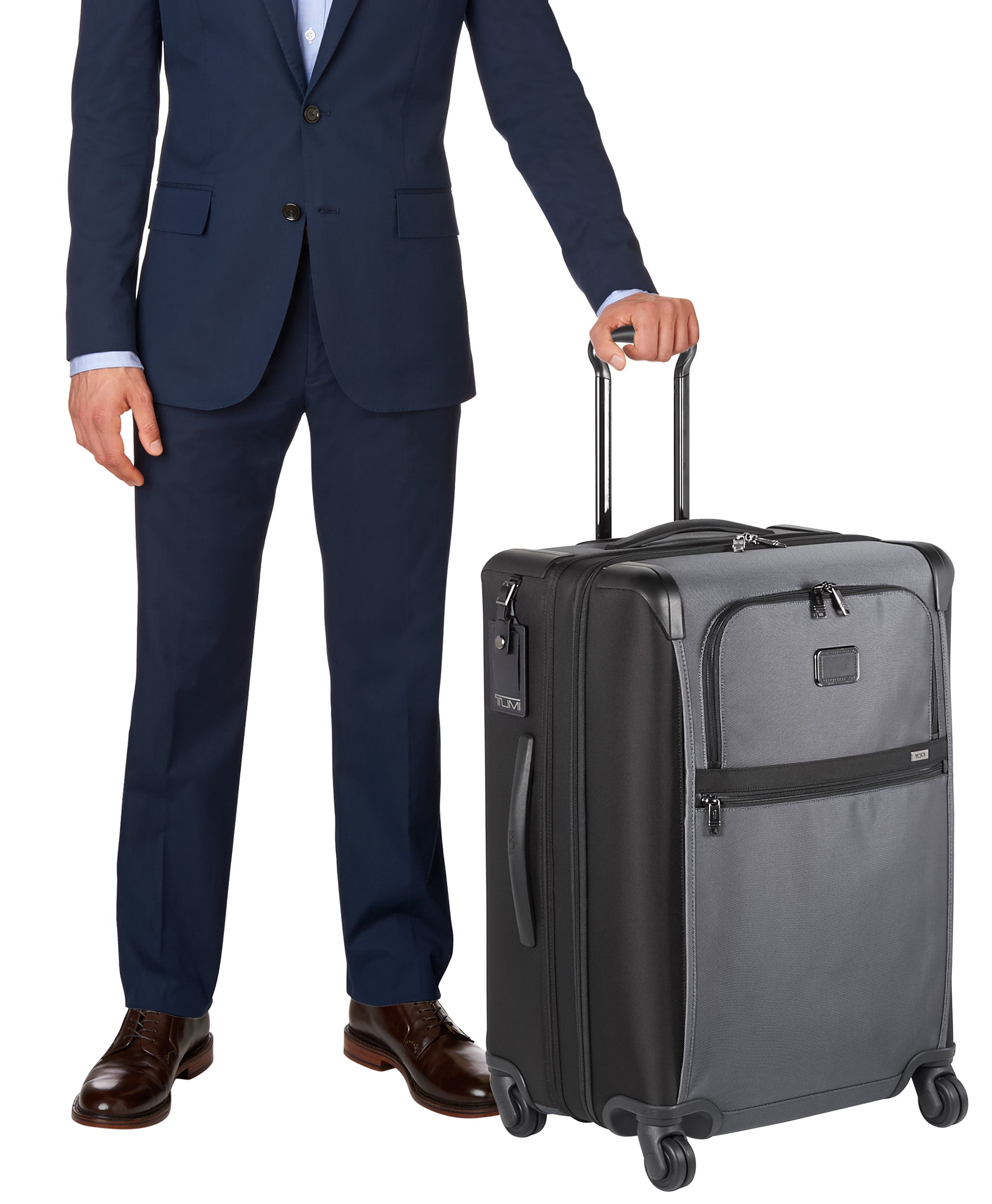 This versatile 4-wheel luggage case with a multi-level, expandable main compartment is ideal for 3-6 day trips. Features removable garment sleeve that holds up to two suits TUMI-engineered hanger sold separately 0052. Select styles come outfittedwith a colorful TUMI Accents Kit luggage tag, monogram patch, handle wrap, zipper pull ties for an additional cost. Part of our Alpha 2 Collection, made from TUMIs patented, ultra-durable FXT ballistic nylon. handles and Tumis patent-pending, easy-to-use Lever Lock Expansion System that opens and closes securely to provide two-stages of expansion for additional packing space. Alpha 2 is made from Tumis patented, ultra-durable FXT ballistic nylon. This versatile 4-wheel case with removable garment sleeve and multi-level, expandable main compartment is ideal for 3-6 day trips. Features removable garment sleeve that holds up to two suits, tie-down straps and zip pockets for accessories. Three-stage telescoping handle and 4-wheel system with recessed swivel wheels. Note that hanger shown is not included with this item it may be purchased separately 0052.