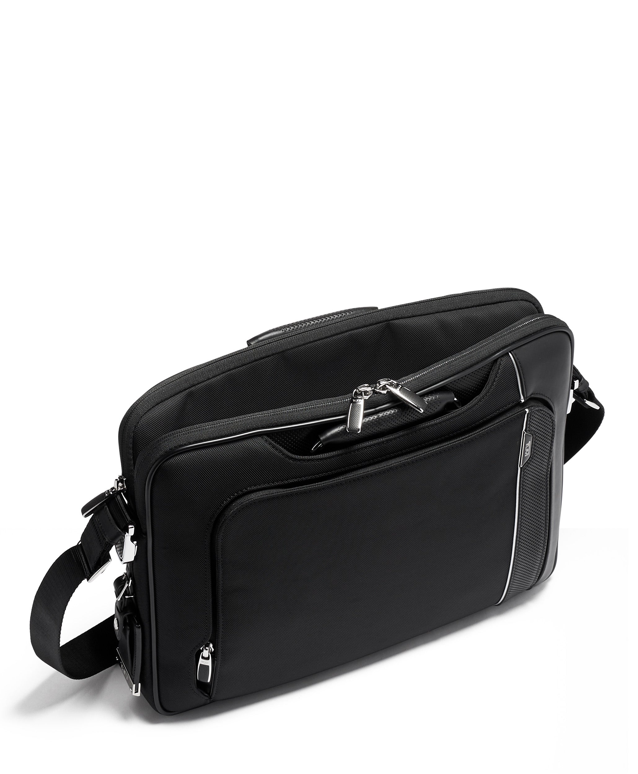A sleek, modern style thats also spacious, our Hannover Slim Brief fits your laptop, papers, and other essential accessories. Theres a quick-access pocket for your phone, a handy open center compartment, and the leather-wrapped handles retract whenusing the carrying strap. The Arriv collection takes its cues from automotive design, with high-polish chrome details, elegant curves, and sleek magnetic zippers. Our ultra-modern pieces make world-class business partners and travel companions.