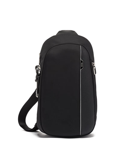For work or weekend, our Martin Sling offers a sleek alternative to a backpack or brief. Designed for modern utility and casual sophistication, it features a magnetic quick-access back pocket, and the main strap slides to wear on either shoulder. brThe Arriv collection takes its cues from automotive design, with high-polish chrome details, elegant curves, and sleek magnetic zippers. Our ultra-modern pieces make world-class business partners and travel companions.