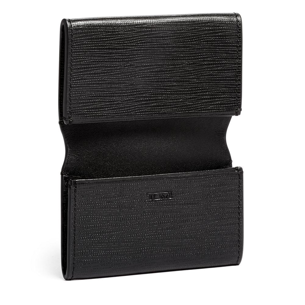 A hinged cover brings a sophisticated edge to this handsome business card case, perfect for making a good impression.