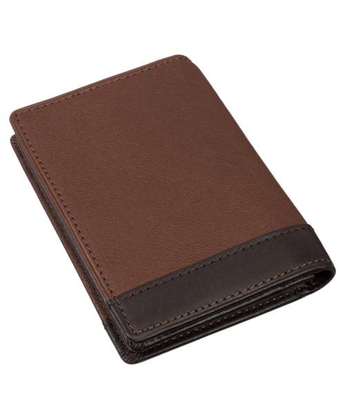 Casual and textural, the Rivington collection combines natural grain leather with smooth leather trim details. This card case has a gusseted card pocket, card slots and an ID window. Comes in an elegant gift box.