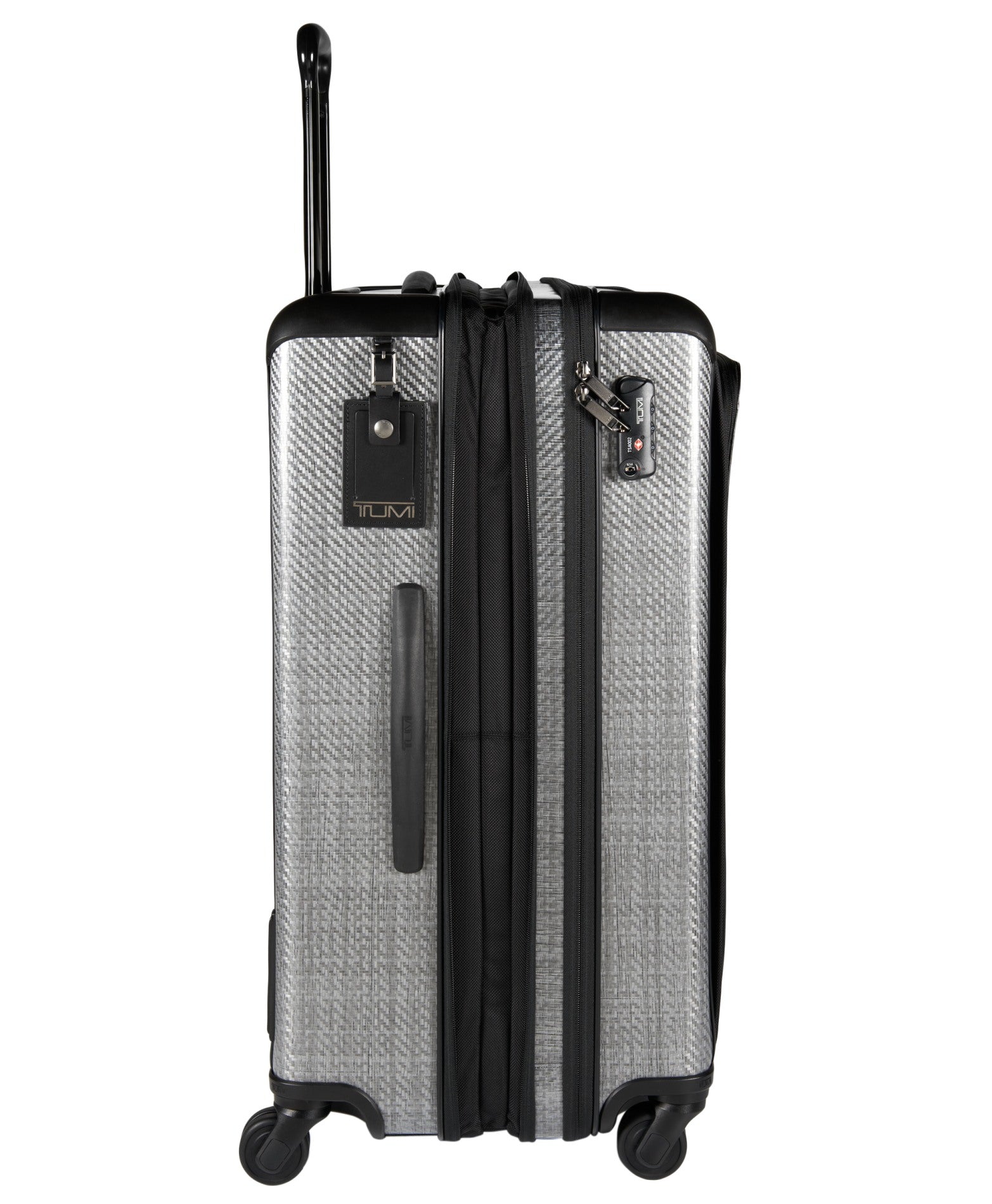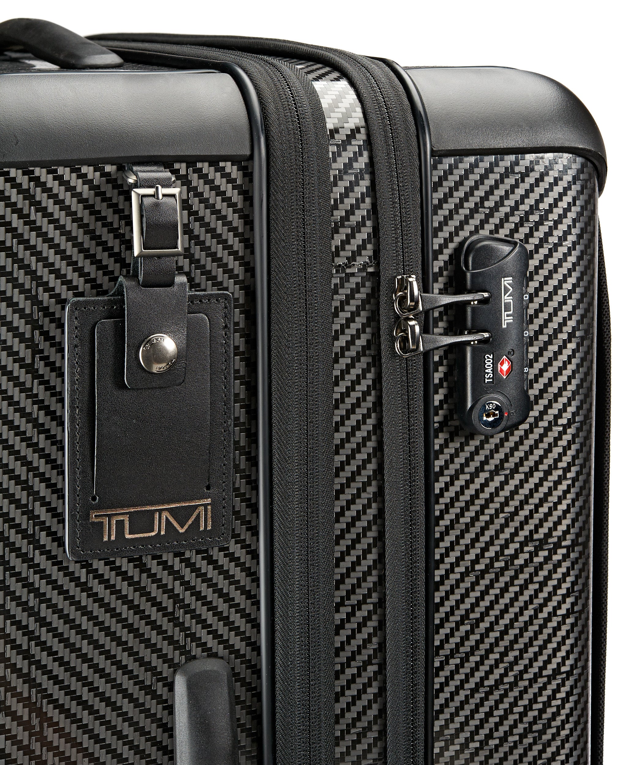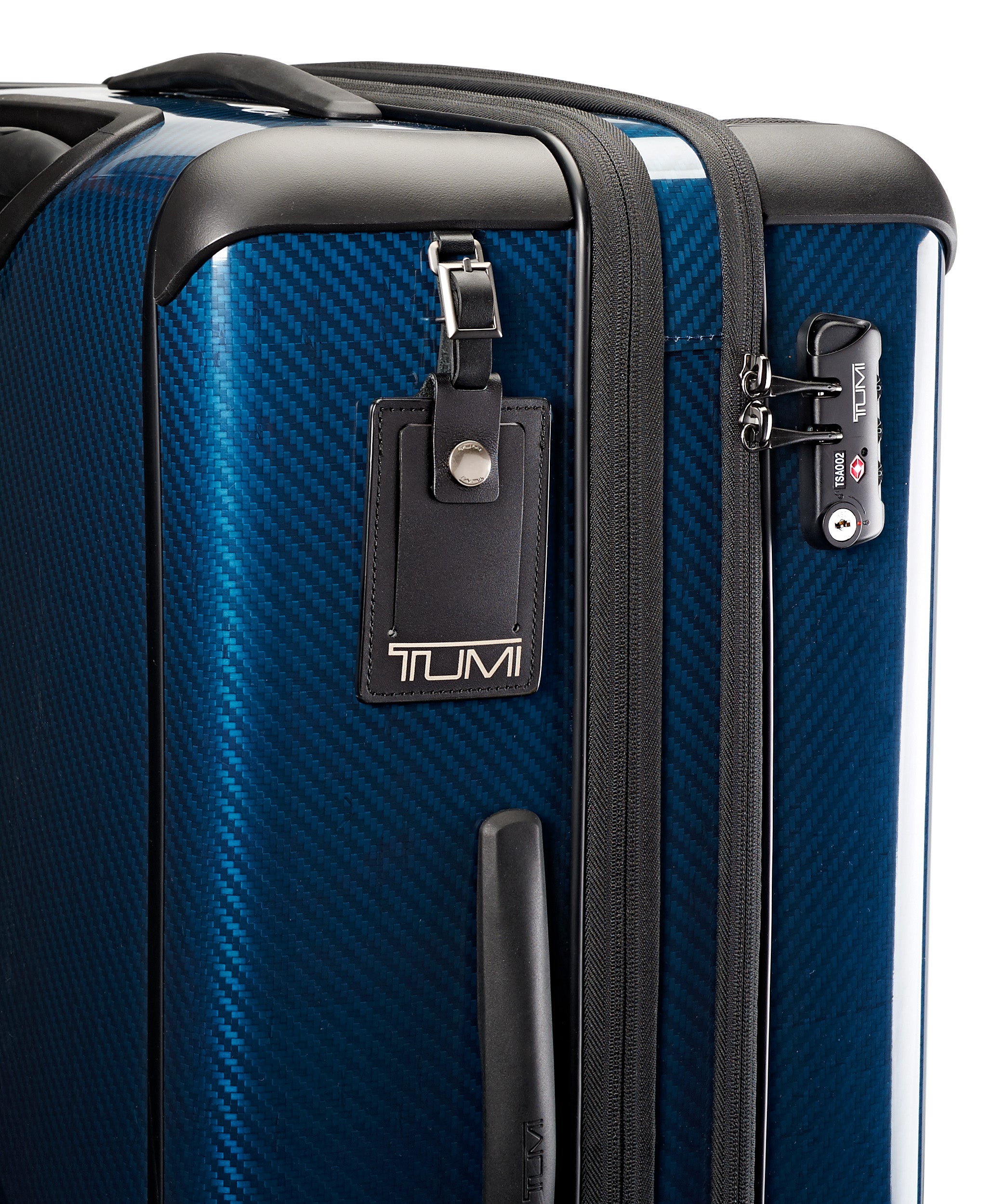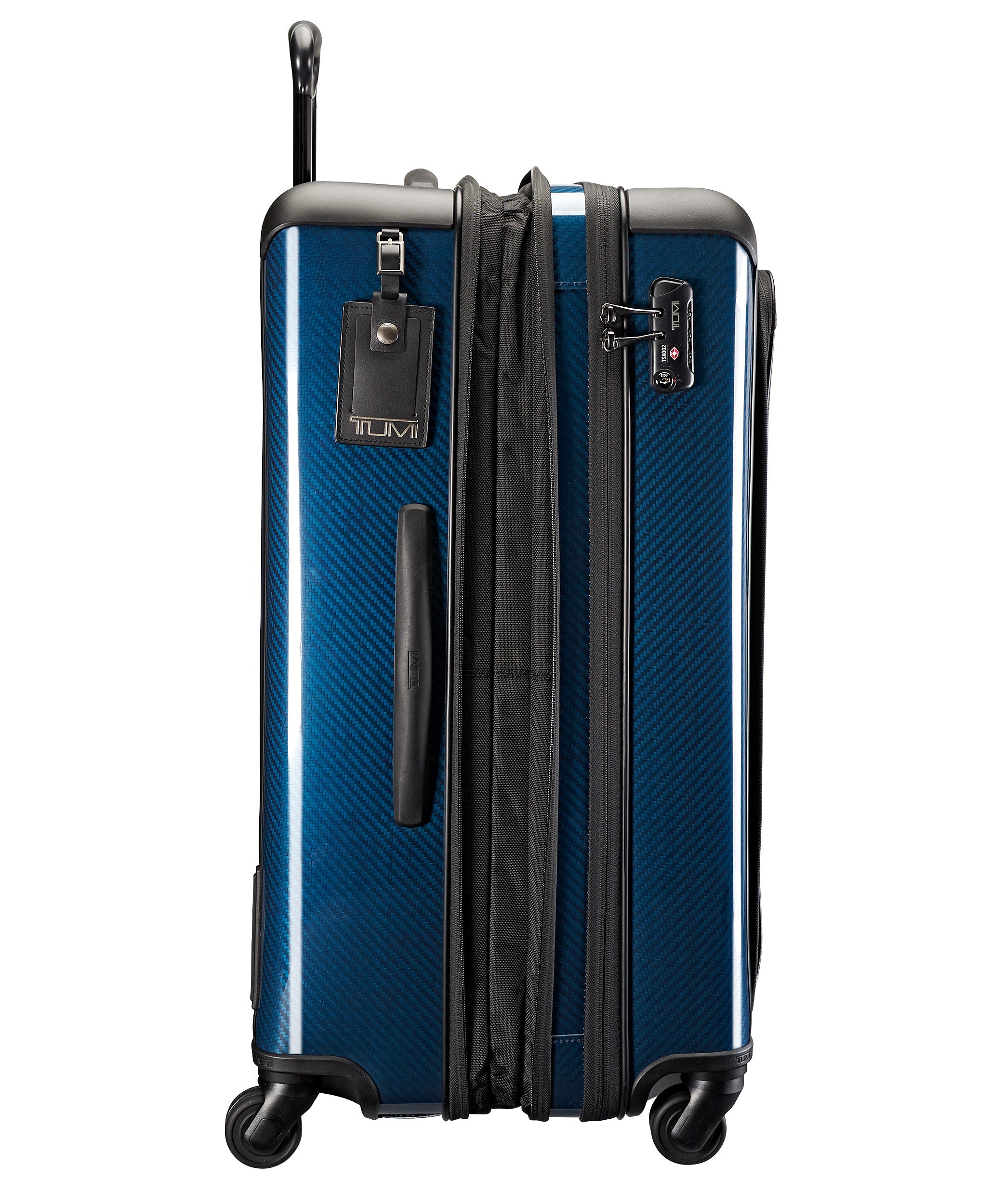 Expandable, accessible and effortless: this Tegra-Lite Max case is the most durable and fully functional hardside case made today. It is expandable and features a spacious, accessible front pocket, plus it moves effortlessly in every direction on our double turning wheels. Tegra-Lite is constructed from Tegris, a revolutionary polypropylene thermoplastic composite material created by Milliken for use in lifesaving armor, Nascar race cars and protective gear for NFL players. TUMI has received the worldwide, exclusive rights to use the Tegris material within the travel industry. This larger hardside case is ideal for longer business or leisure trips, or when two are traveling together. The roomy interior includes a removable garment sleeve, expands 2 for extra capacity when you need it and has two packing compartments. Interior pockets for accessories. Select styles come outfitted with a colorful TUMI Accents Kit luggage tag, monogram patch, handle wrap and zipper pull ties for an additional cost.